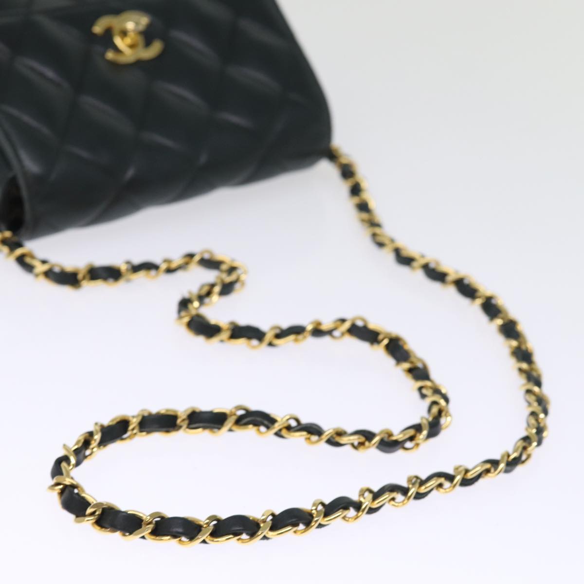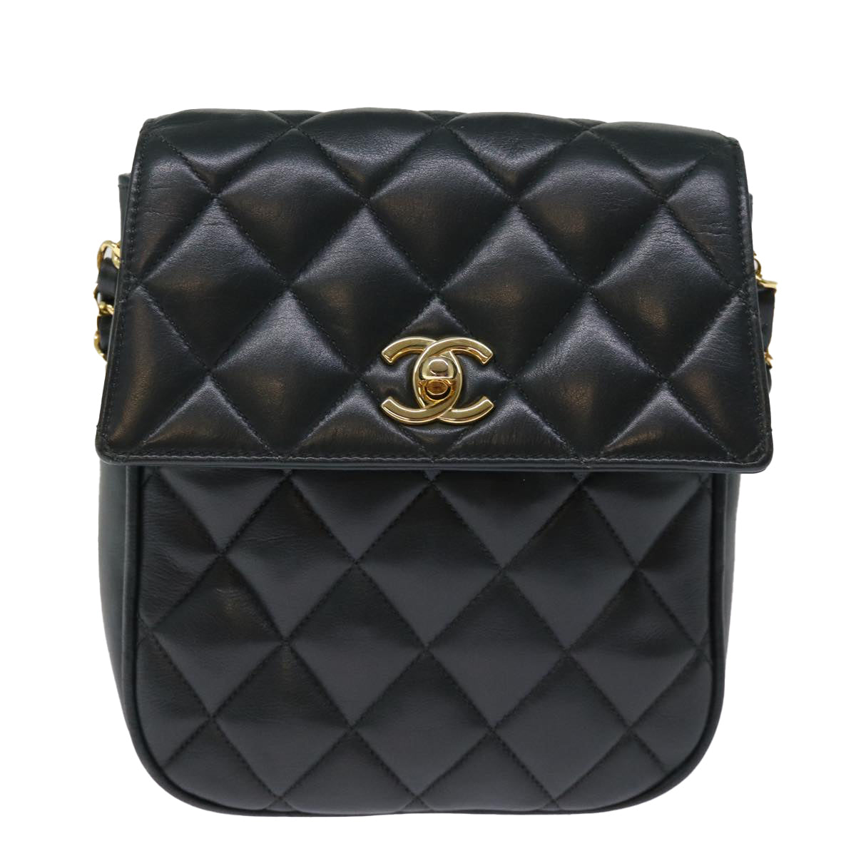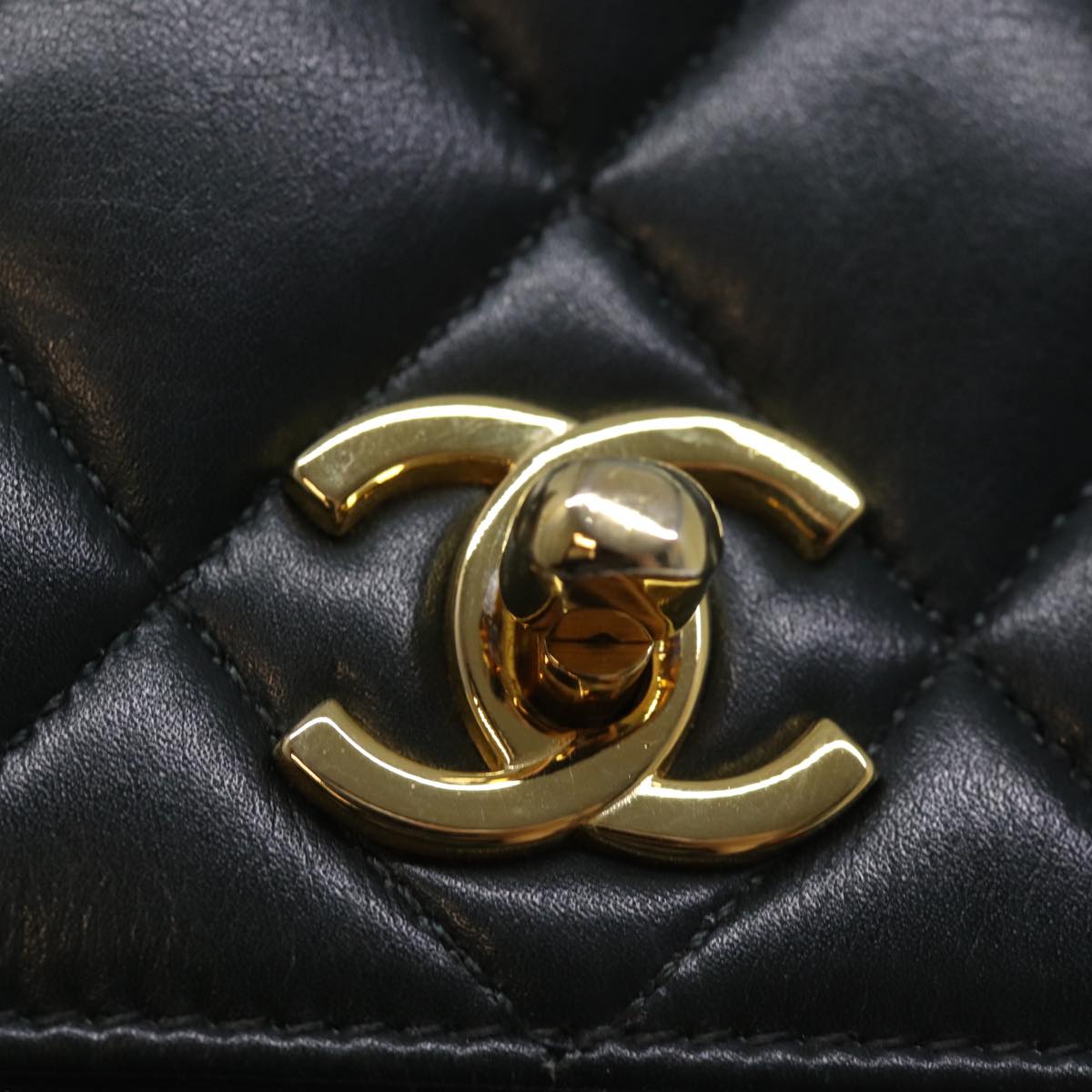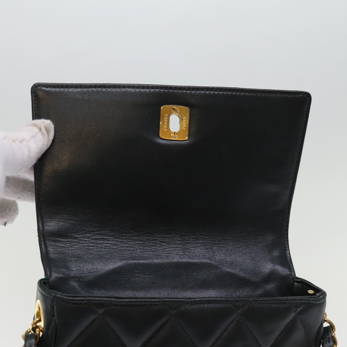 CHANEL Matelasse Turn Lock Chain Shoulder Bag Lamb Skin Green CC Auth yk12713A