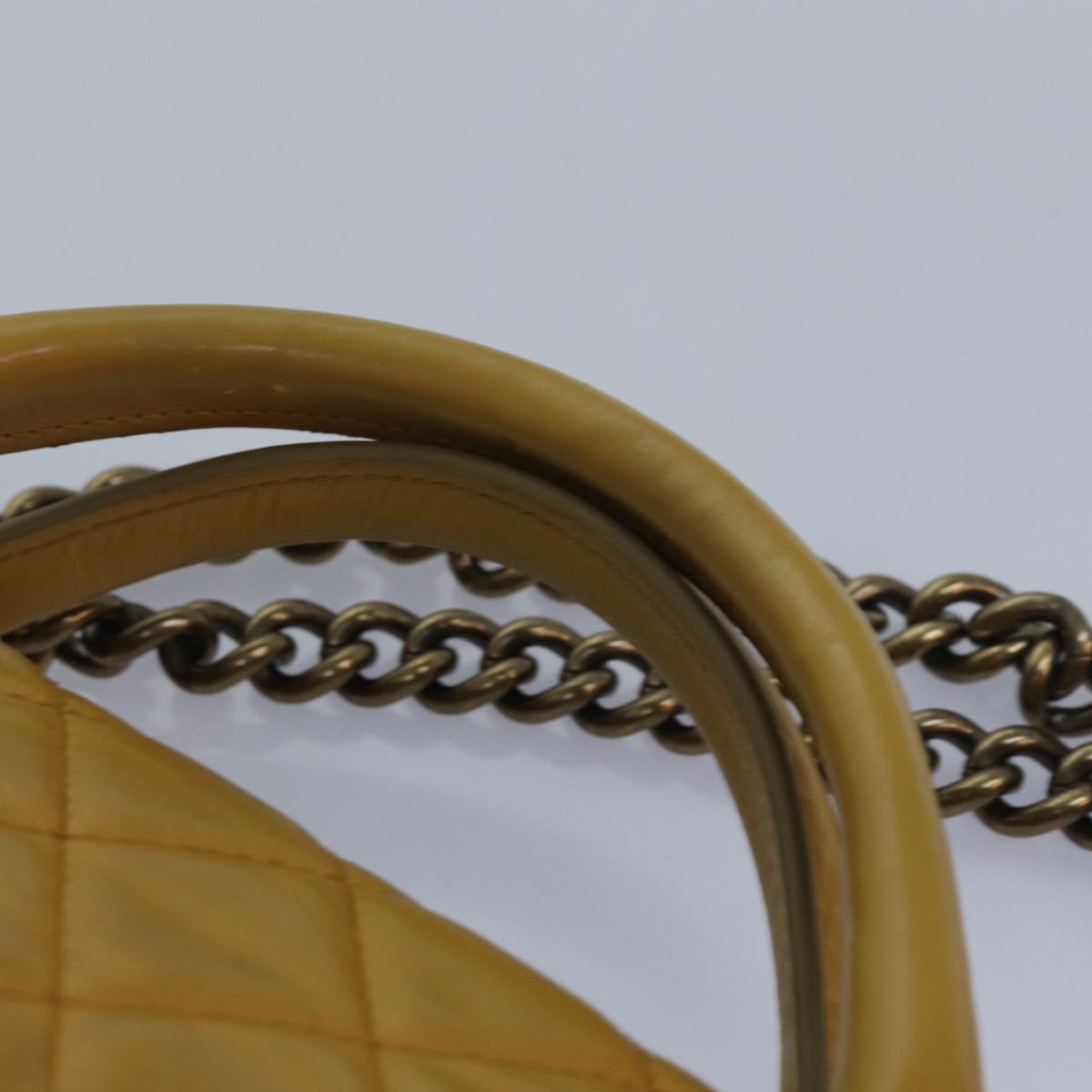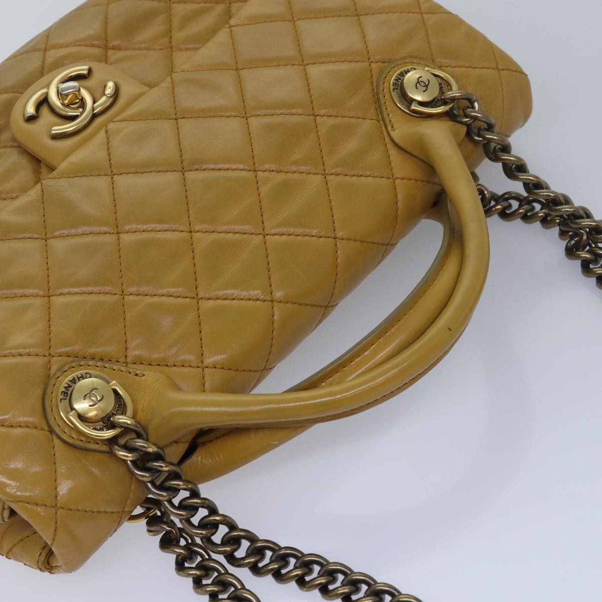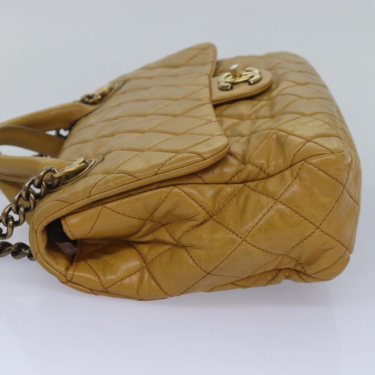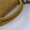 CHANEL Matelasse Turn Lock Chain Shoulder Bag Leather Yellow CC Auth yk13973A