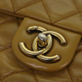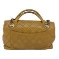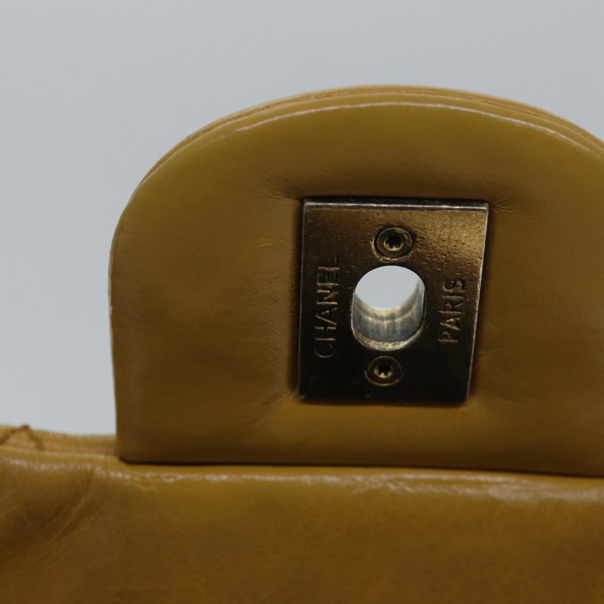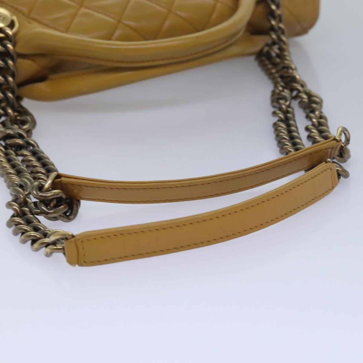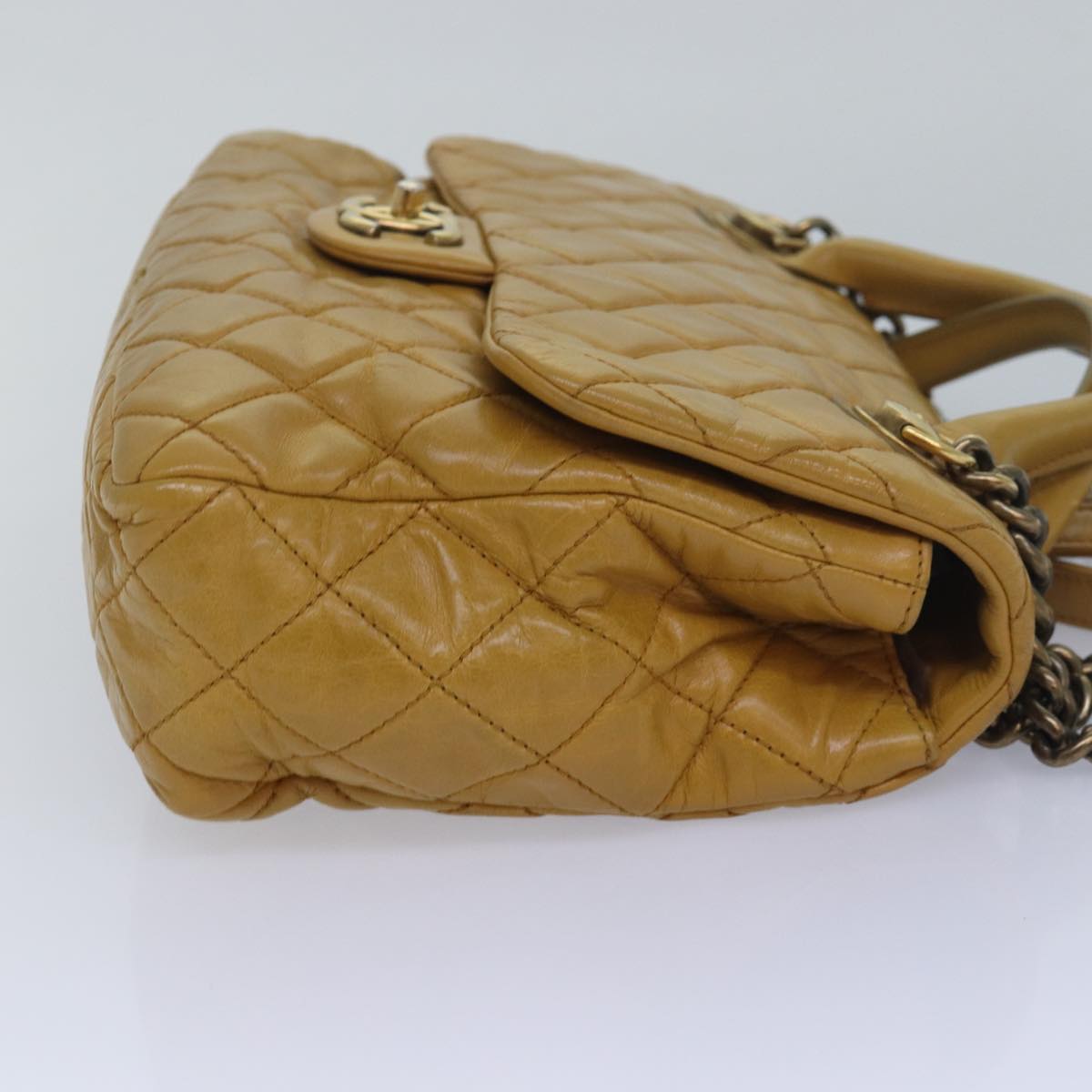 CHANEL Matelasse Turn Lock Chain Shoulder Bag Leather Yellow CC Auth yk13973A