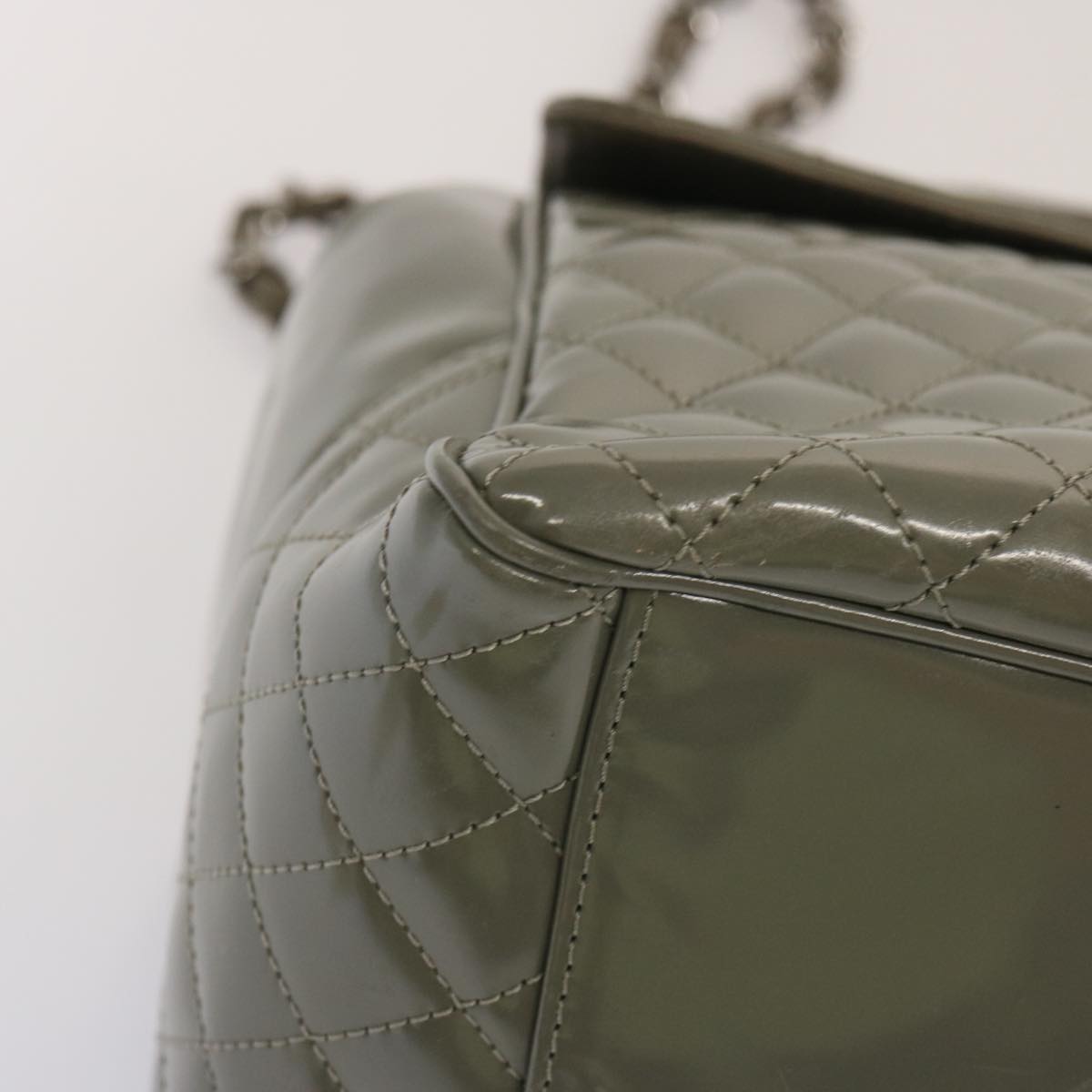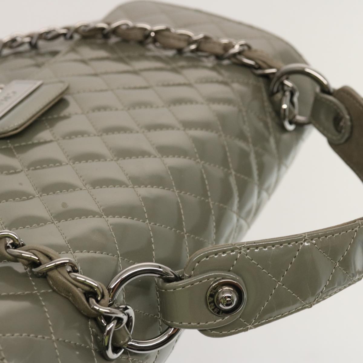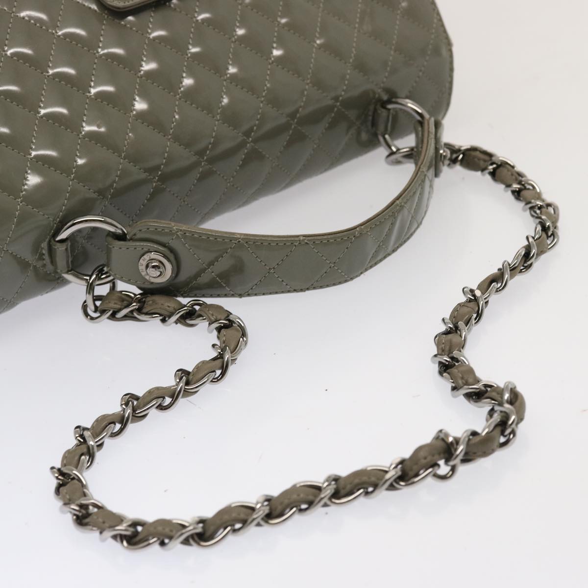 CHANEL Matelasse Turn Lock Hand Bag Enamel 2way Gray CC Auth ep4178