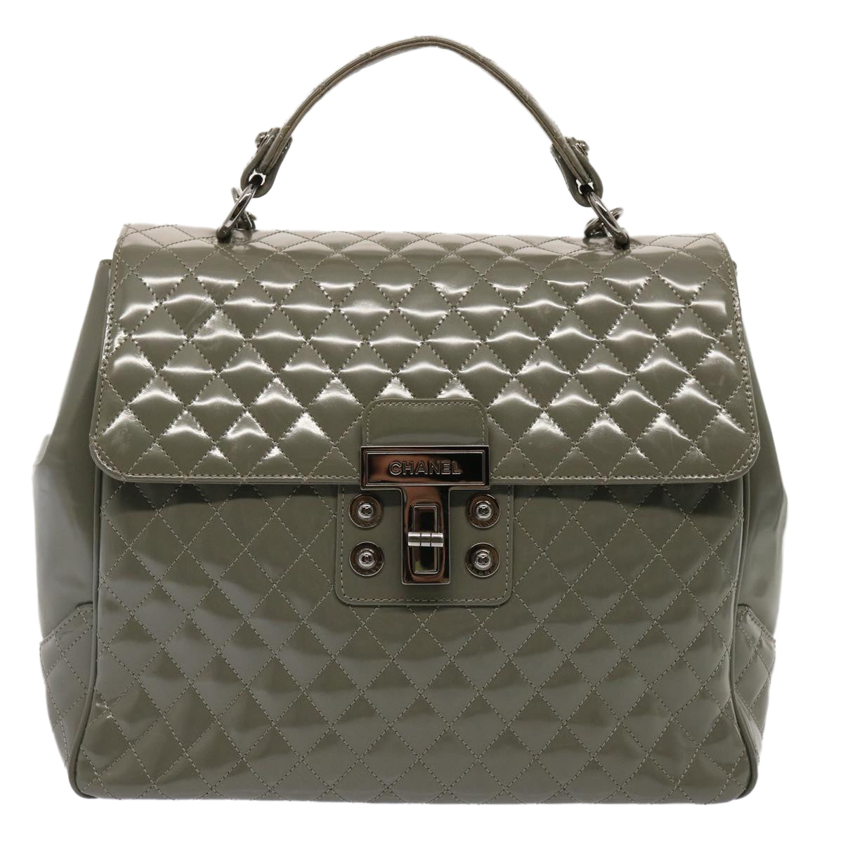 Top Quality Chanel Matelasse Turn Lock Hand Bag Enamel 2way Gray CC Auth ep4178