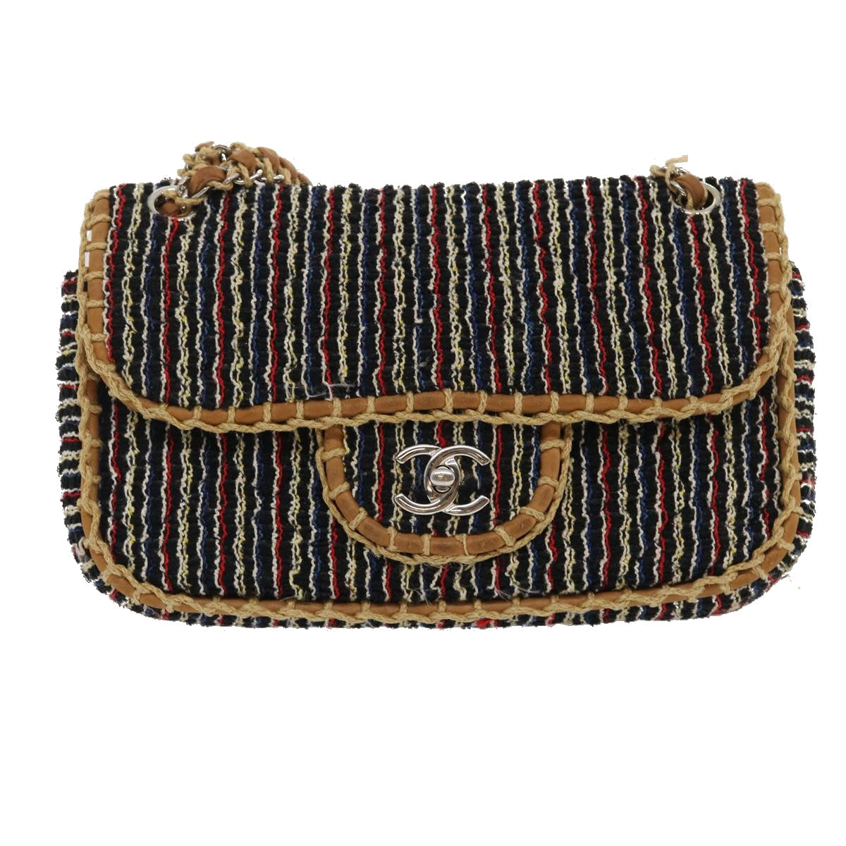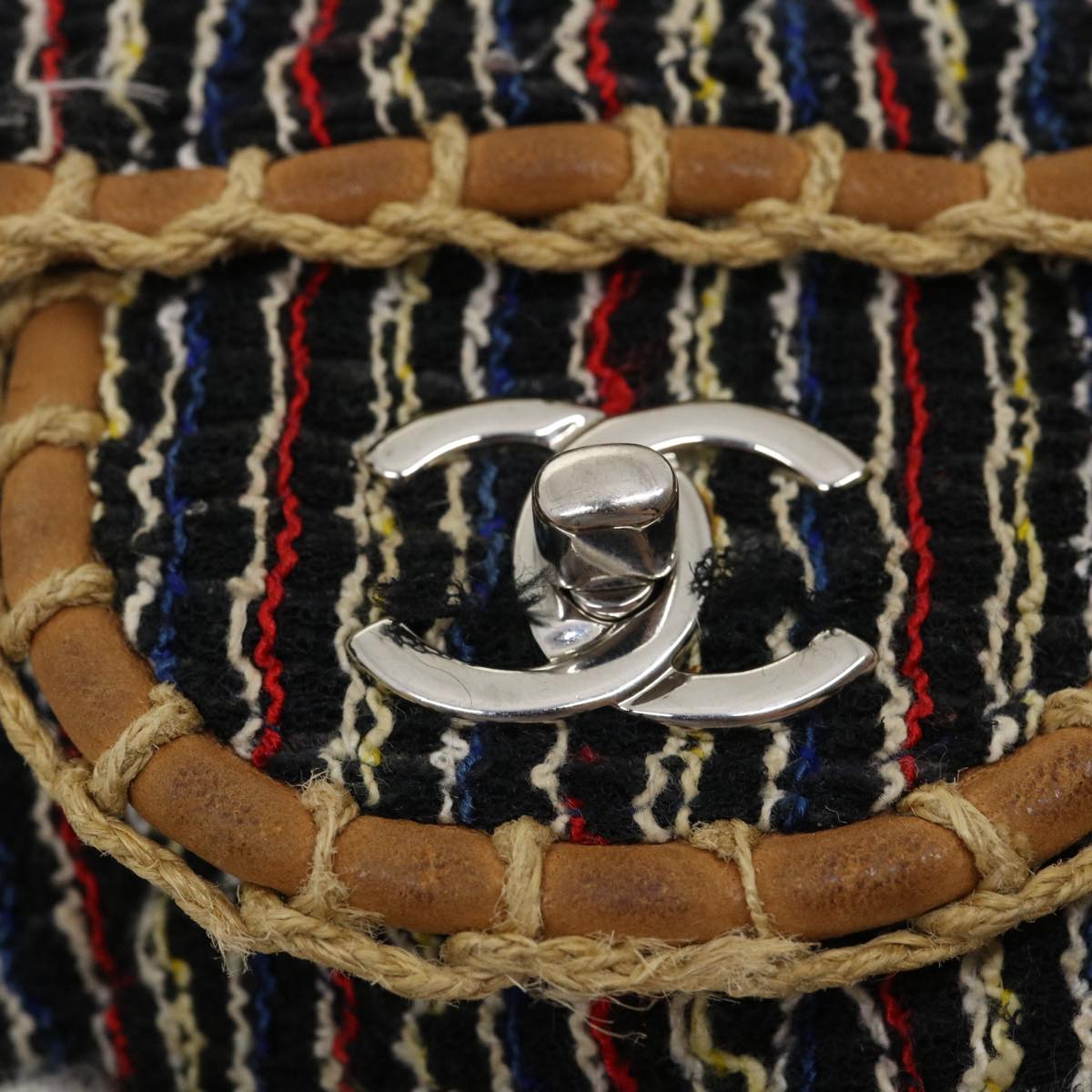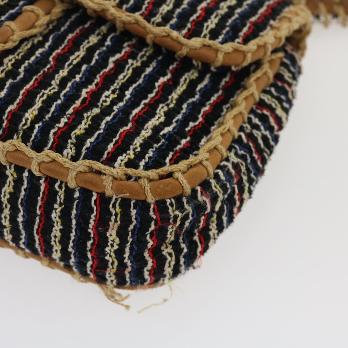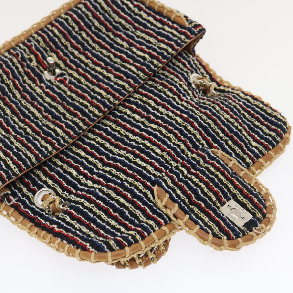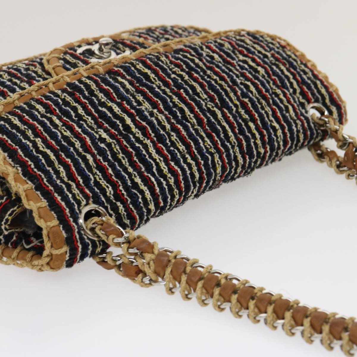 CHANEL Matelasse Tweed Turn Lock Chain Shoulder Bag Navy Brown CC Auth nh616A