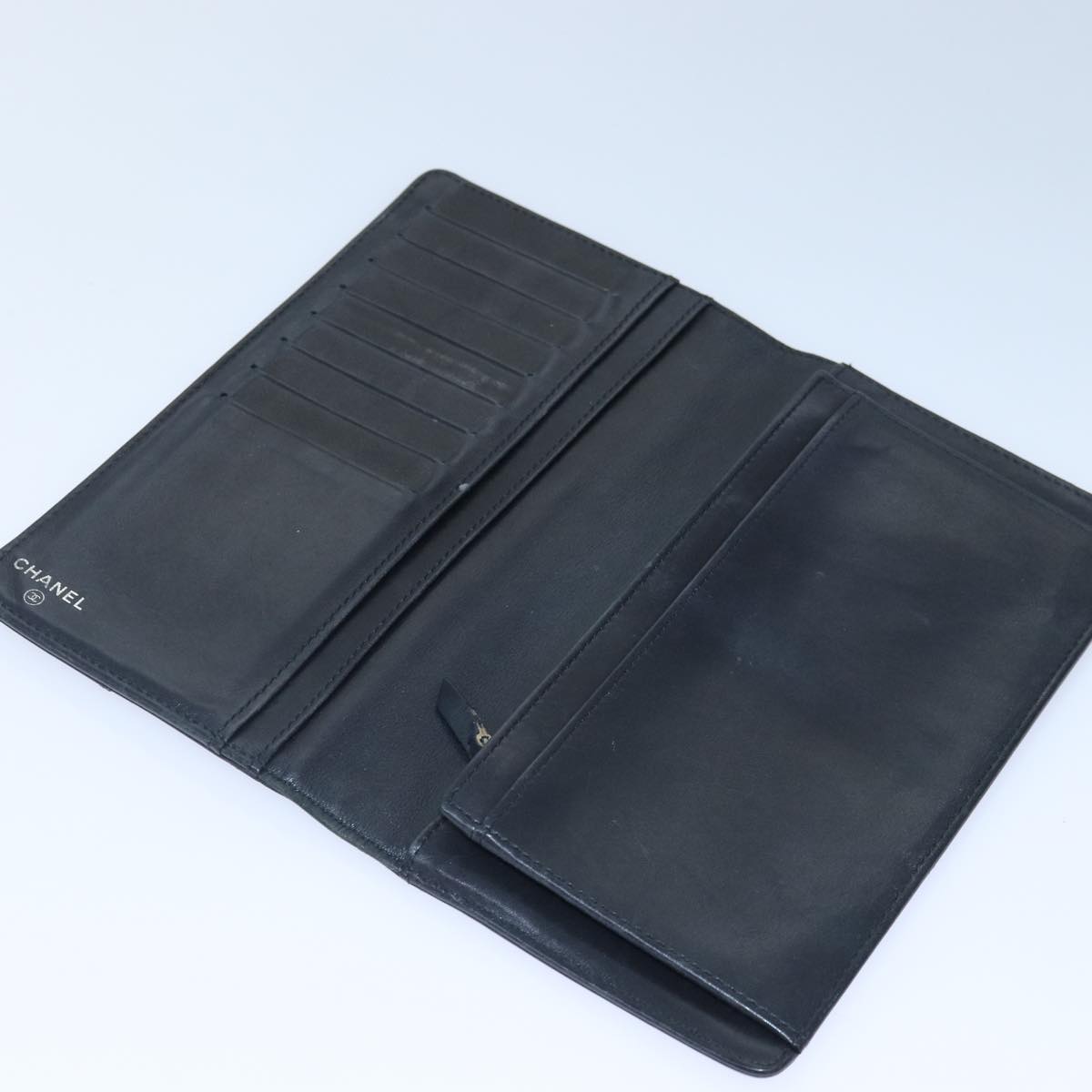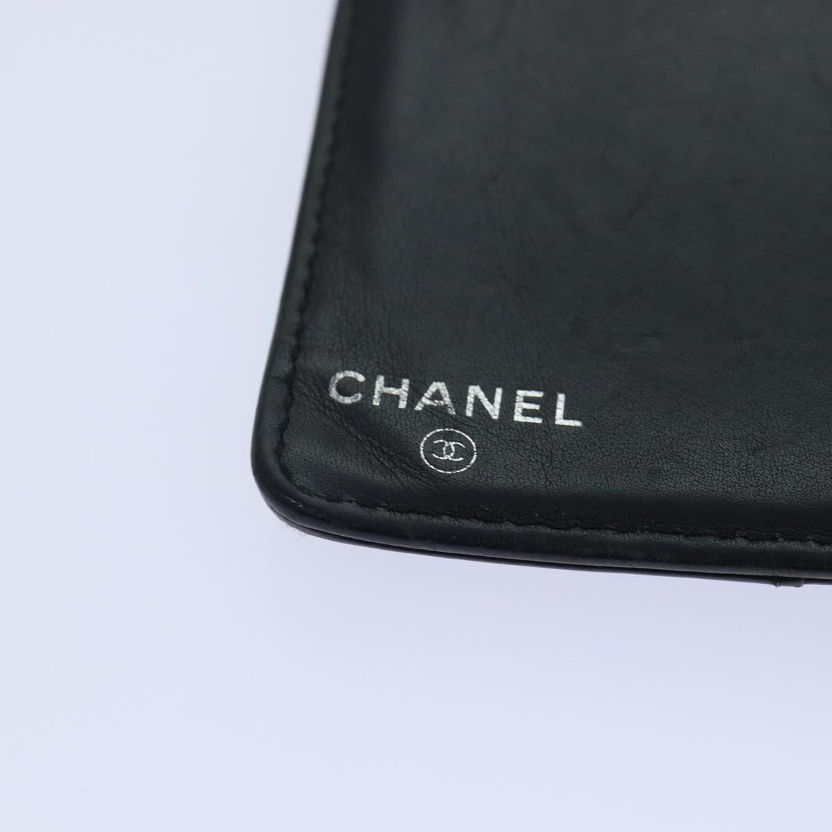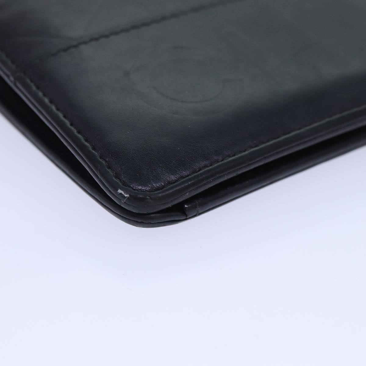 CHANEL Matelasse Wallet Leather Black Silver CC Auth bs16854