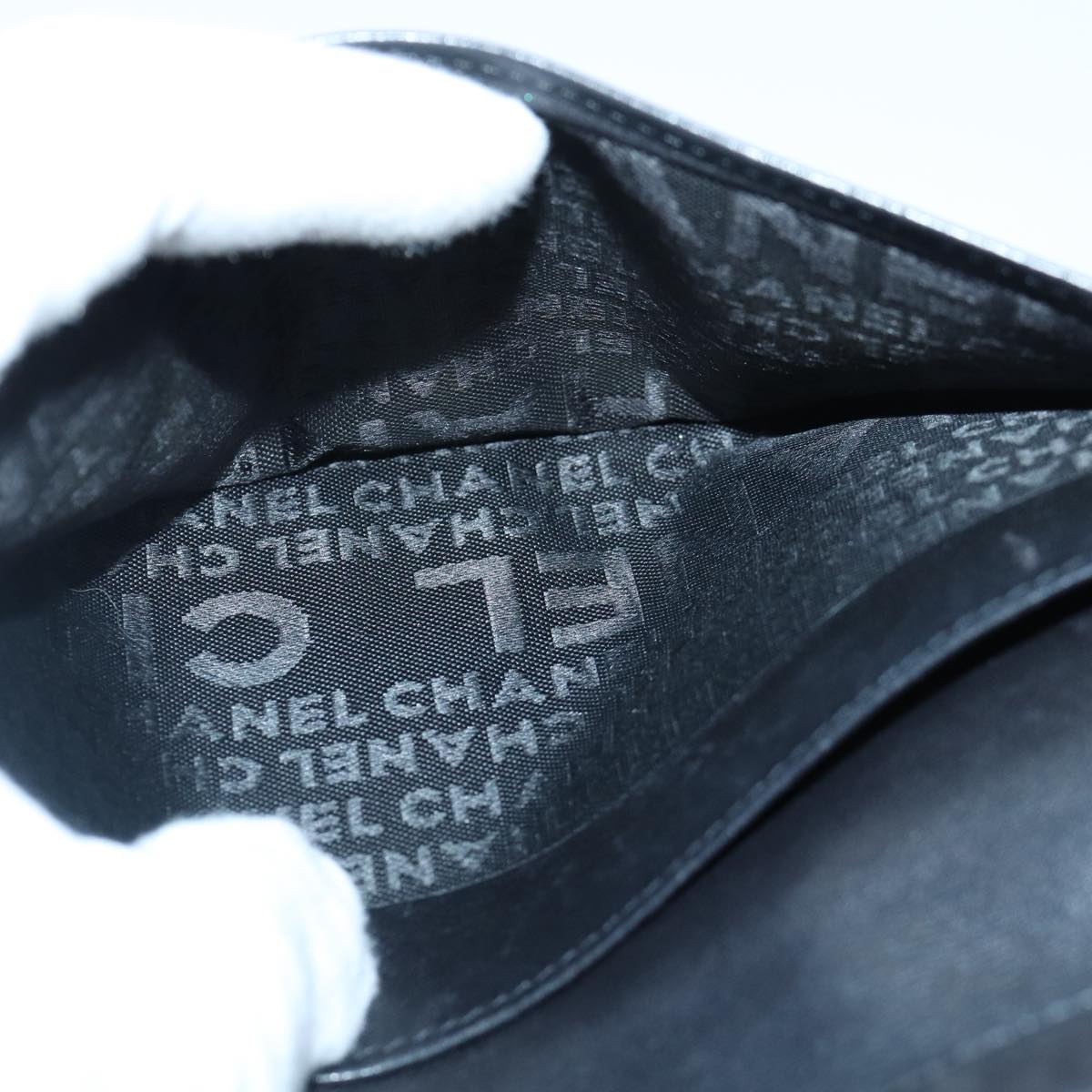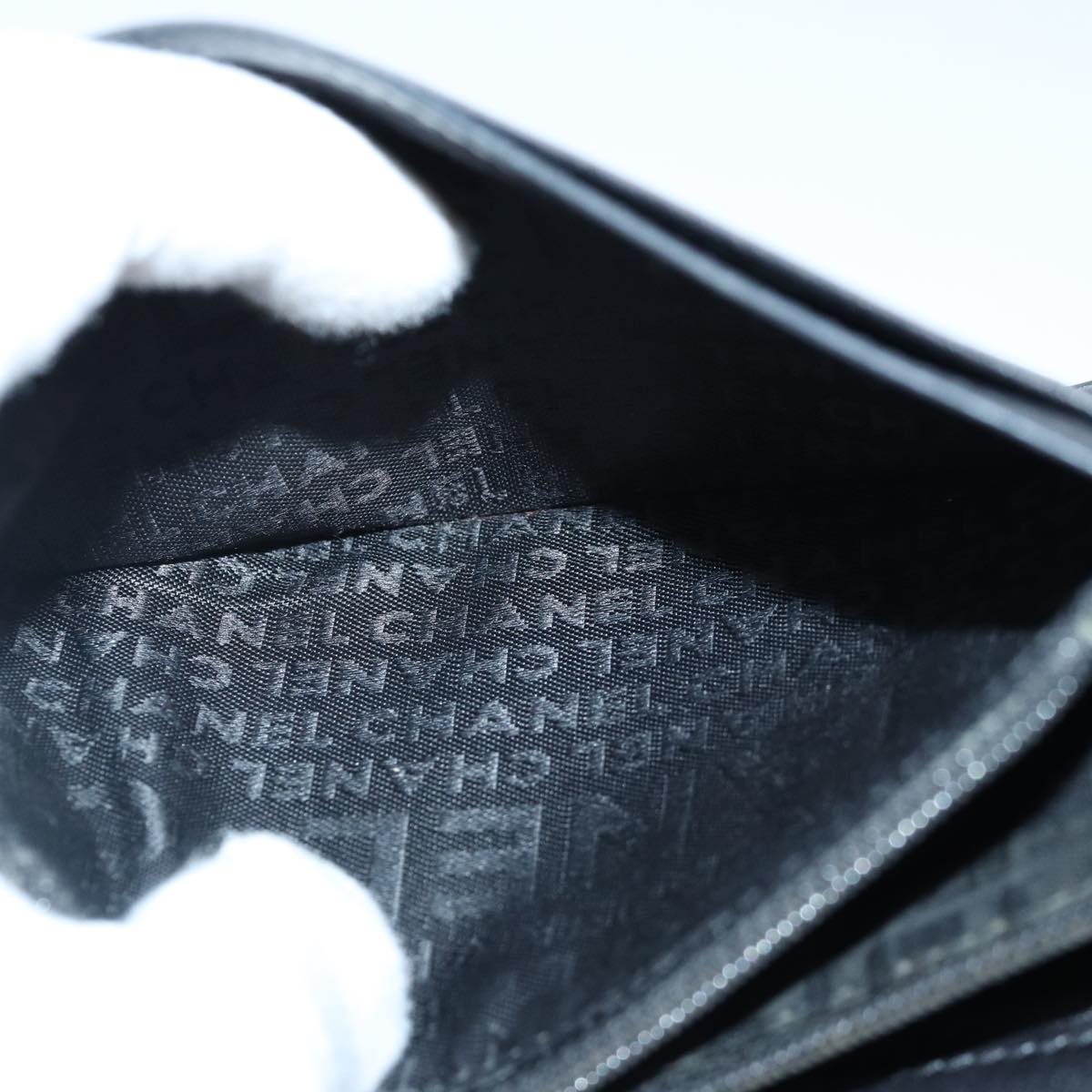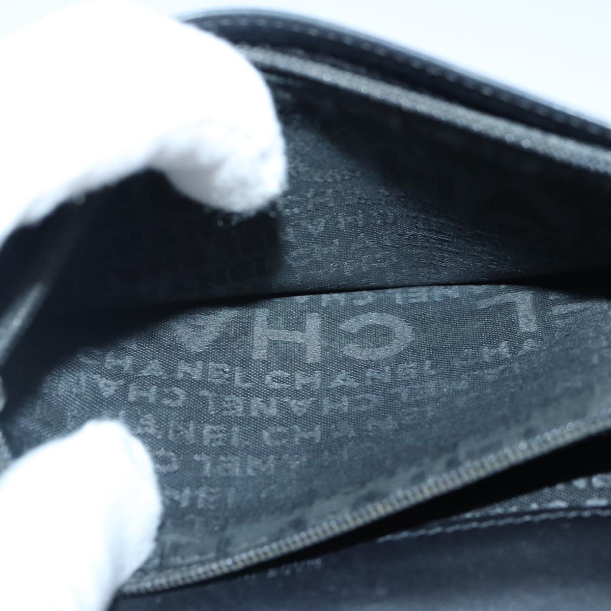CHANEL Matelasse Wallet Leather Black Silver CC Auth bs16854