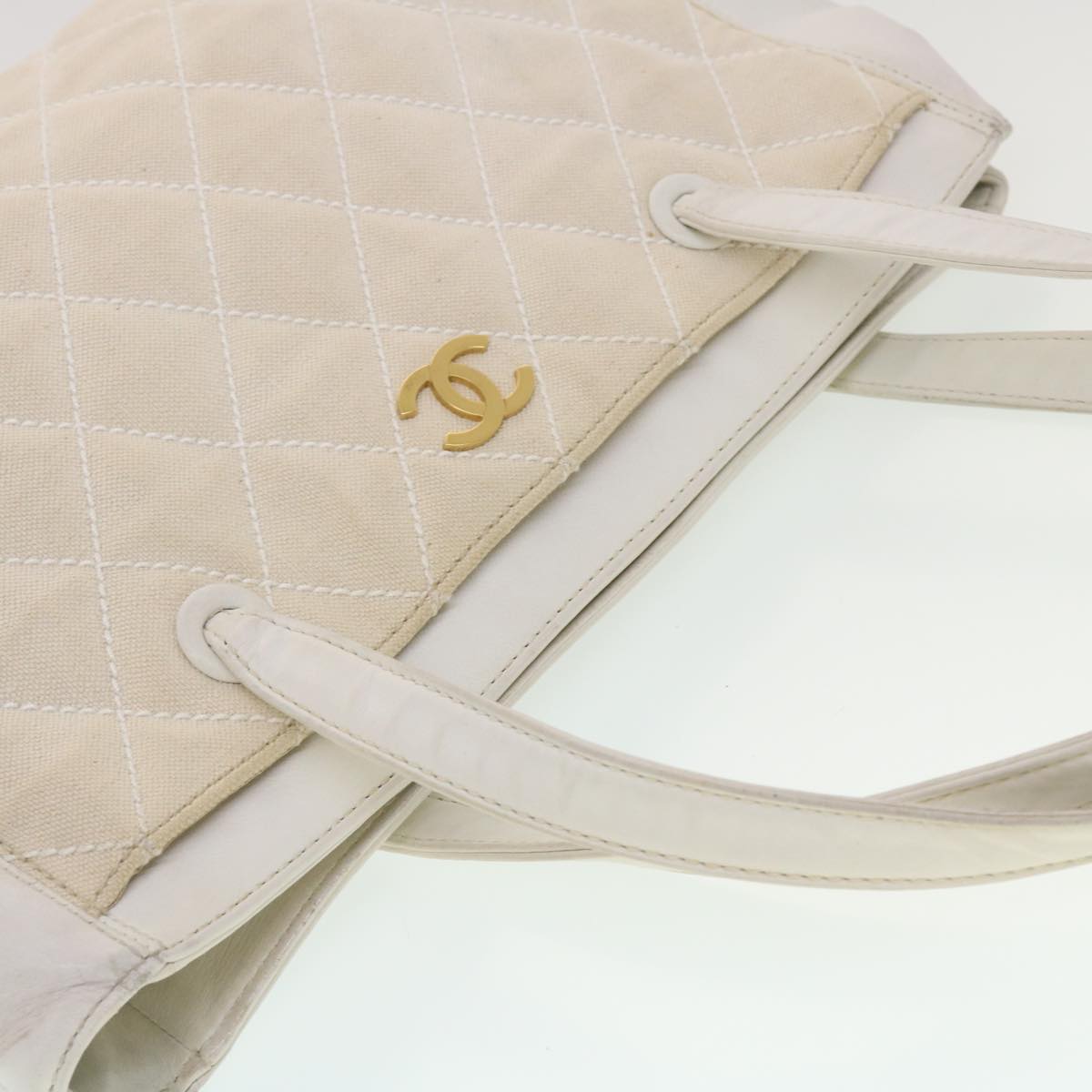 CHANEL Matelasse Wild Stitch Tote Bag Canvas Beige CC Auth 43309