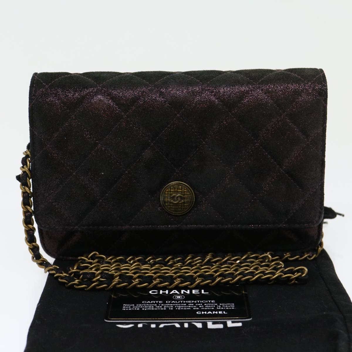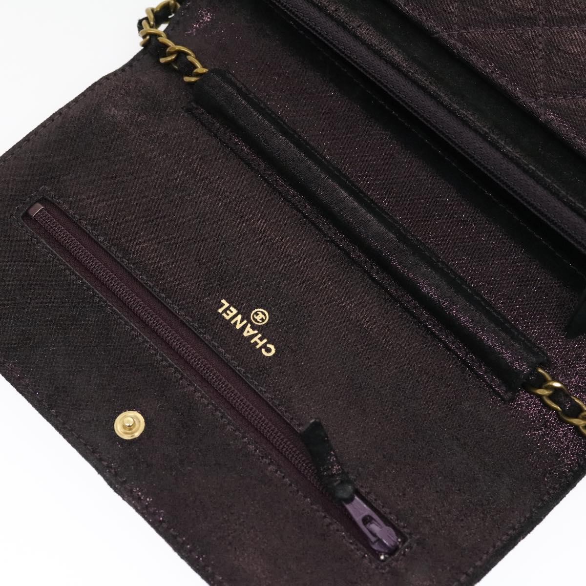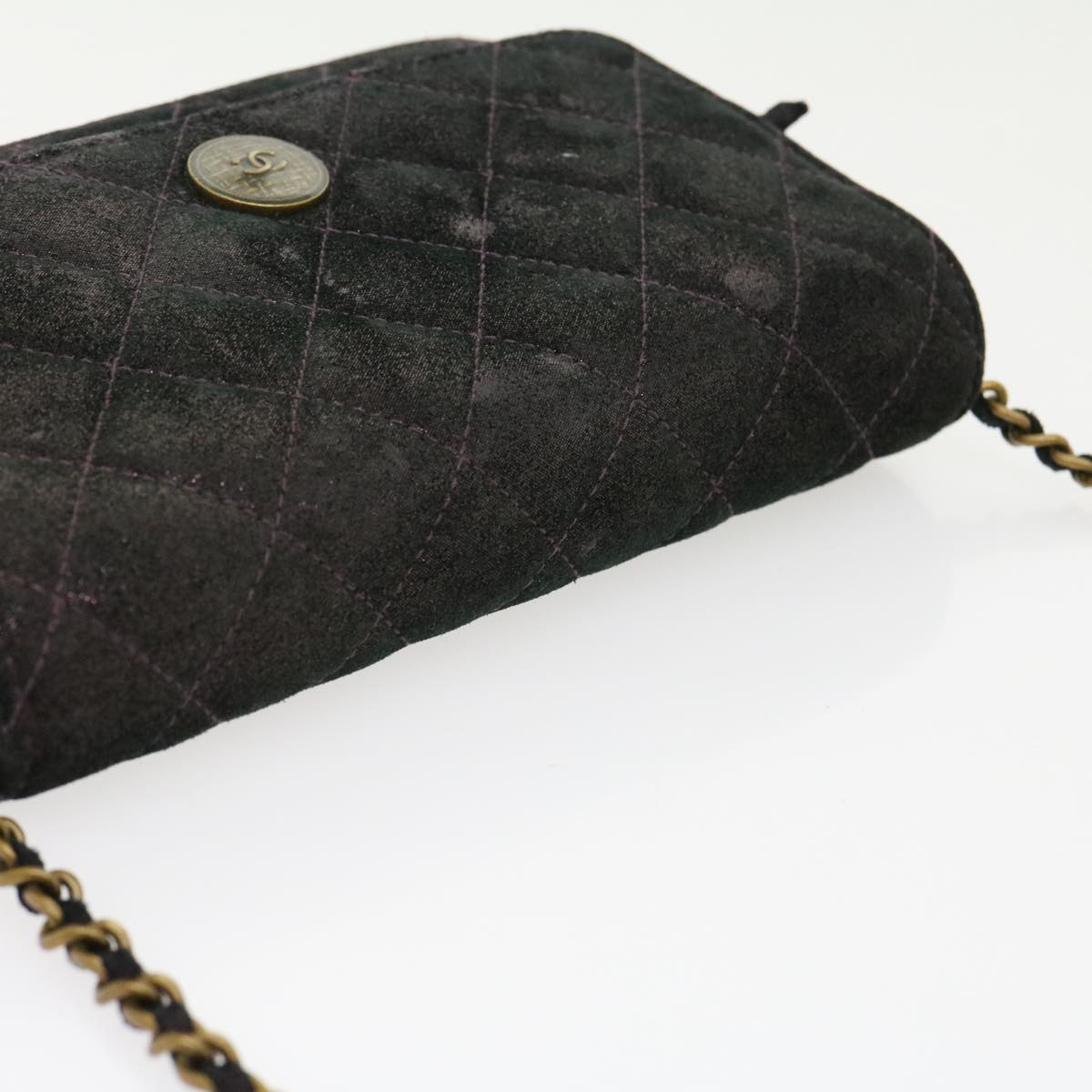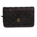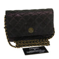 CHANEL Matrasse Chain Shoulder Bag Satin Purple CC Auth 30950A