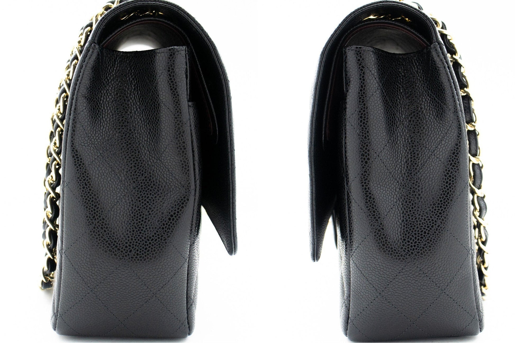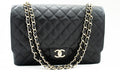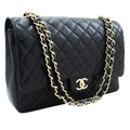 An CHANEL Maxi Classic Handbag Grained Calfskin Double New Chain Shoulder Bag.