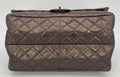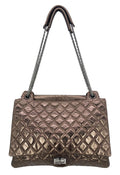 Metallic bronze quilted glazed calfskin exterior trimmed with gunmetal hardware.