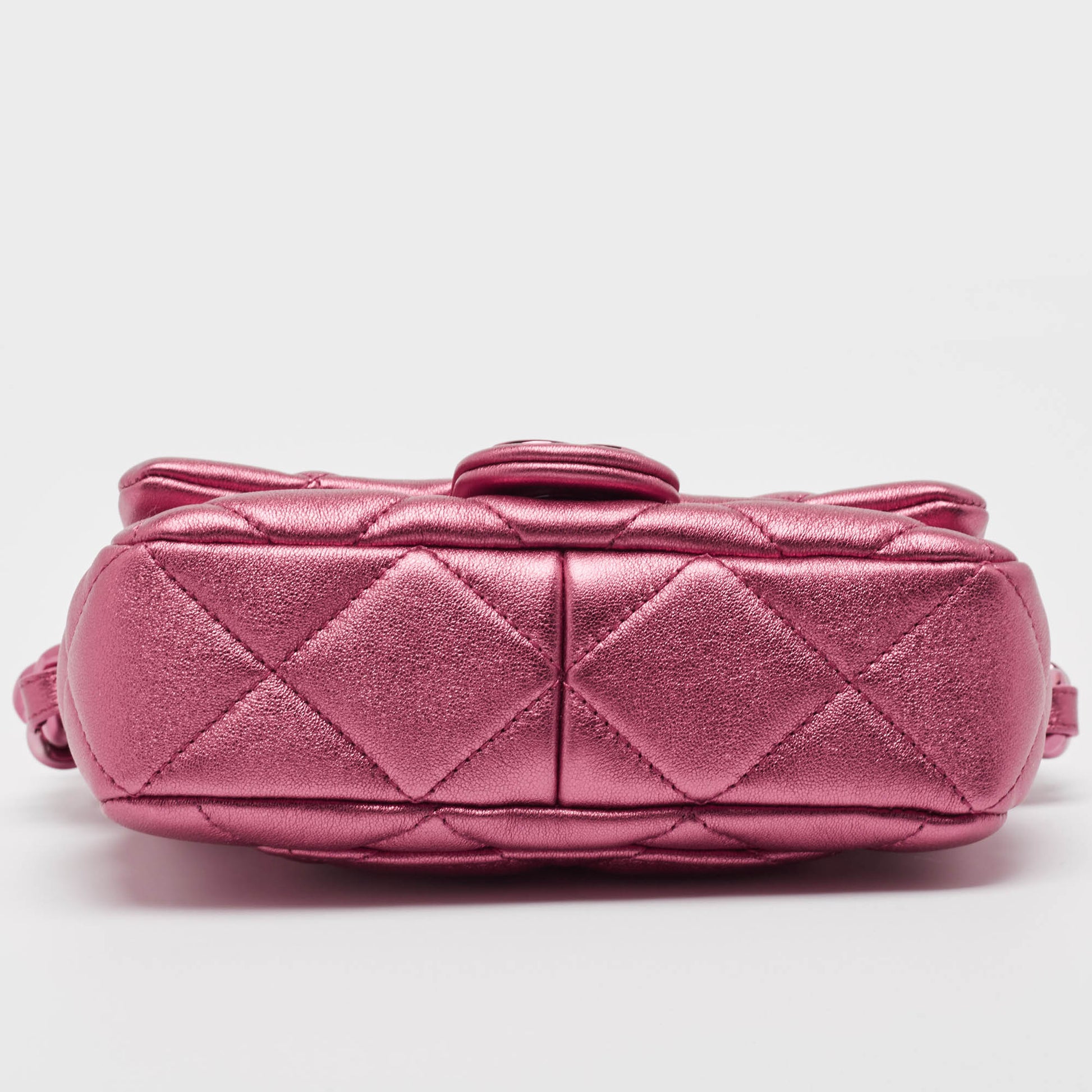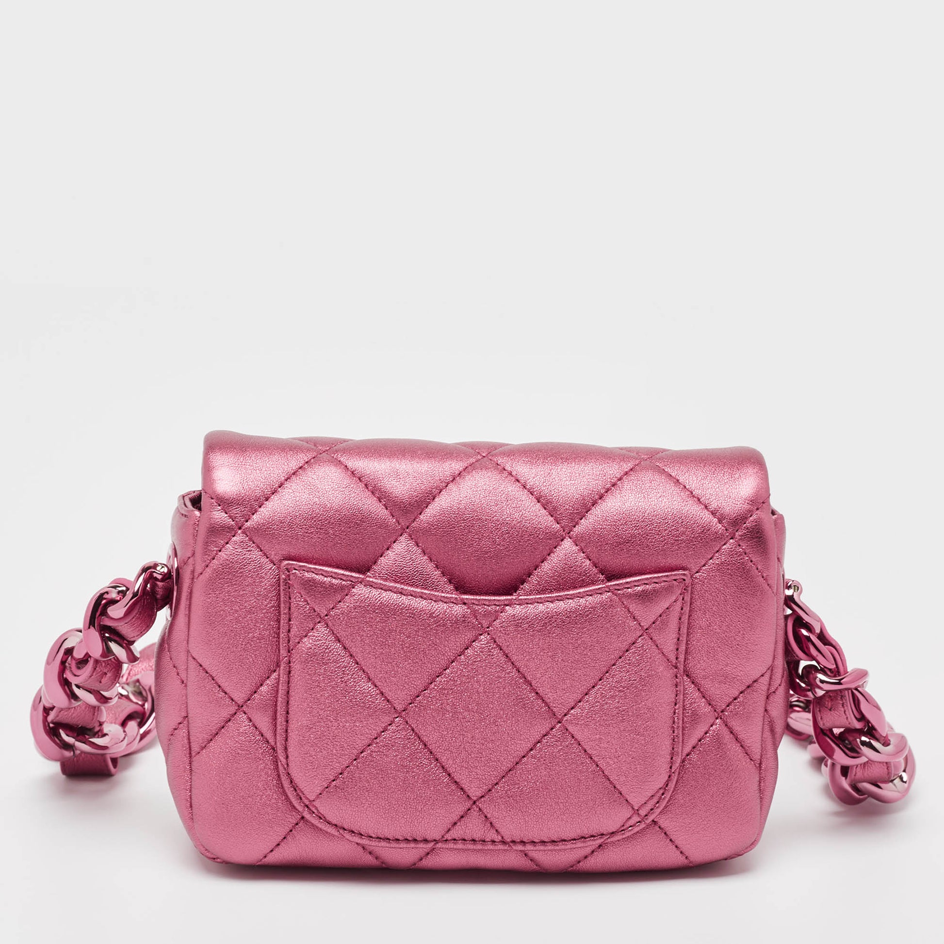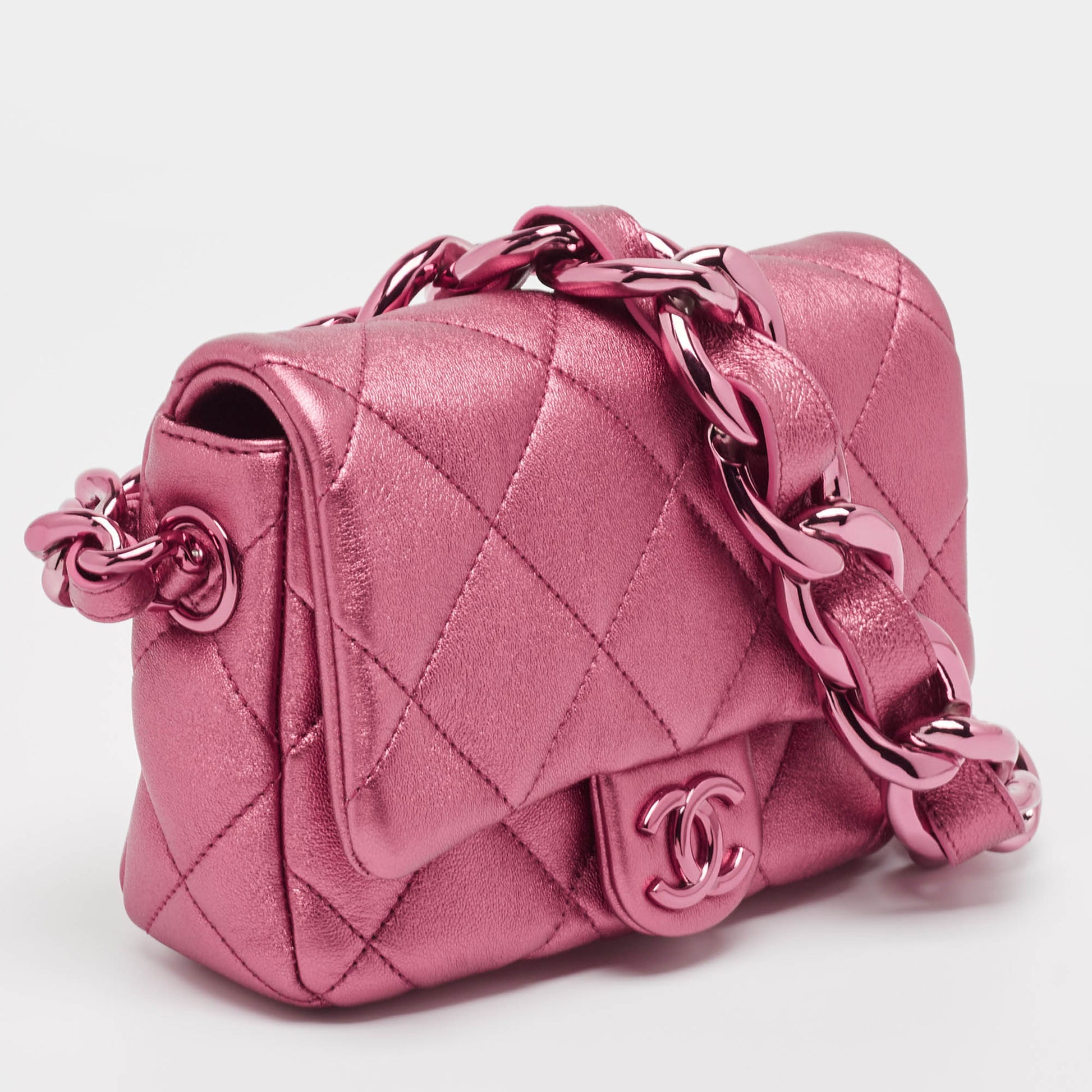 CHANEL Metallic Pink Quilted Leather Mini New Bag