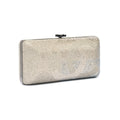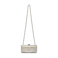 Crafted with a luxurious metallized lambskin and adorned with dazzling strass, this clutch exudes elegance and sophistication.