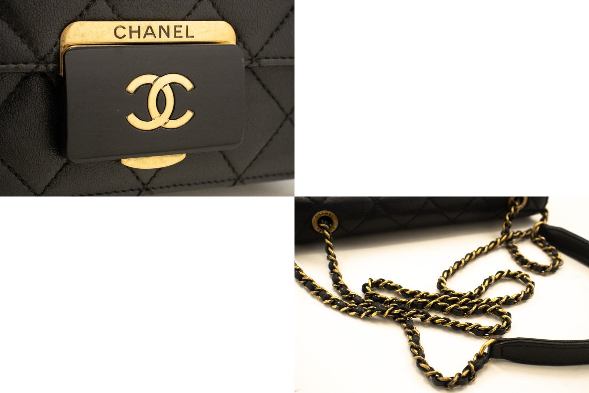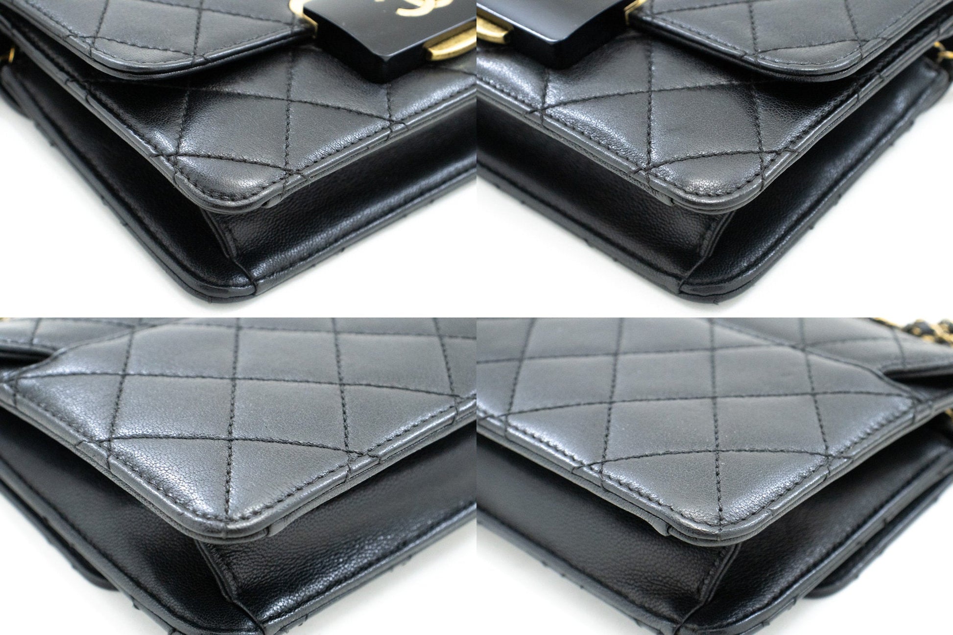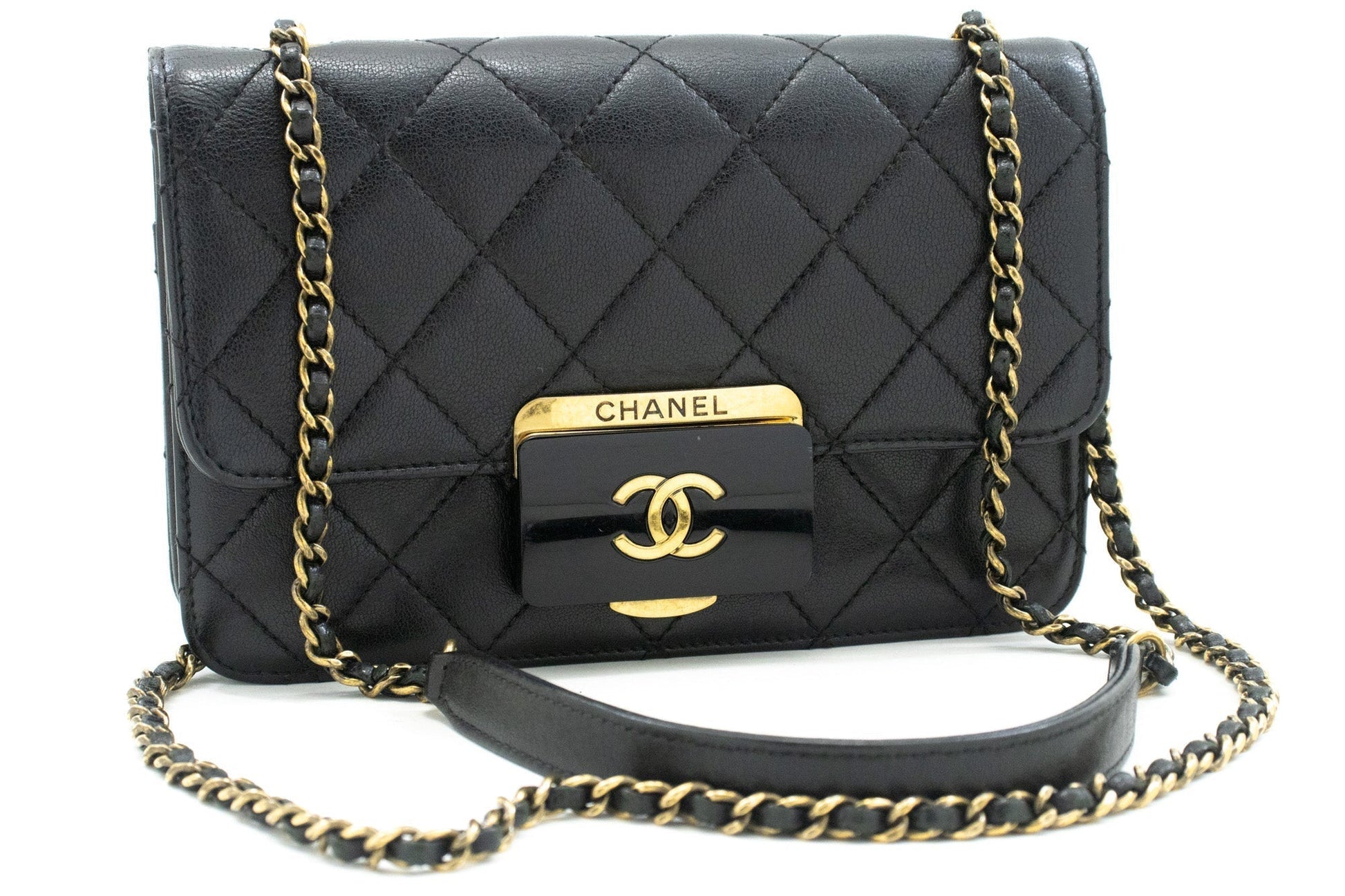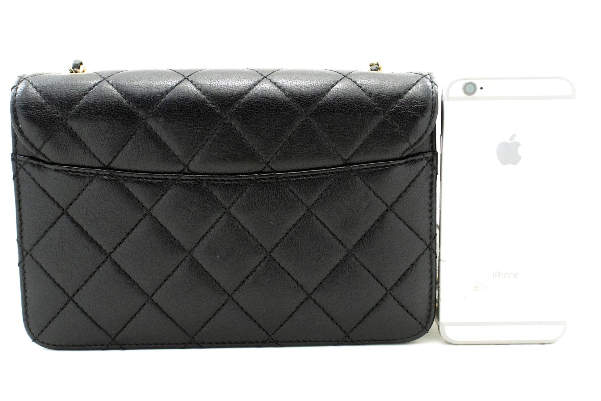 An CHANEL Mini Calfskin Chain Shoulder Bag Black Quilted New Leather.