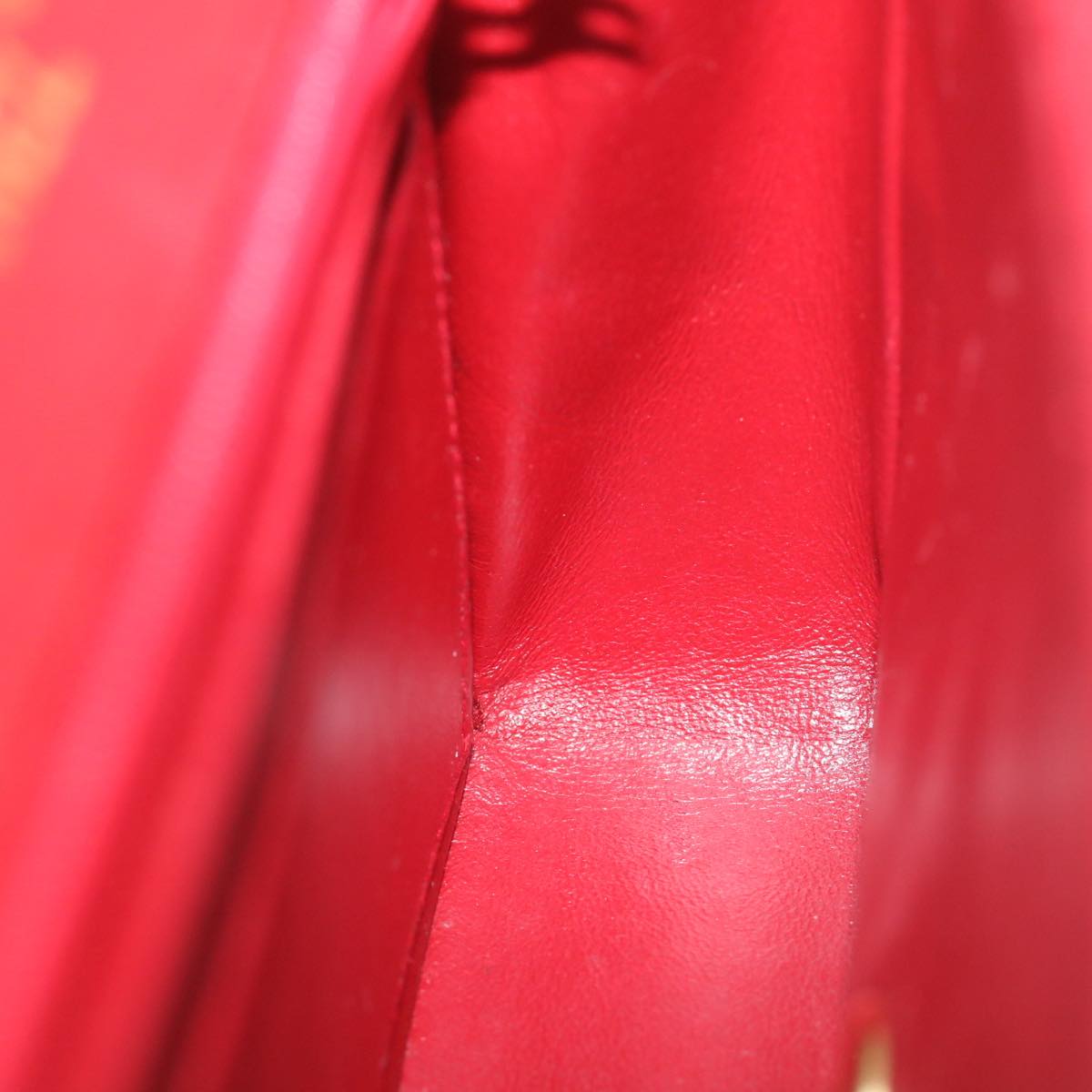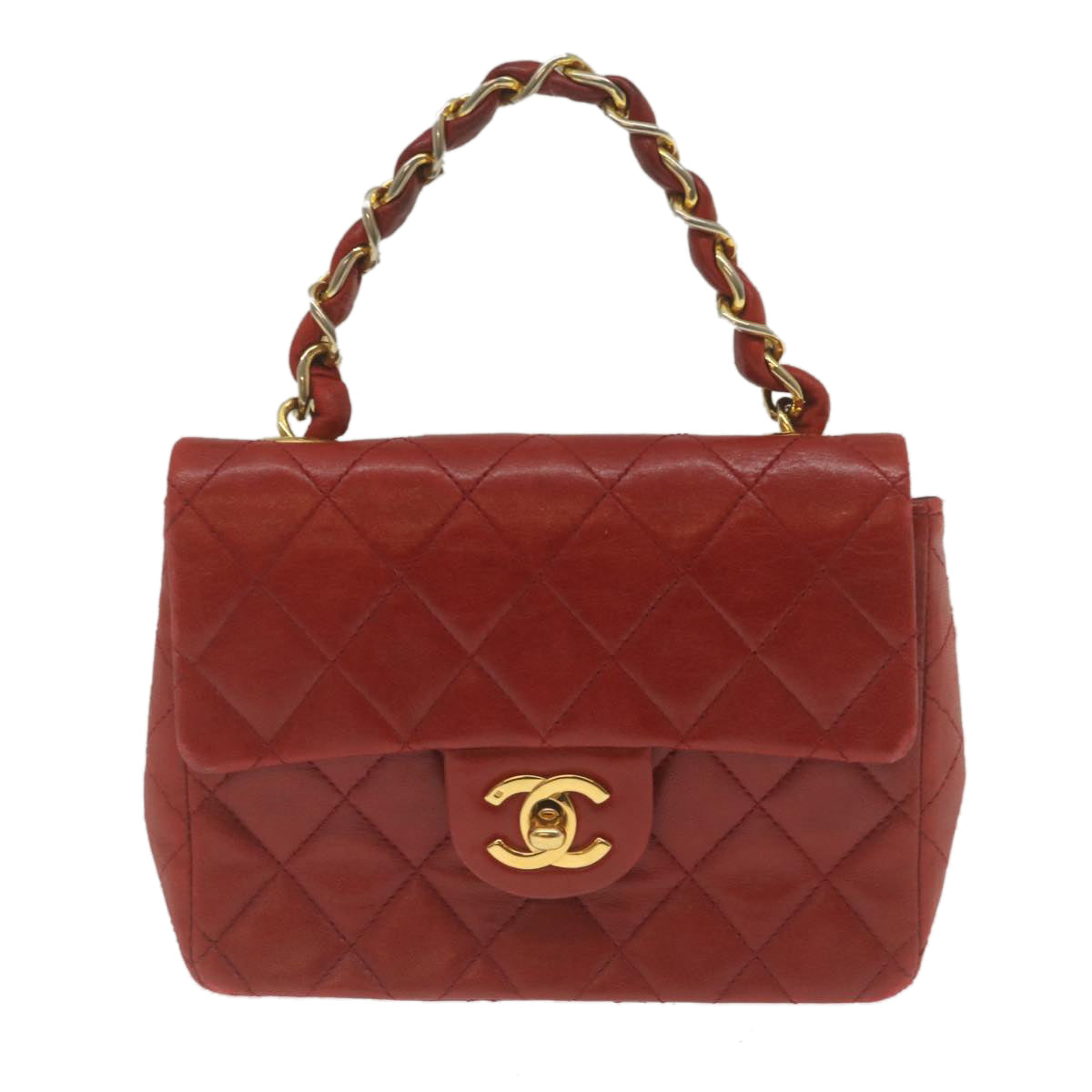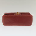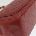 CHANEL Mini Matelasse Chain New Hand Bag Lamb Skin Red Gold CC Auth hs688A