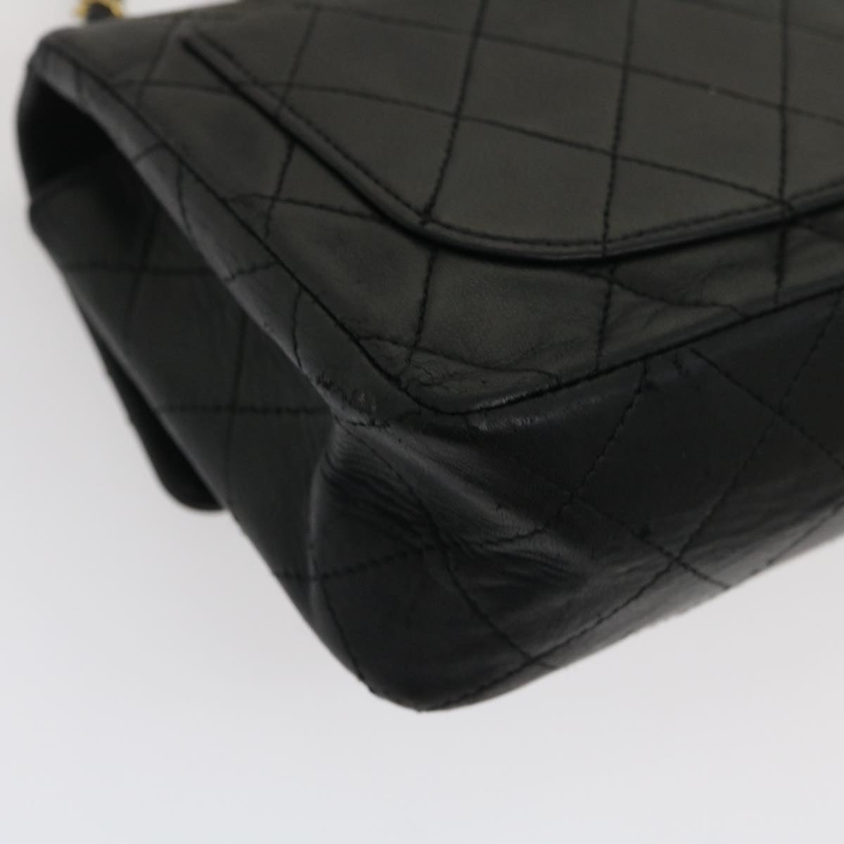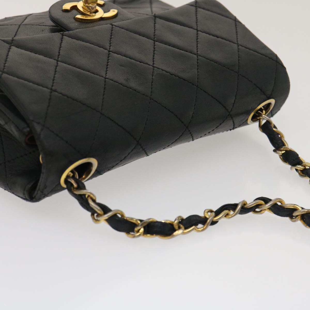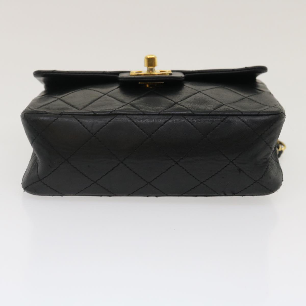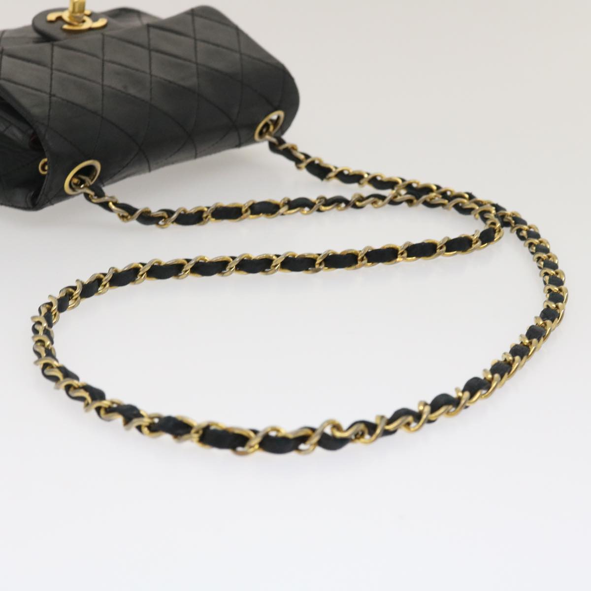 CHANEL Mini Matelasse Chain New Shoulder Bag Lamb Skin Black Gold Auth ai651A