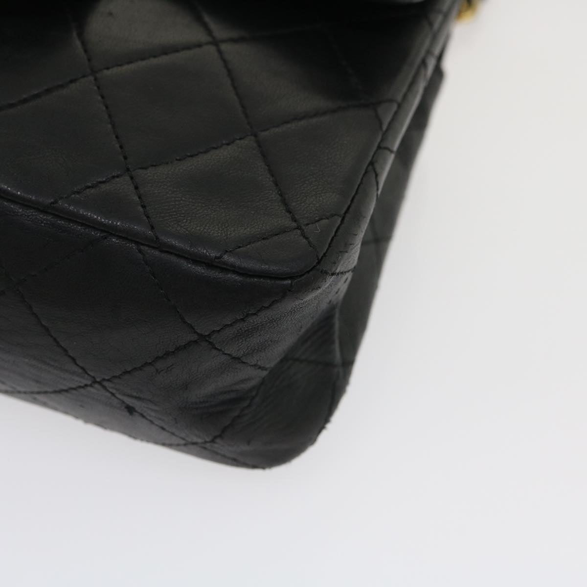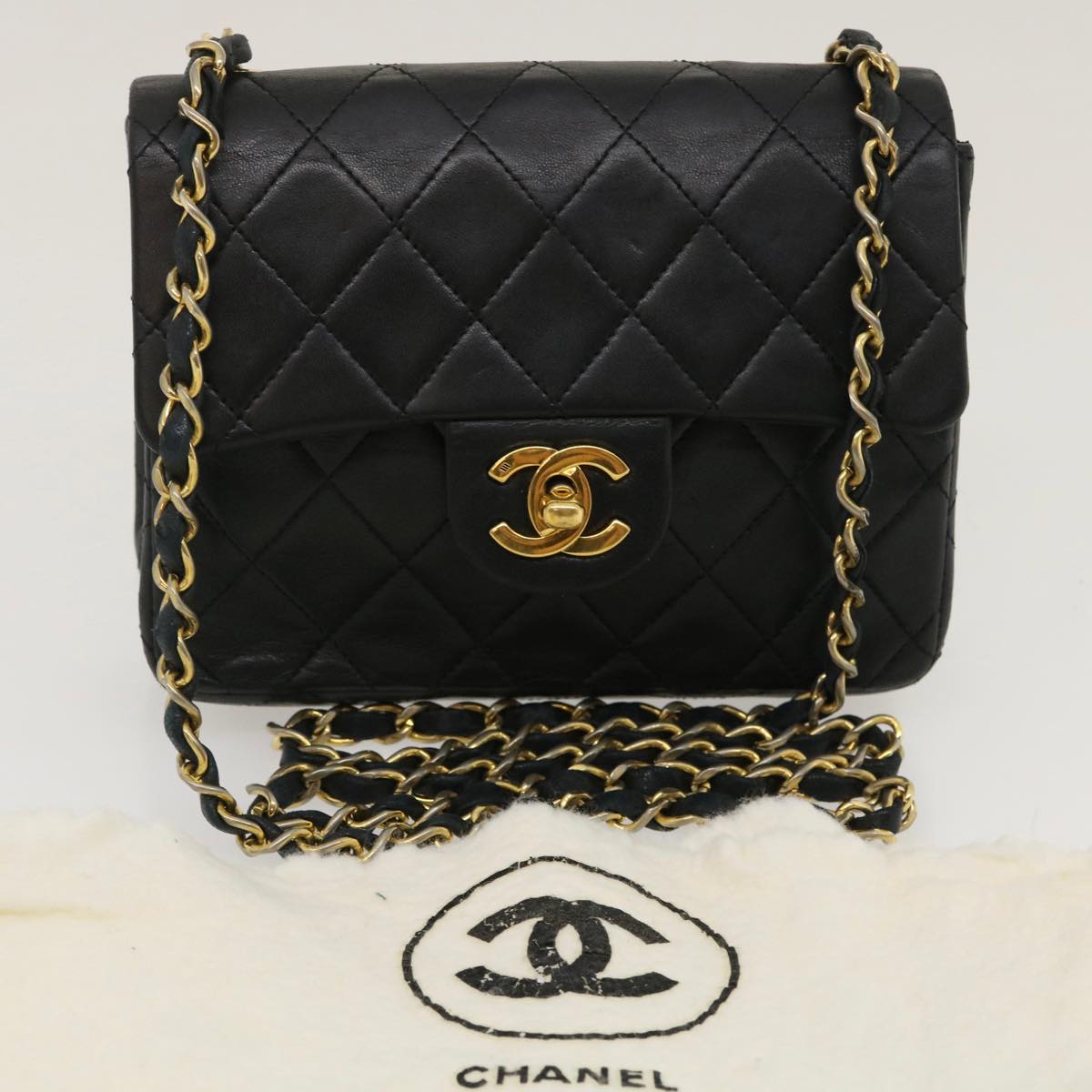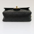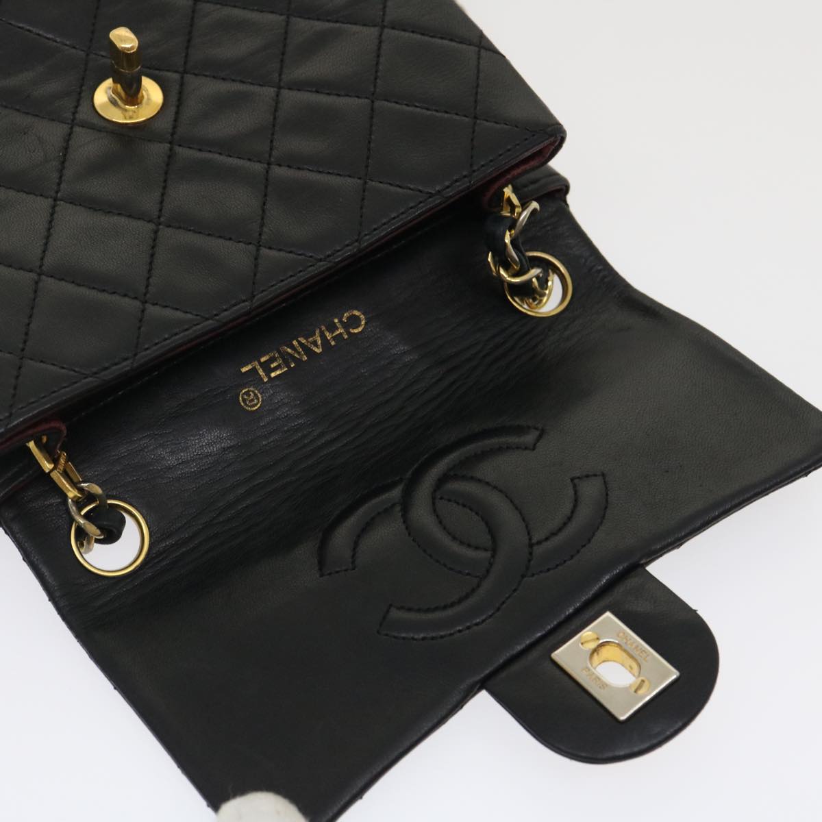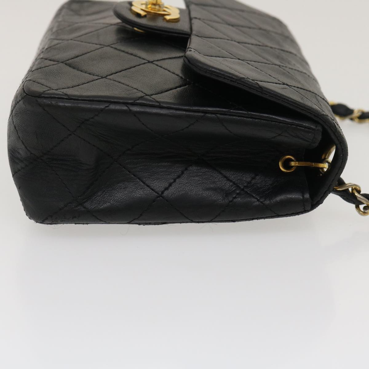 CHANEL Mini Matelasse Chain New Shoulder Bag Lamb Skin Black Gold Auth ai651A