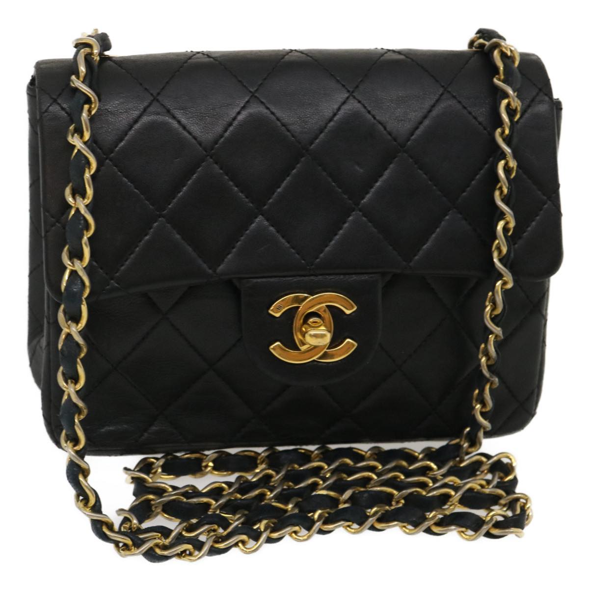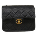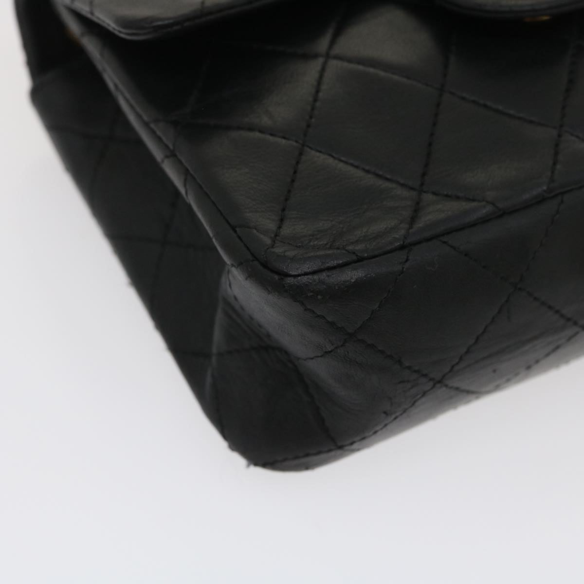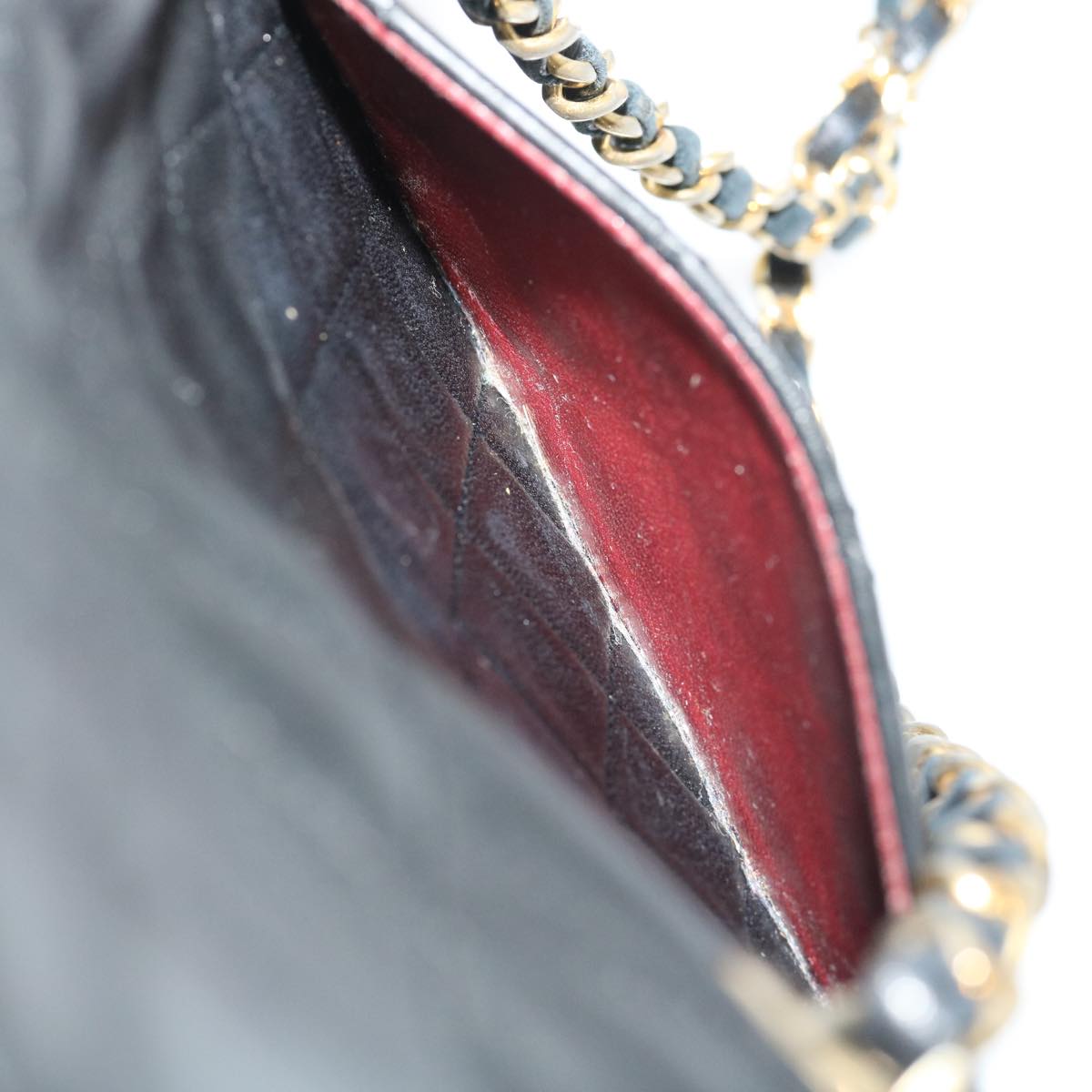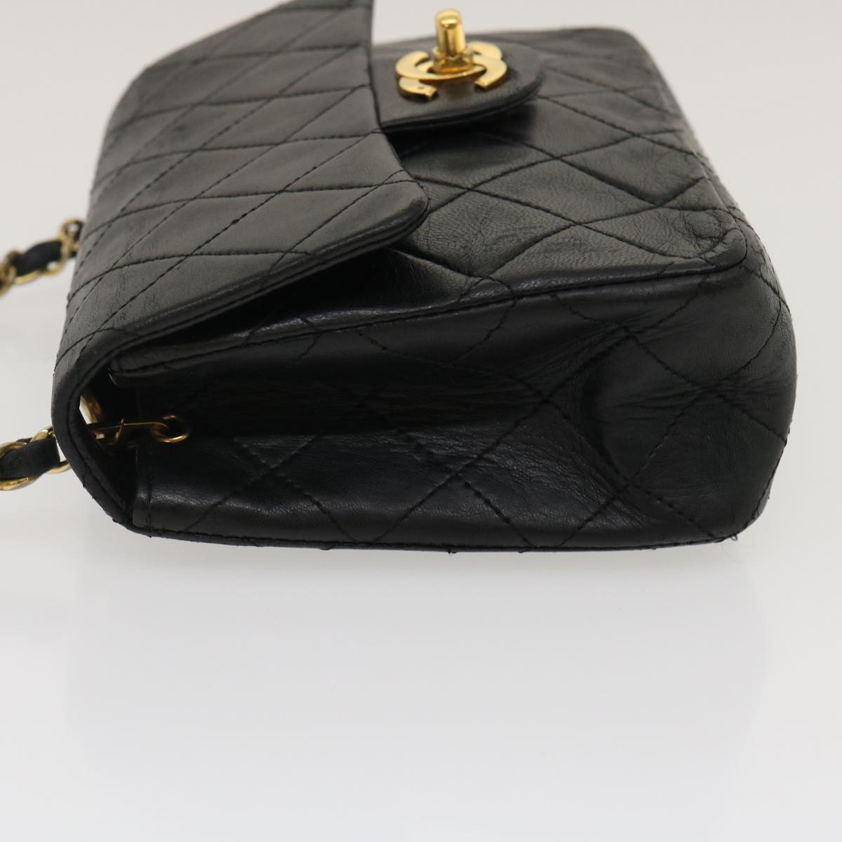 CHANEL Mini Matelasse Chain New Shoulder Bag Lamb Skin Black Gold Auth ai651A