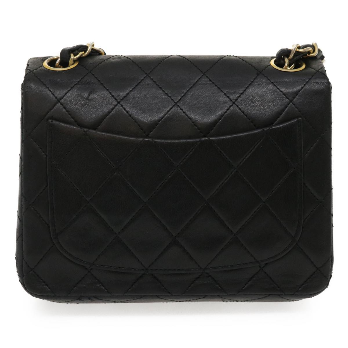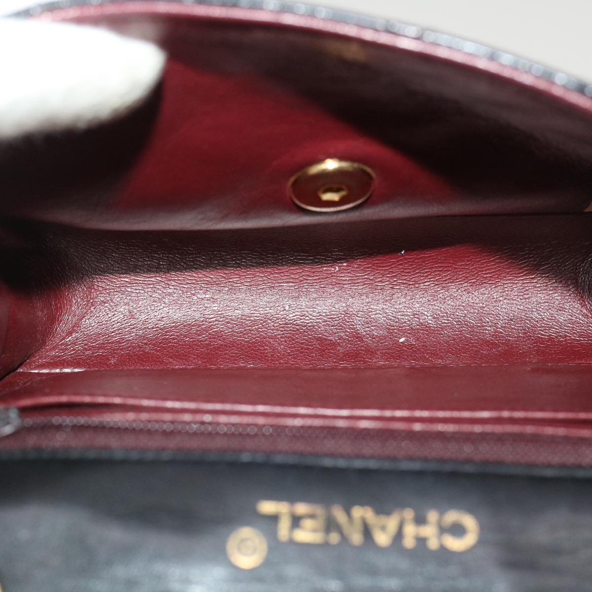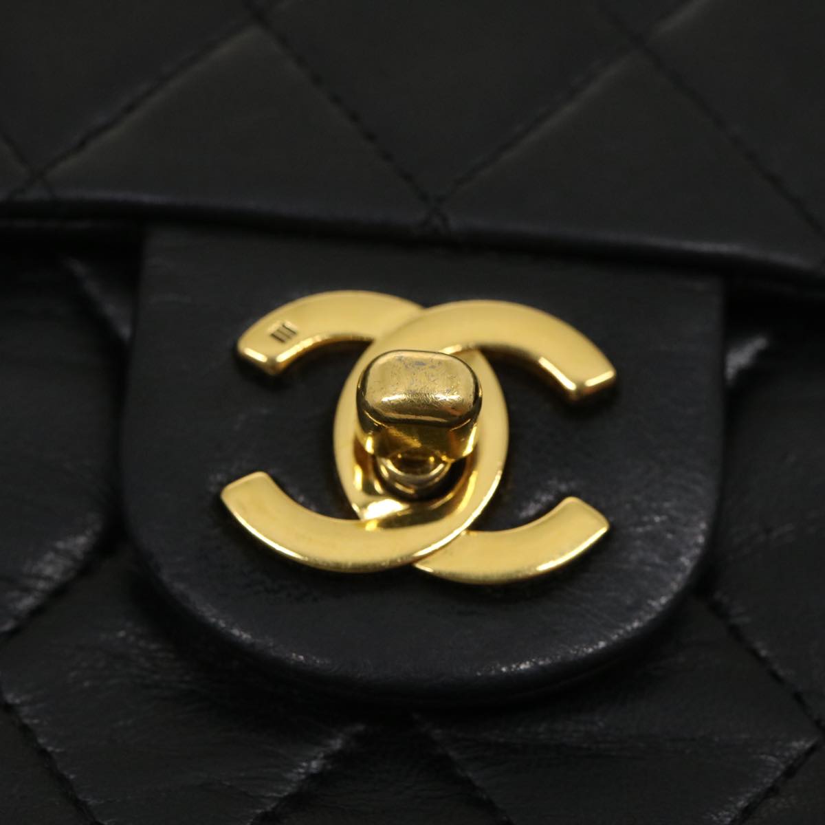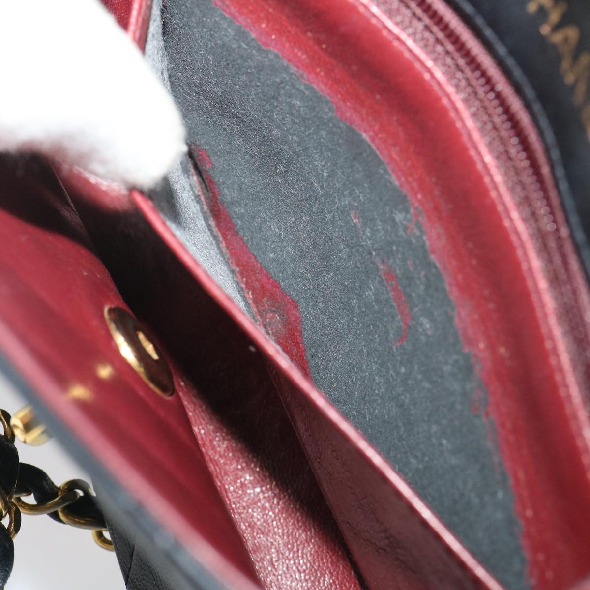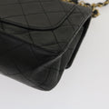 CHANEL Mini Matelasse Chain New Shoulder Bag Lamb Skin Black Gold Auth ai651A