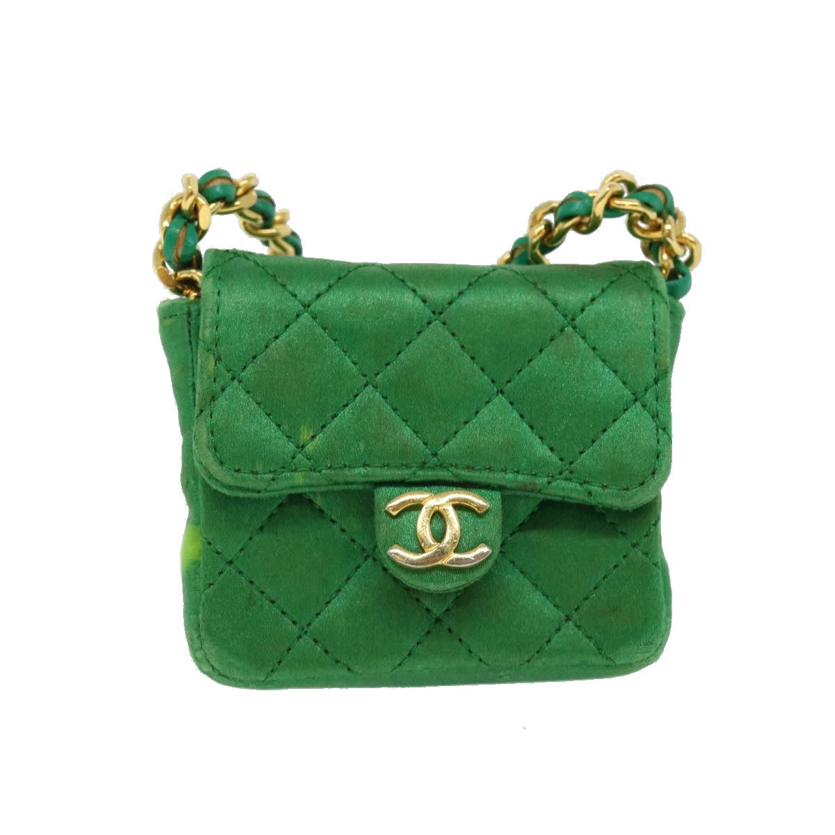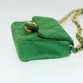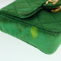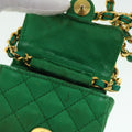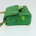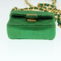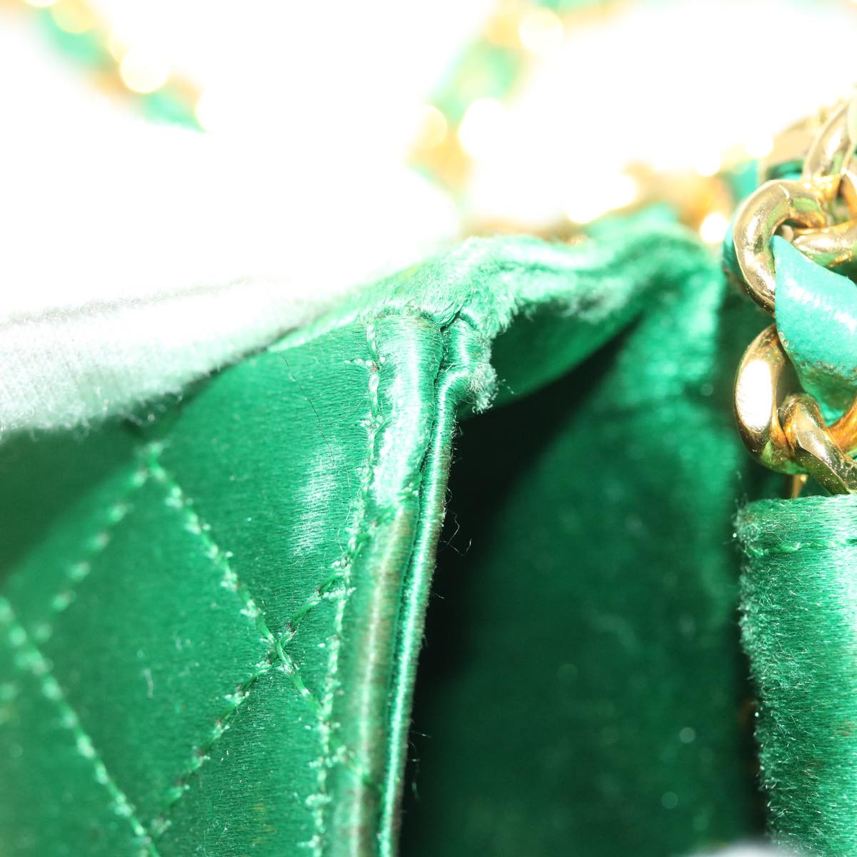 CHANEL Mini Matelasse Chain Pouch Shoulder Bag Satin Green Gold CC Auth 51271A