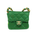 Top Quality Chanel Mini Matelasse Chain Pouch Shoulder Bag Satin Green Gold CC Auth 51271A