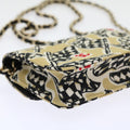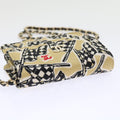 CHANEL Mini Matelasse Shoulder Bag Canvas Beige Black CC Auth 55538A