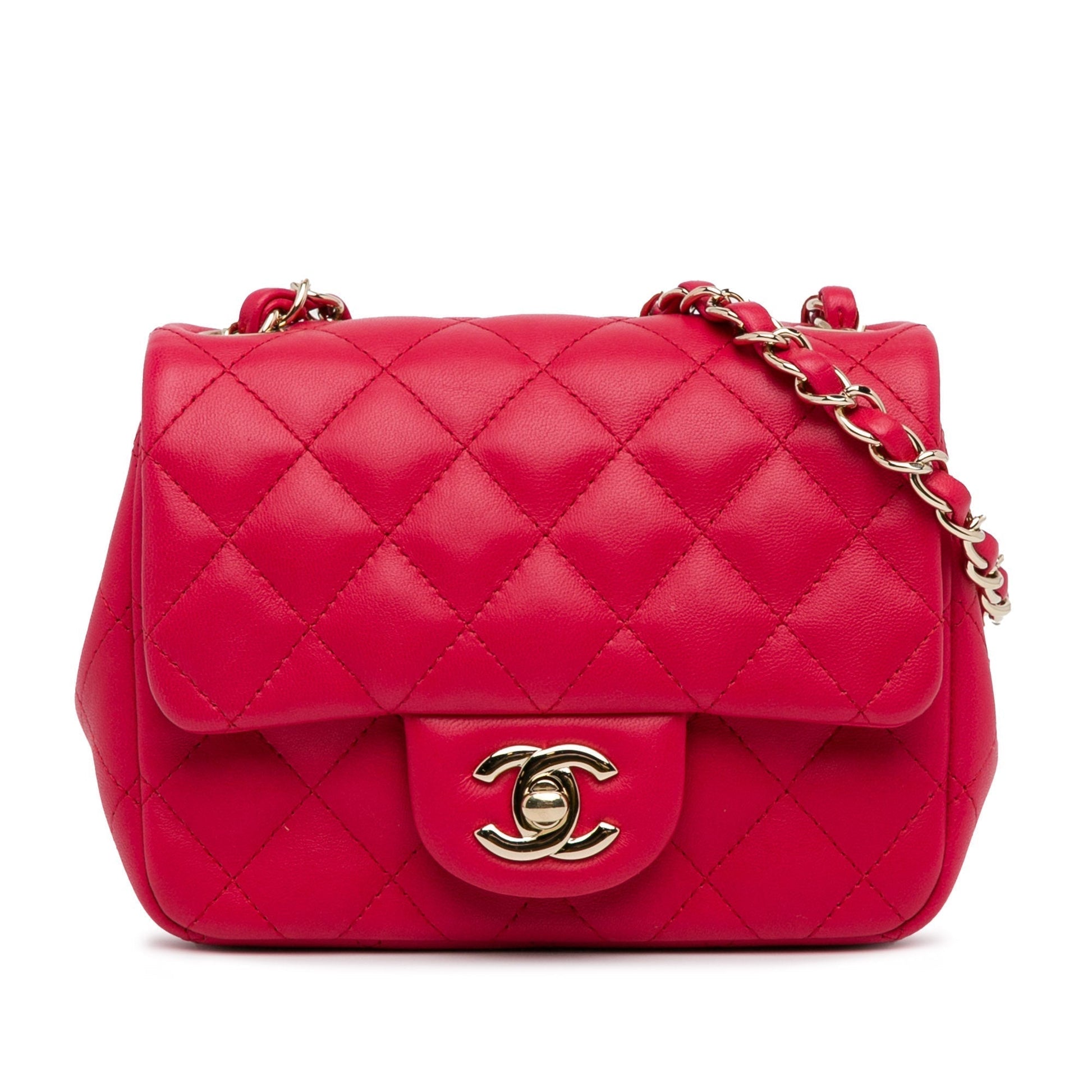 Top Quality Chanel Mini Square Classic Lambskin Single New Red