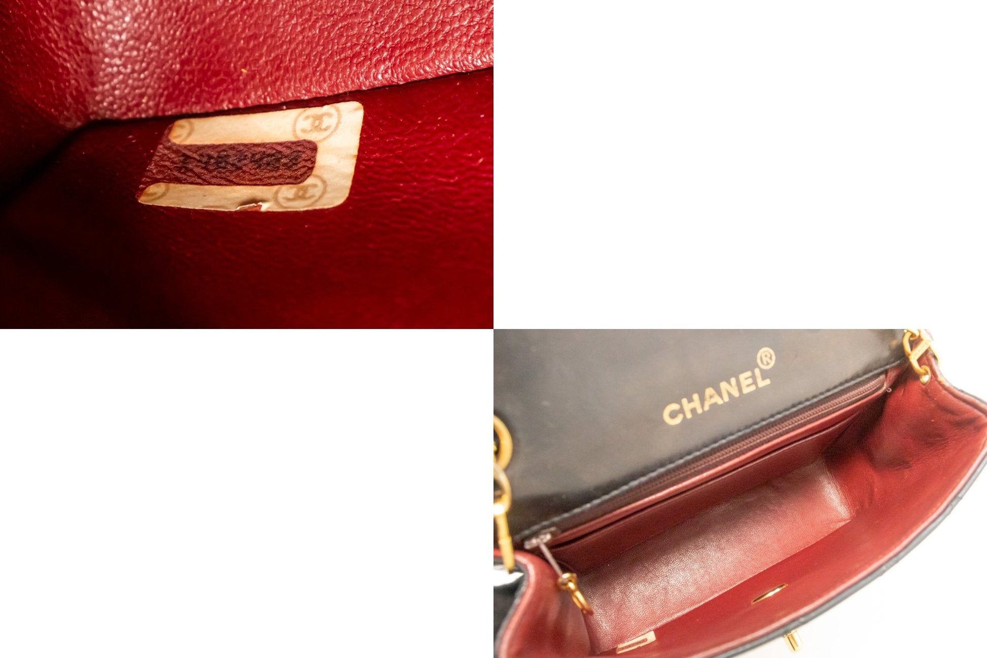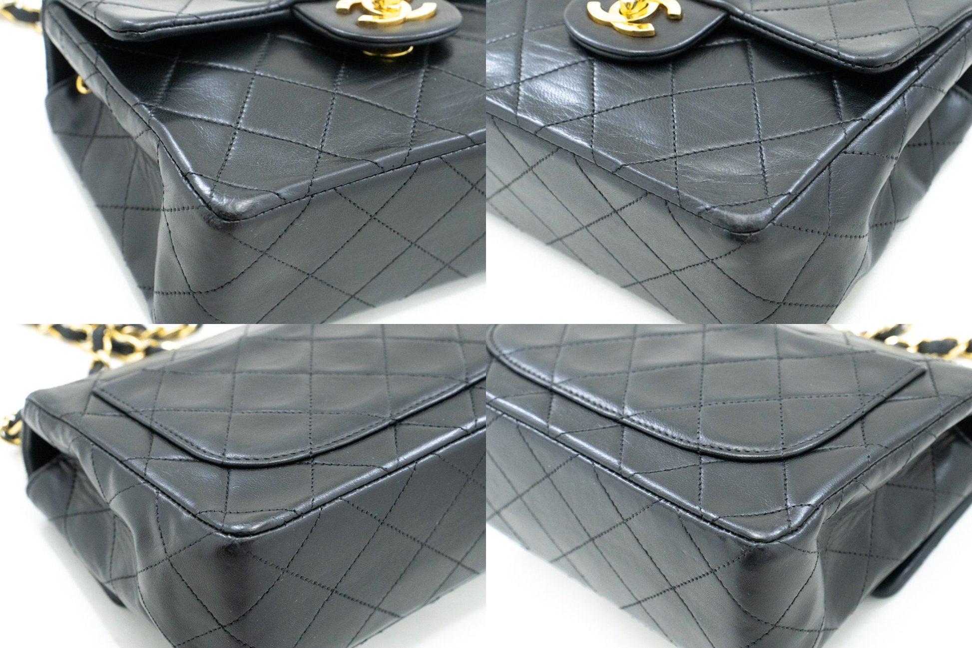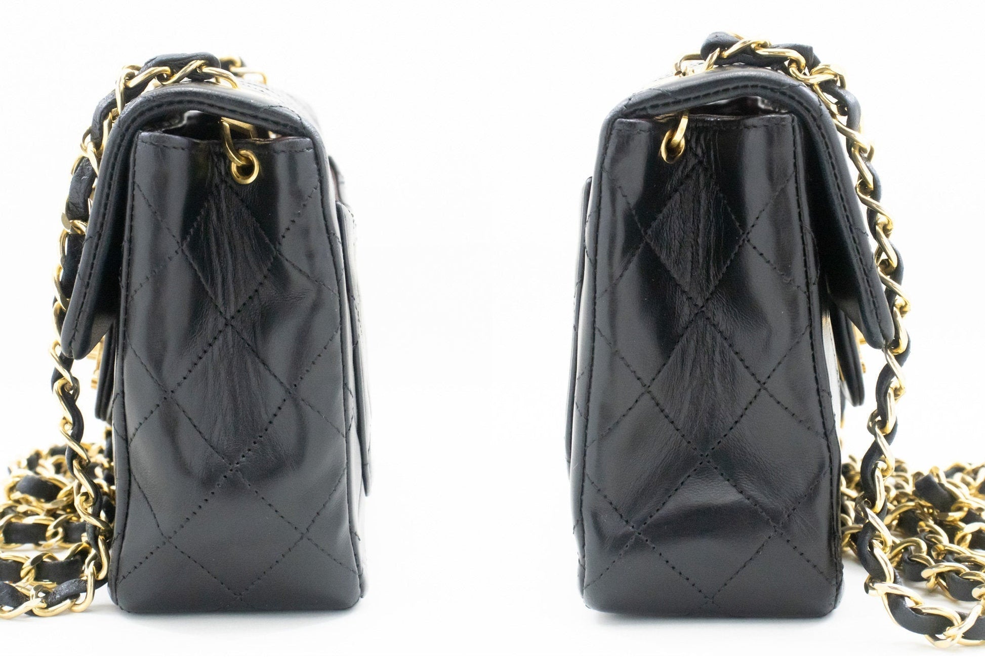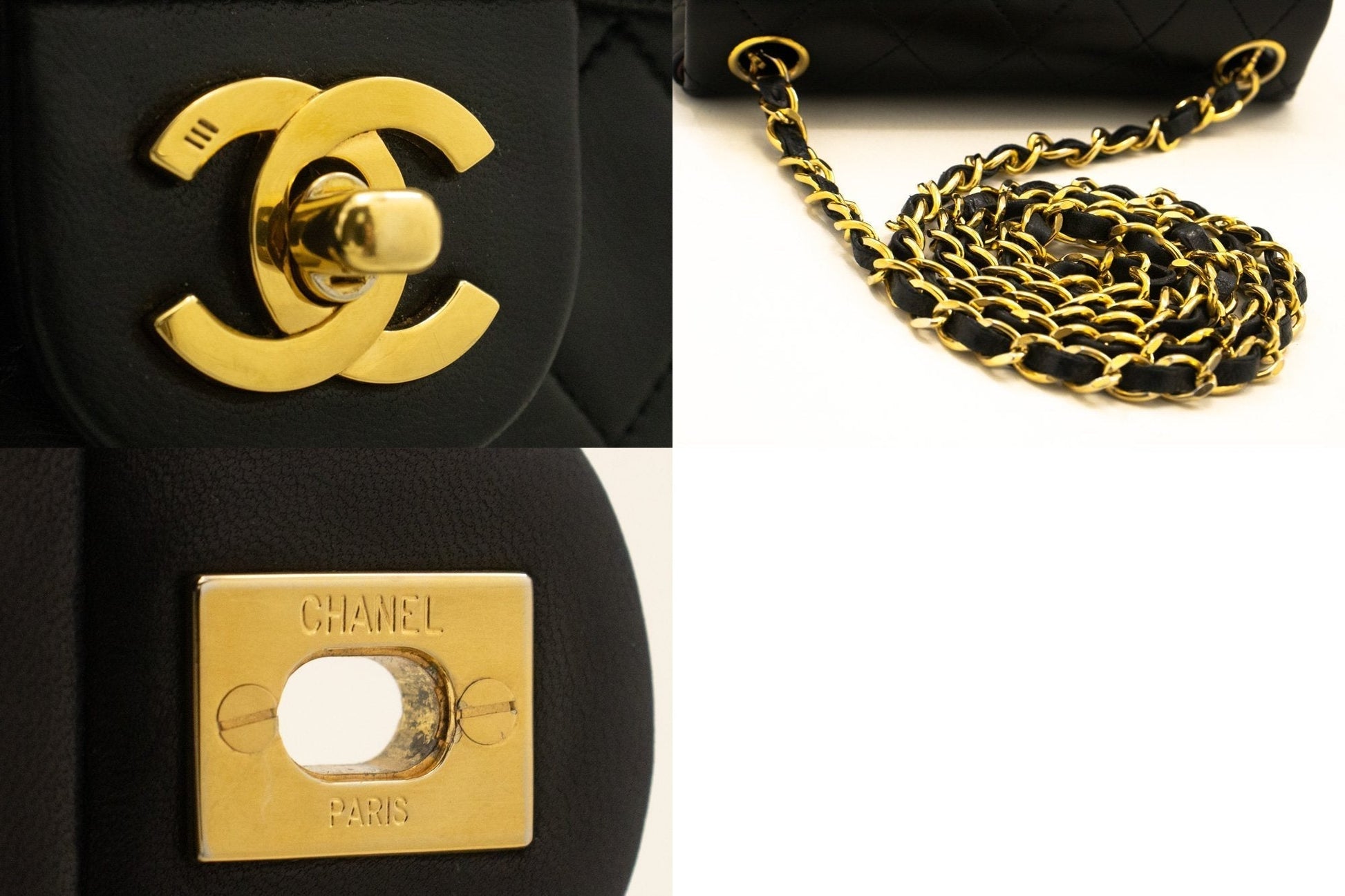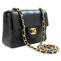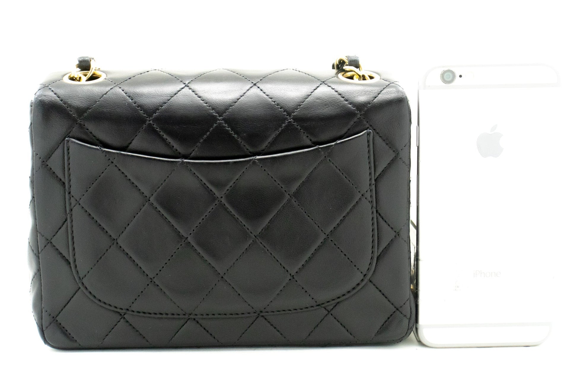 An CHANEL Mini Square Small Chain Shoulder Bag Crossbody Black Lamb.