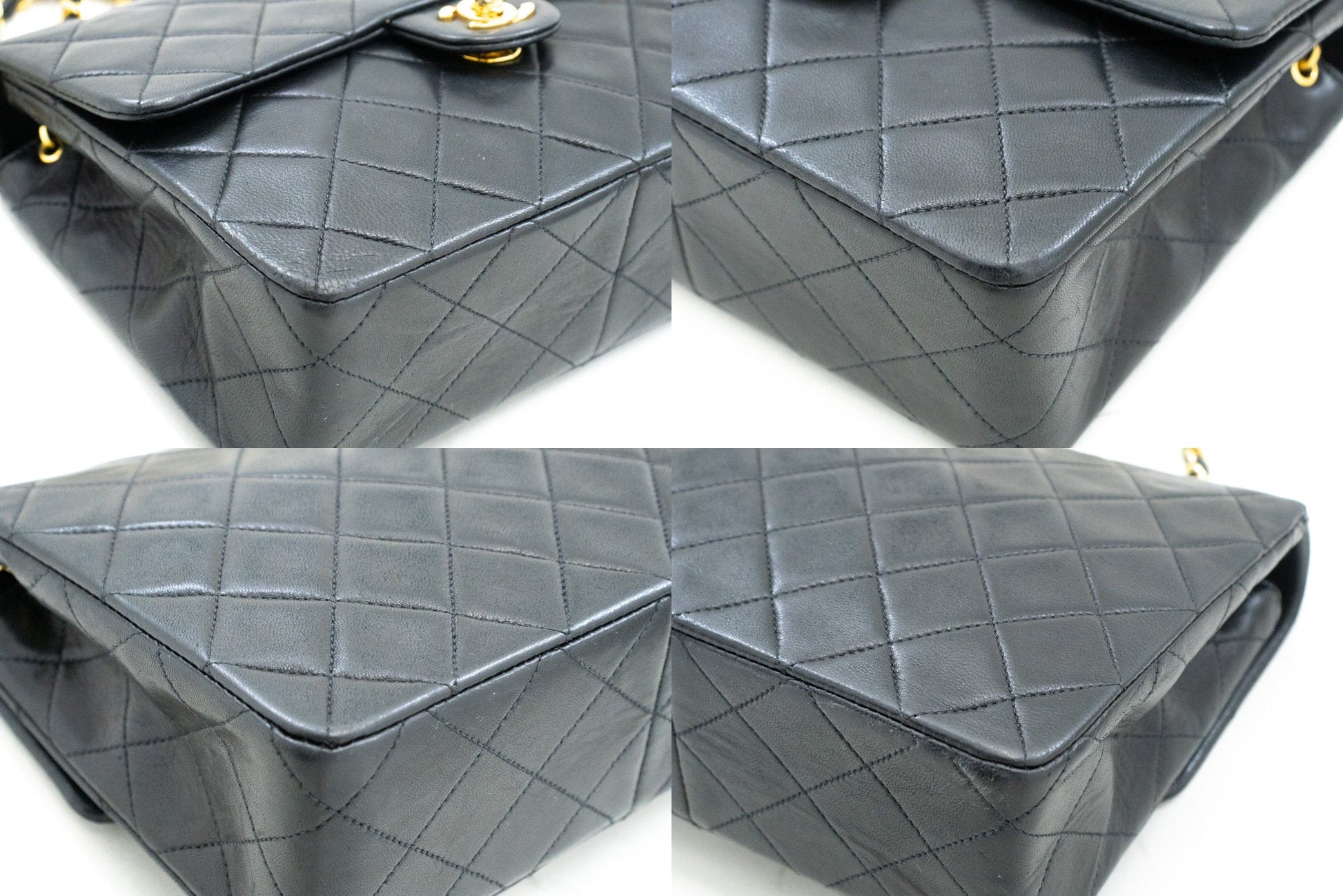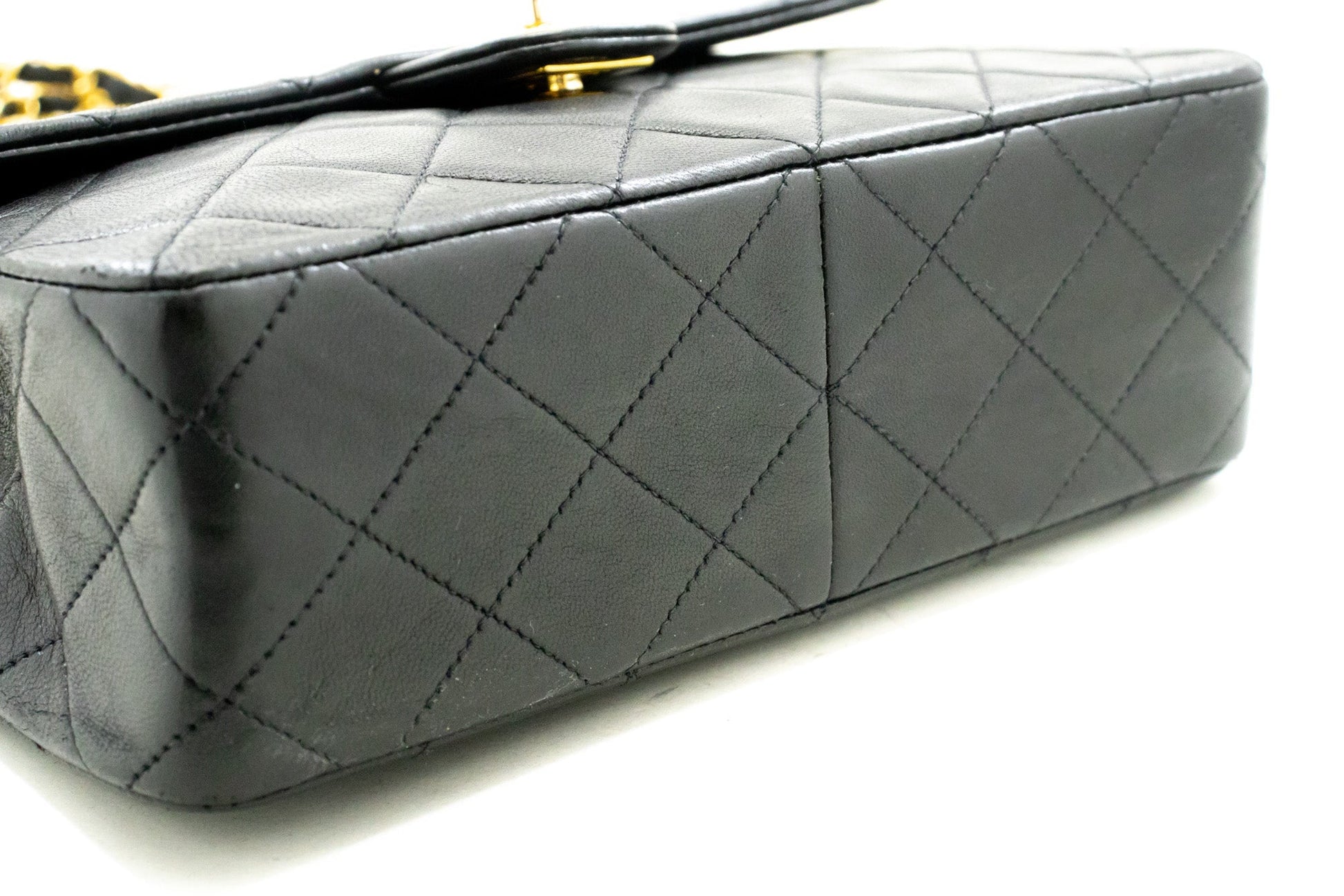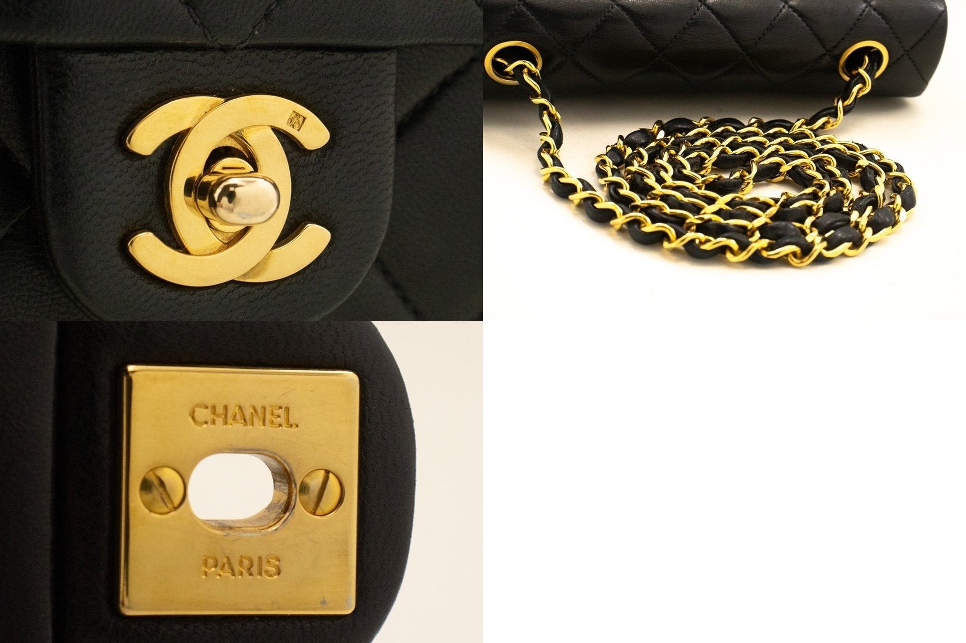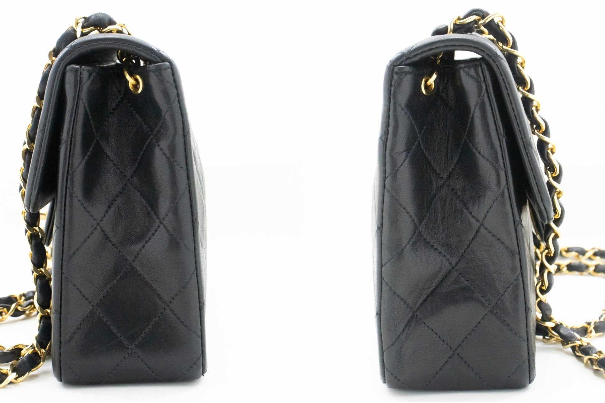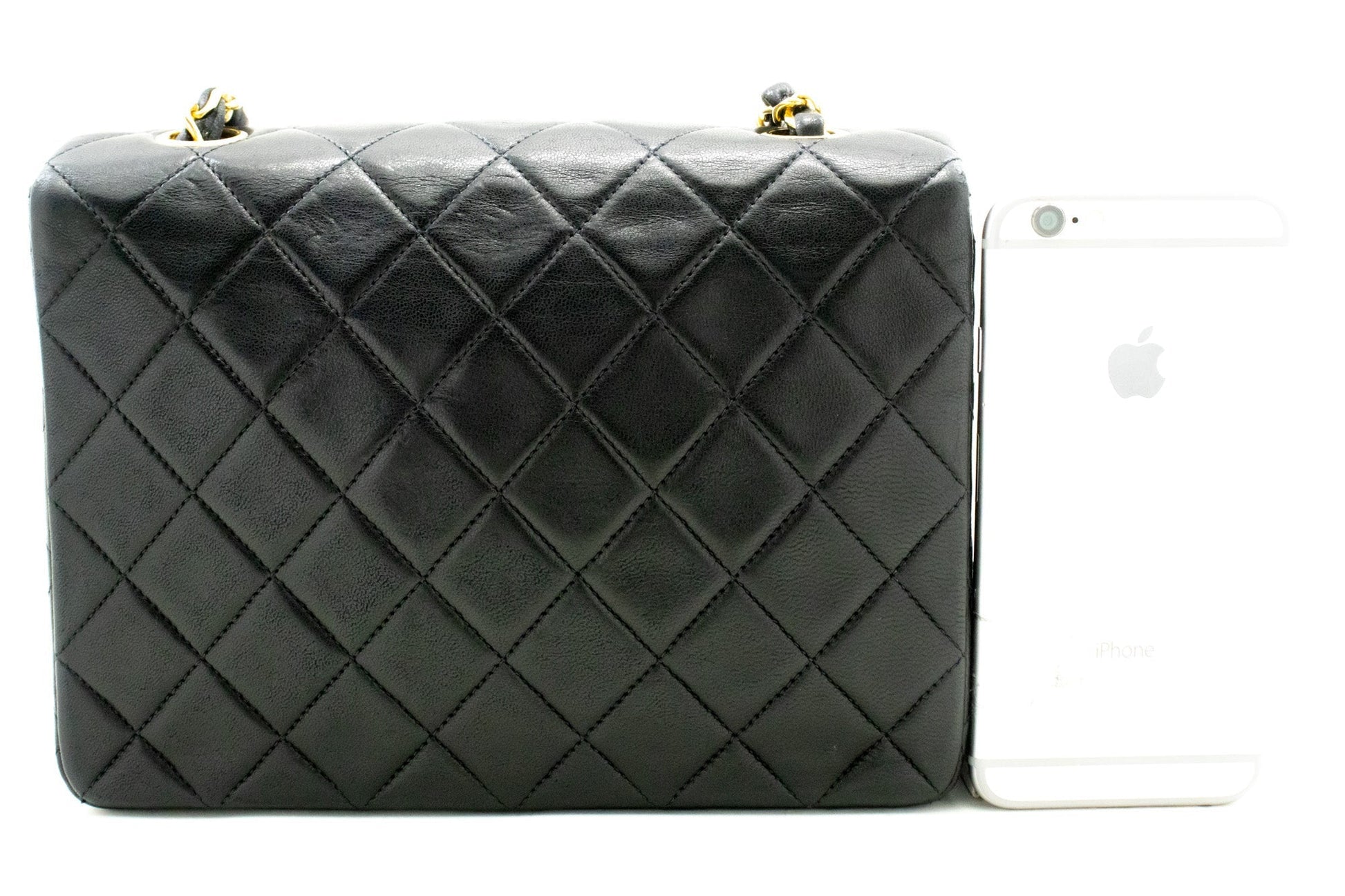 An CHANEL Mini Square Small Chain Shoulder Bag Crossbody Black Lamb.
