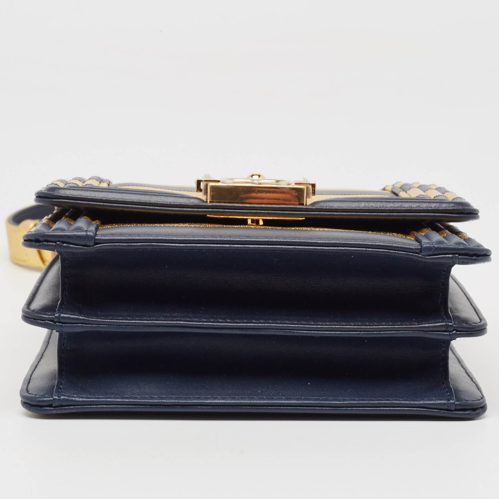 CHANEL Navy Blue/Gold Leather Paris-New York North/South Boy Bag