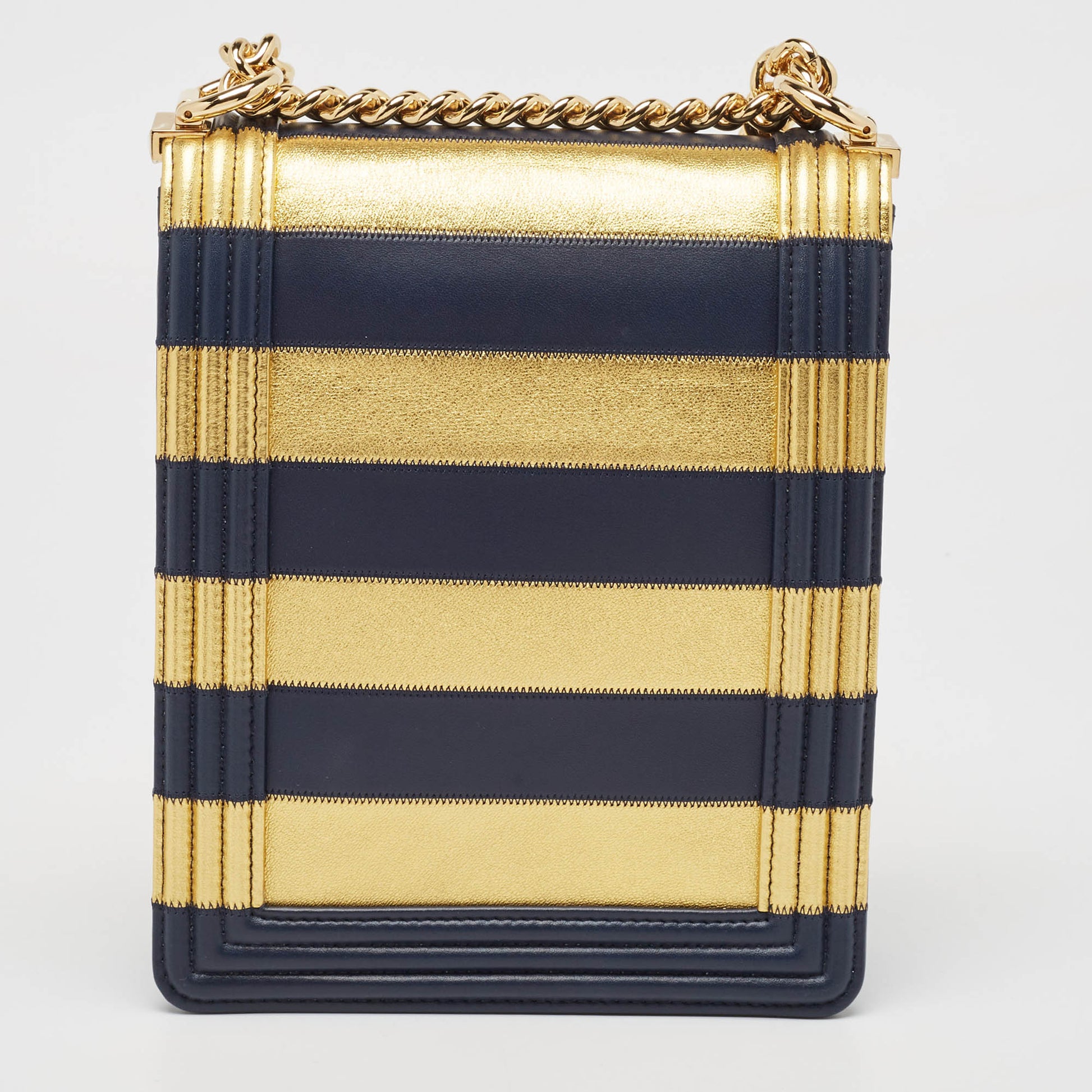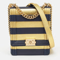 Top Quality Chanel Navy Blue/Gold Leather Paris-New York North/South Boy Bag