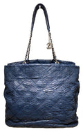 Top Quality Chanel Navy Blue Quilted Matte Snakeskin Tote