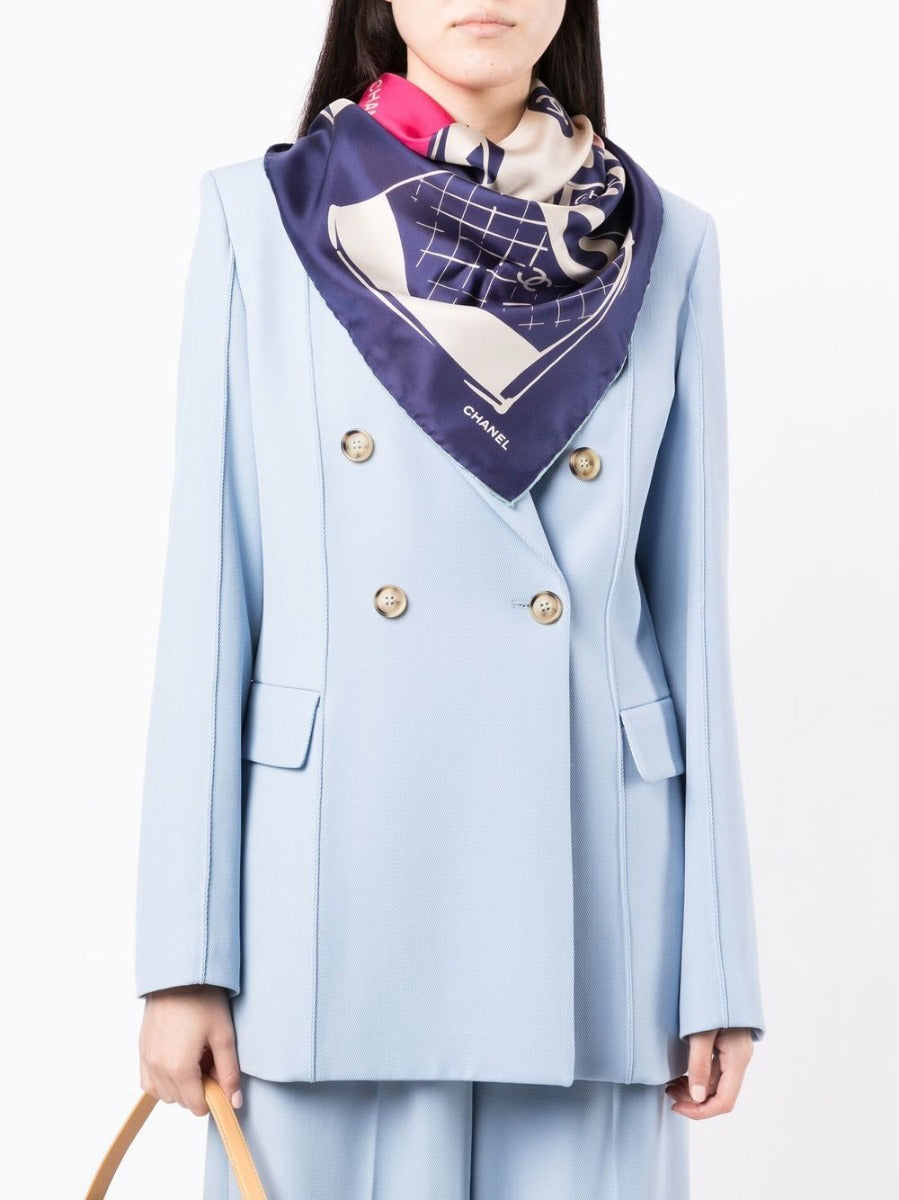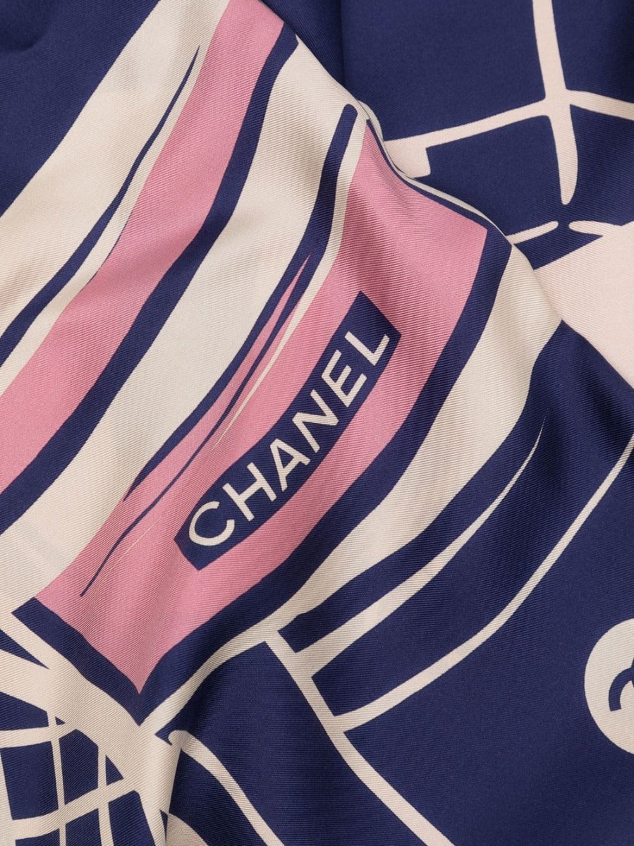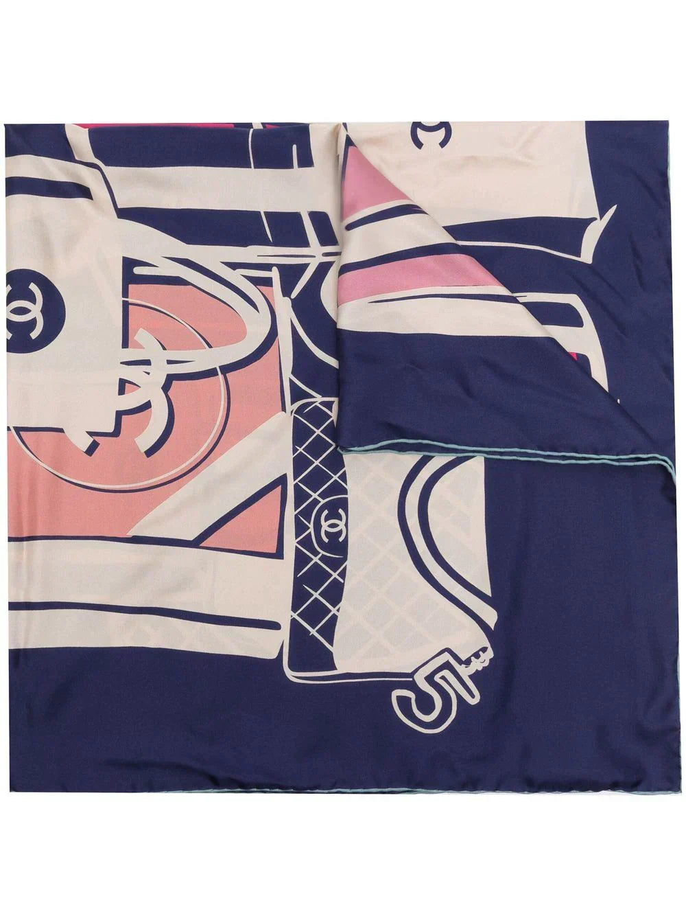 Top Quality Chanel Navy Luggage Motif Silk Scarf