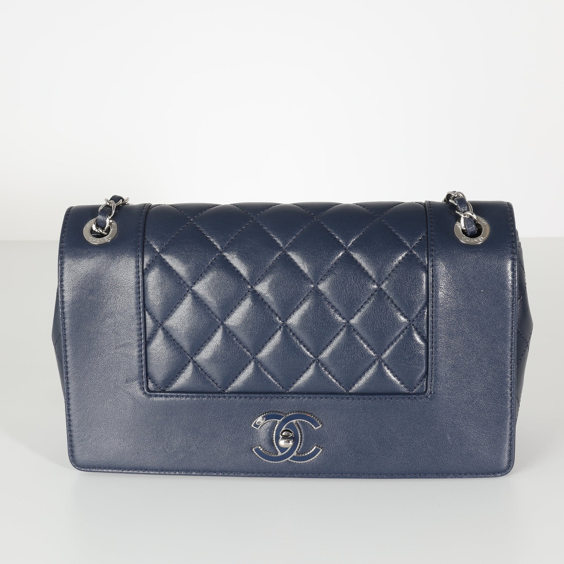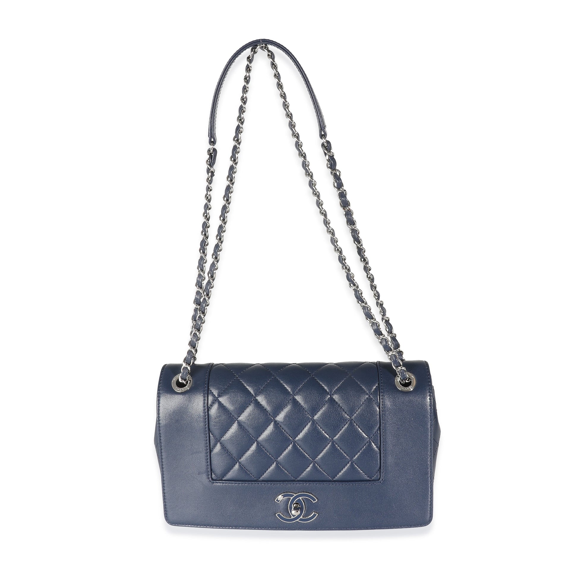 Listing Title: Chanel Navy Quilted Sheepskin Large Vintage Mademoiselle New Bag