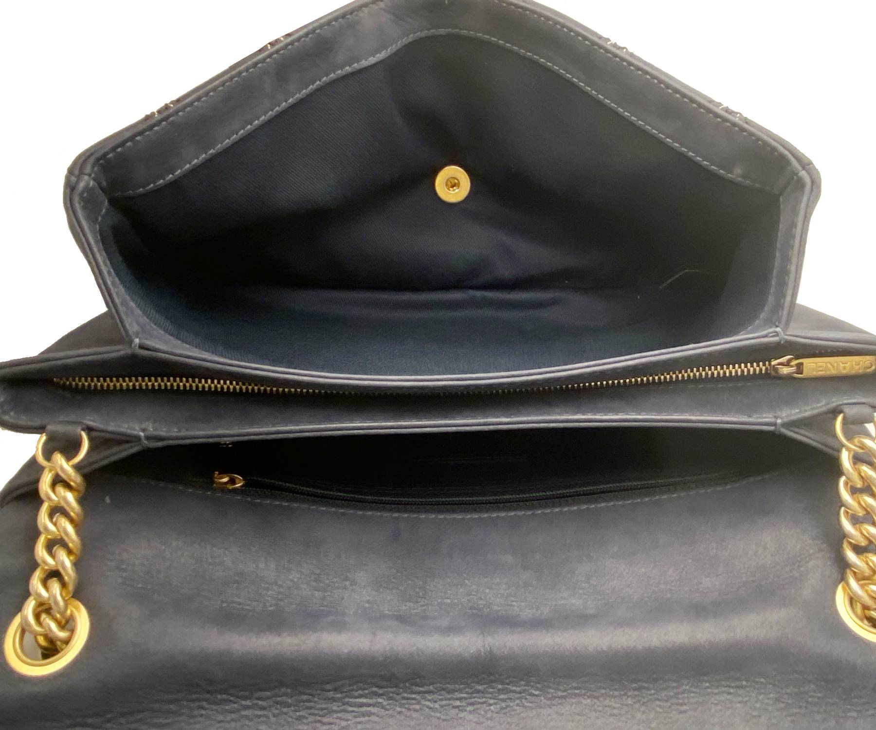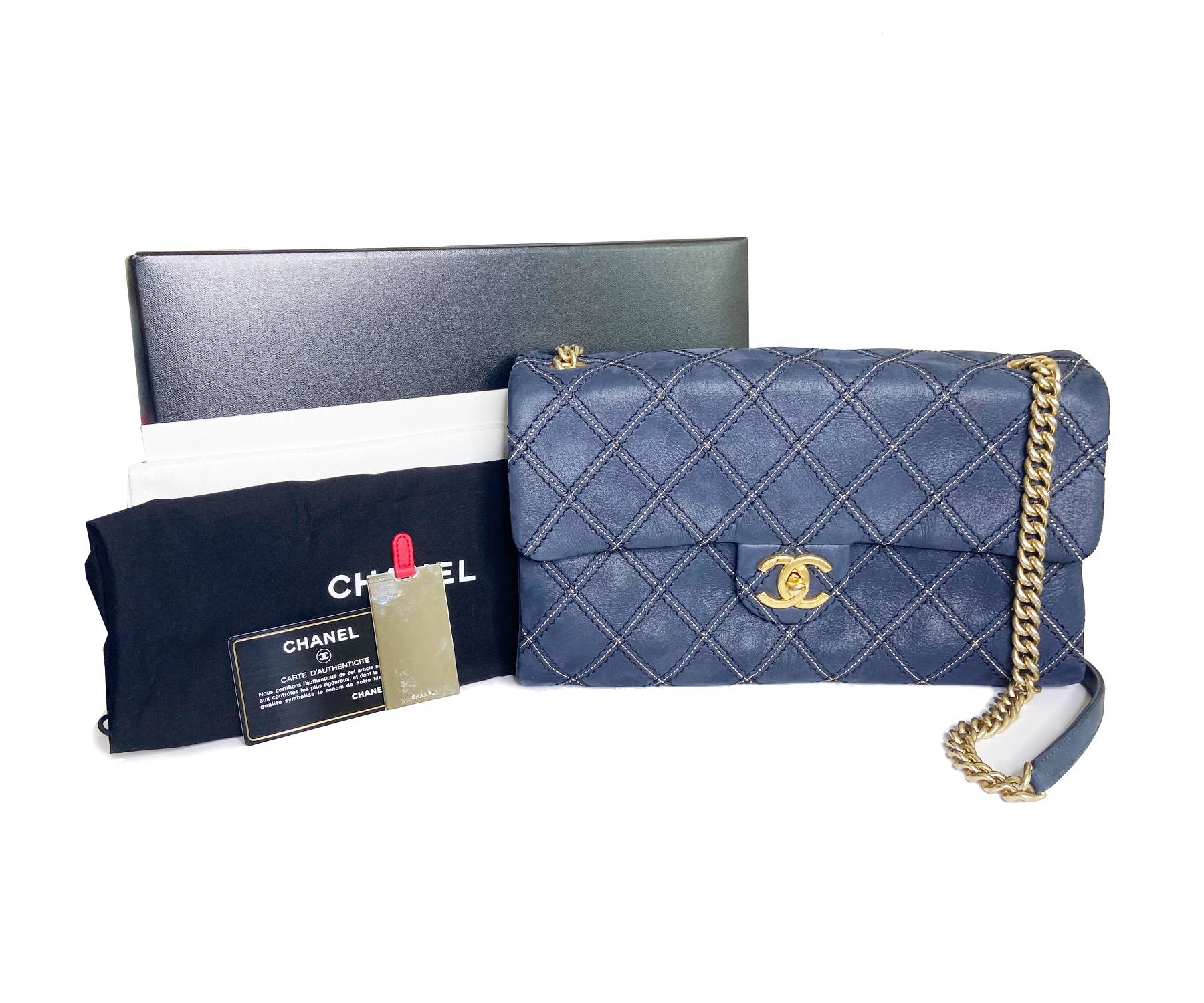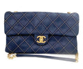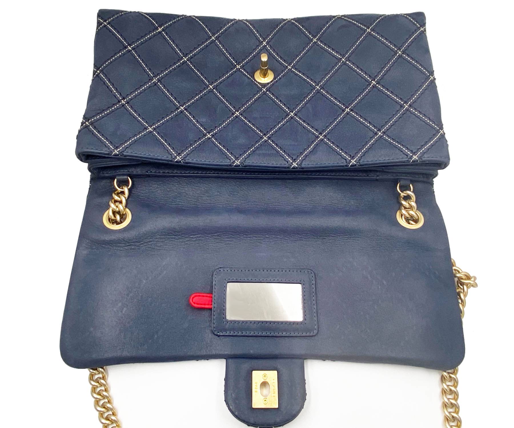 Chanel Navy Stitching Rectangle Crossbody Bag with Mirror.