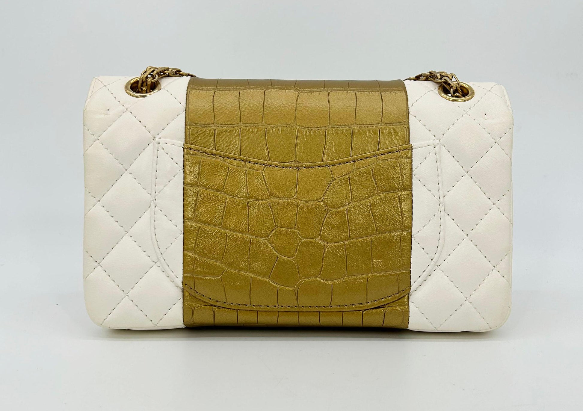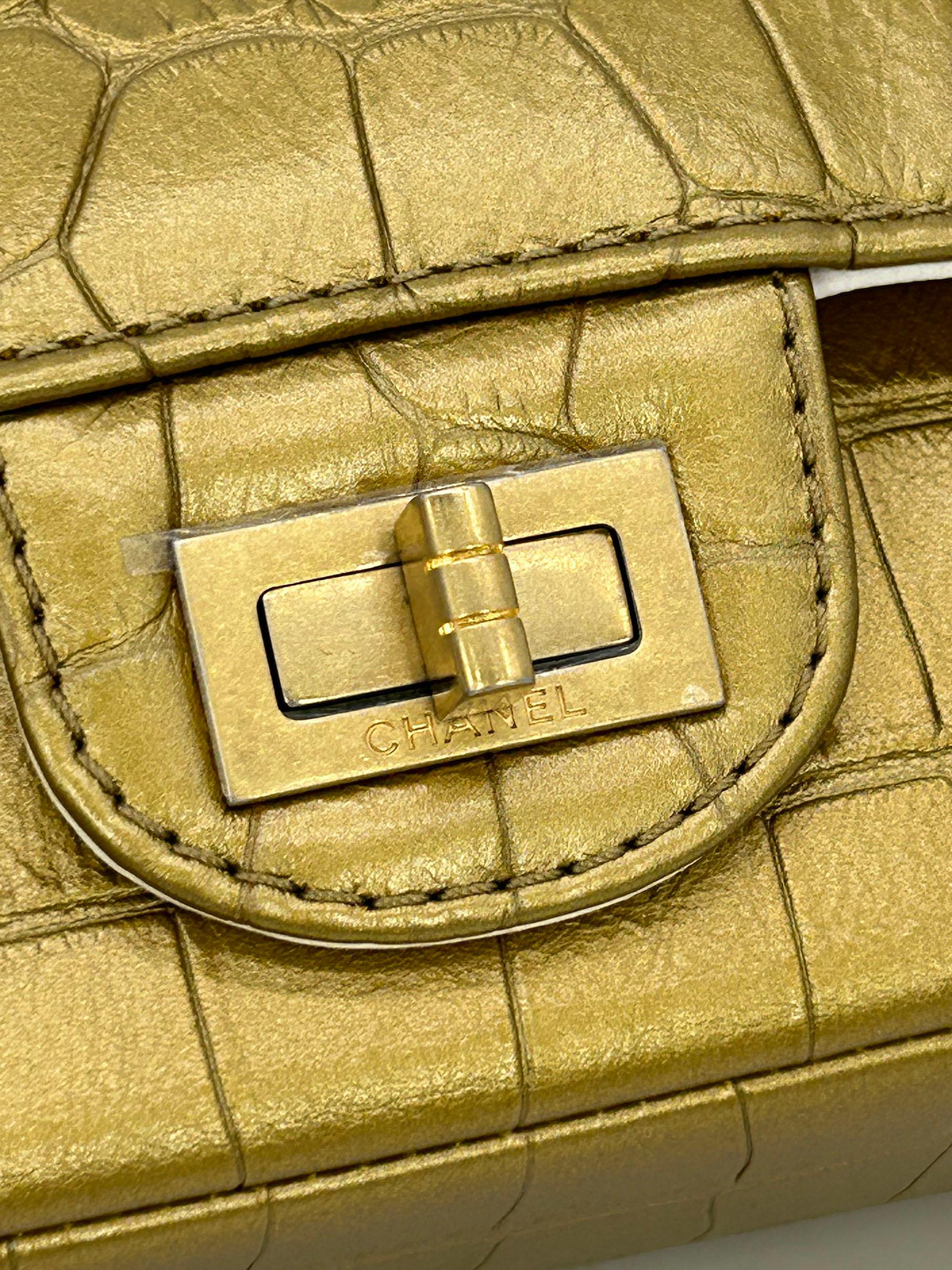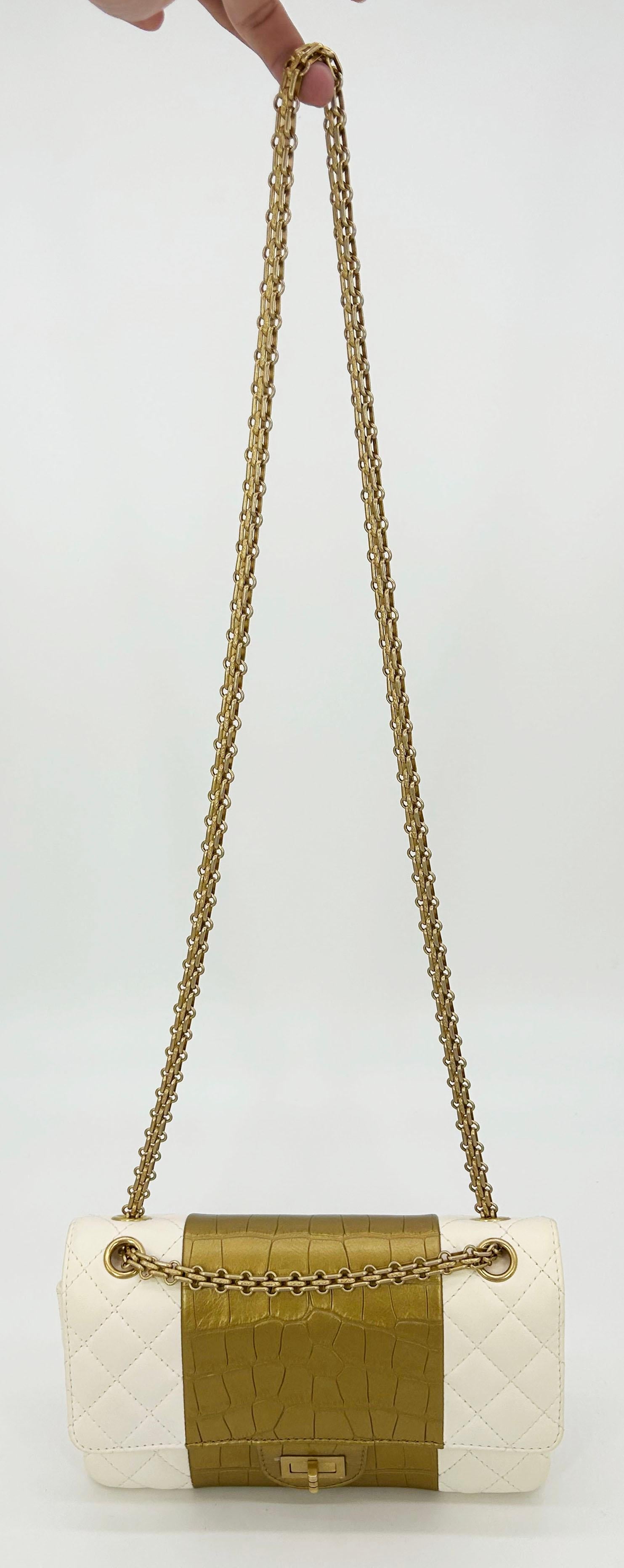 Top Quality Chanel NEW Cream Leather Gold Alligator Double New Classic 2.55 Reissue NWT