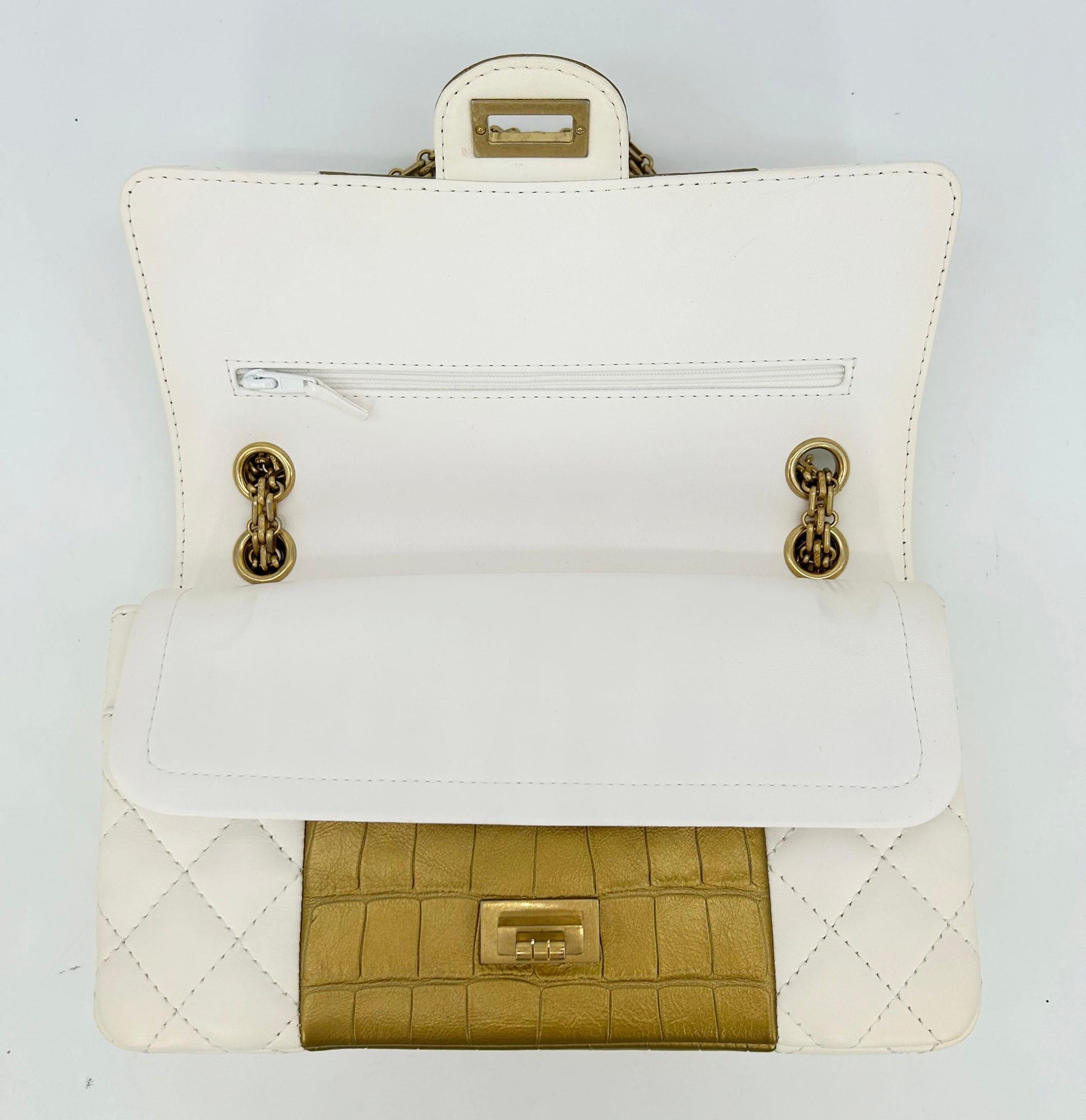 Chanel Cream Leather Gold Alligator Double New Classic Reissue 2.55 in New- Un- with tags from store condition.