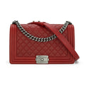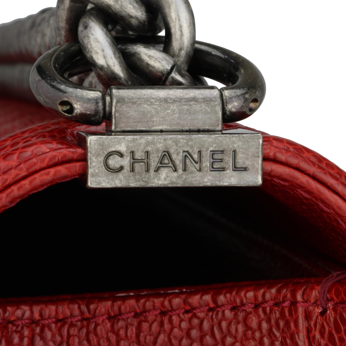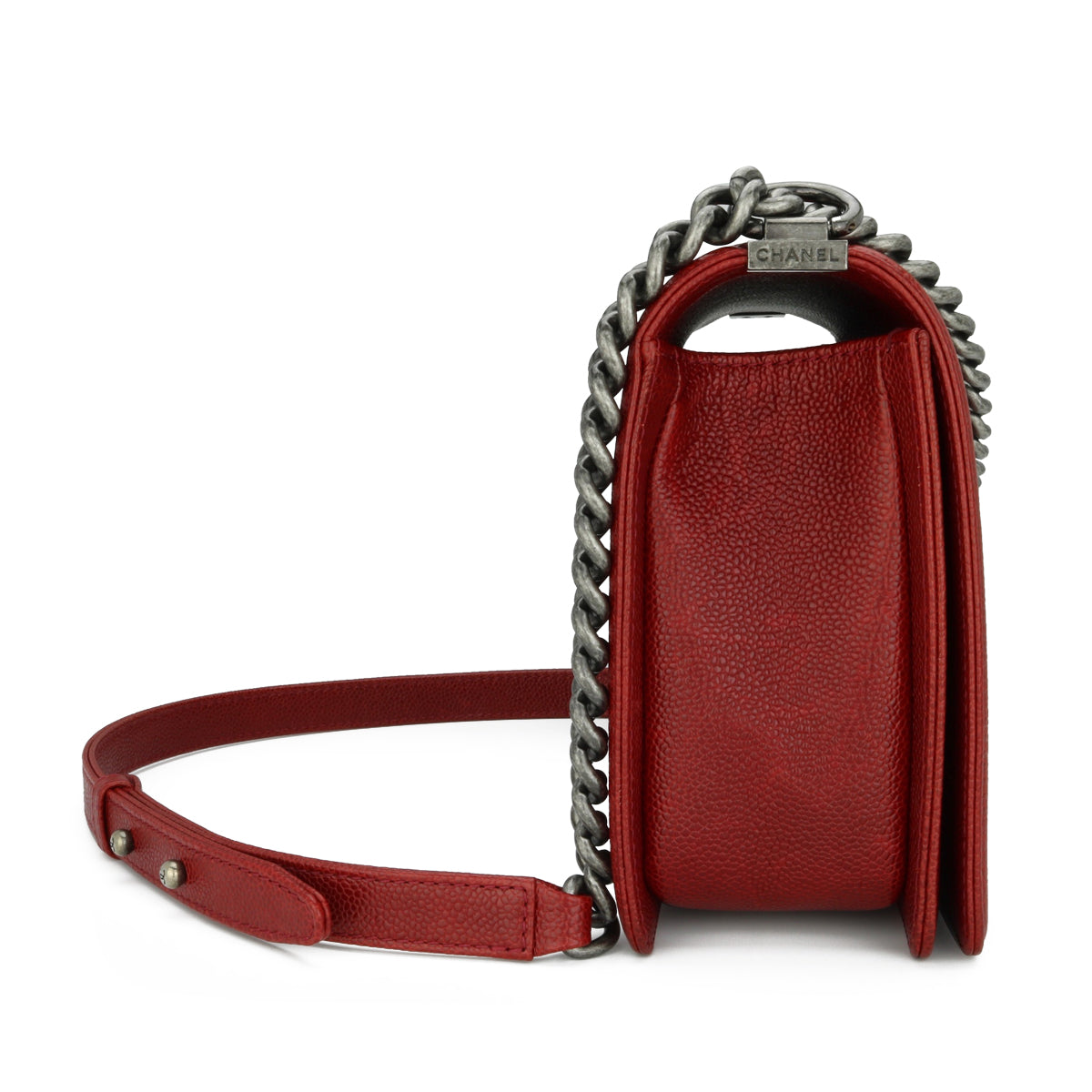 CHANEL New Medium Quilted Boy Bag in Dark Red Caviar with Ruthenium Hardware 2014 - 14B.