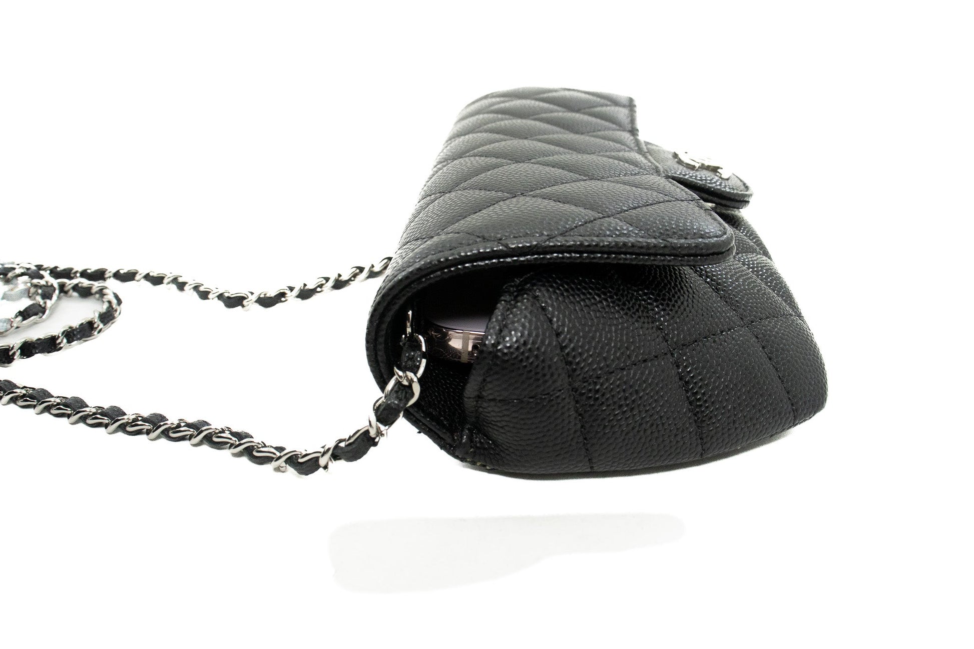 An CHANEL New Phone Holder With Chain Bag Black Crossbody Clutch.