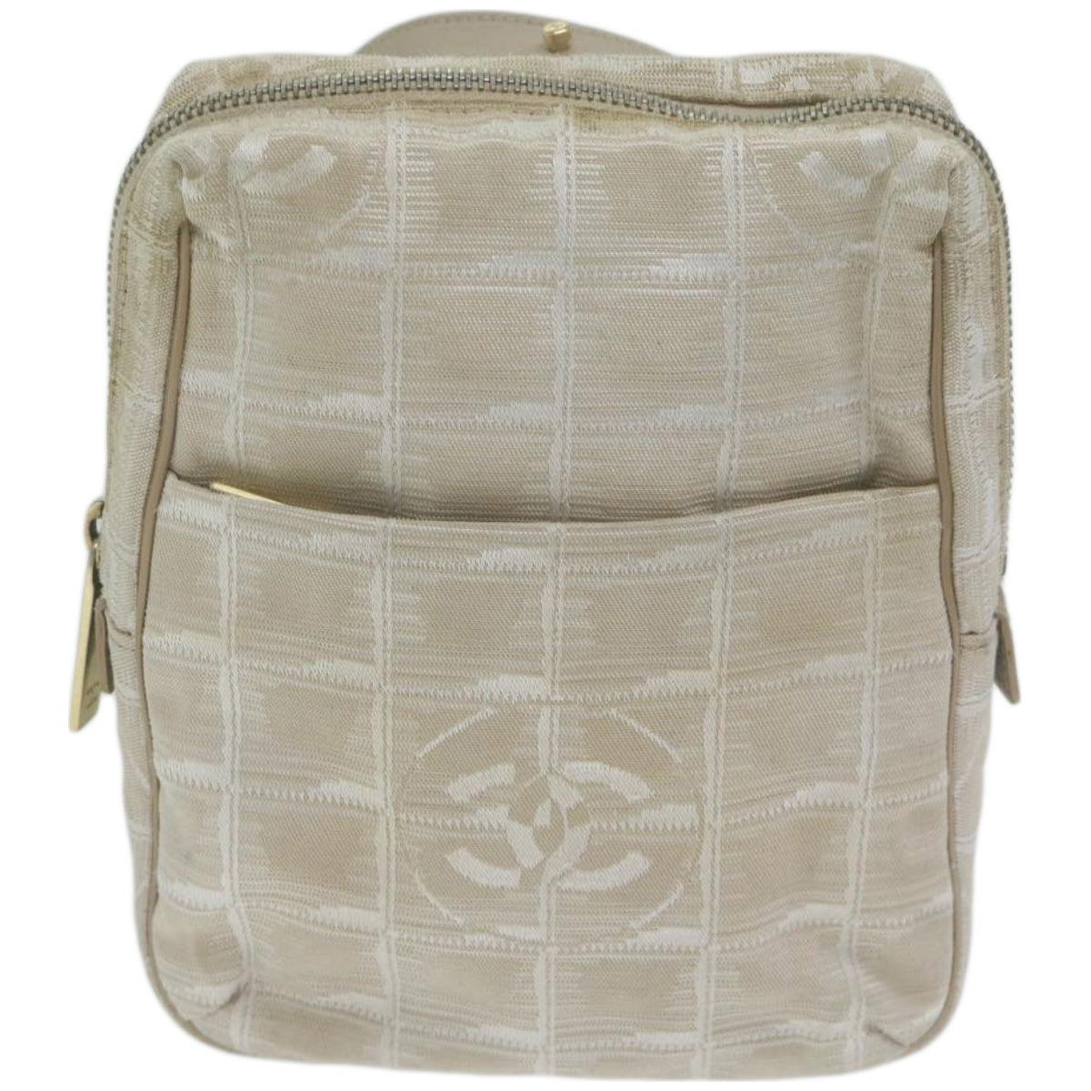 Top Quality Chanel New Travel Line Shoulder Bag Nylon Beige CC Auth ki4086