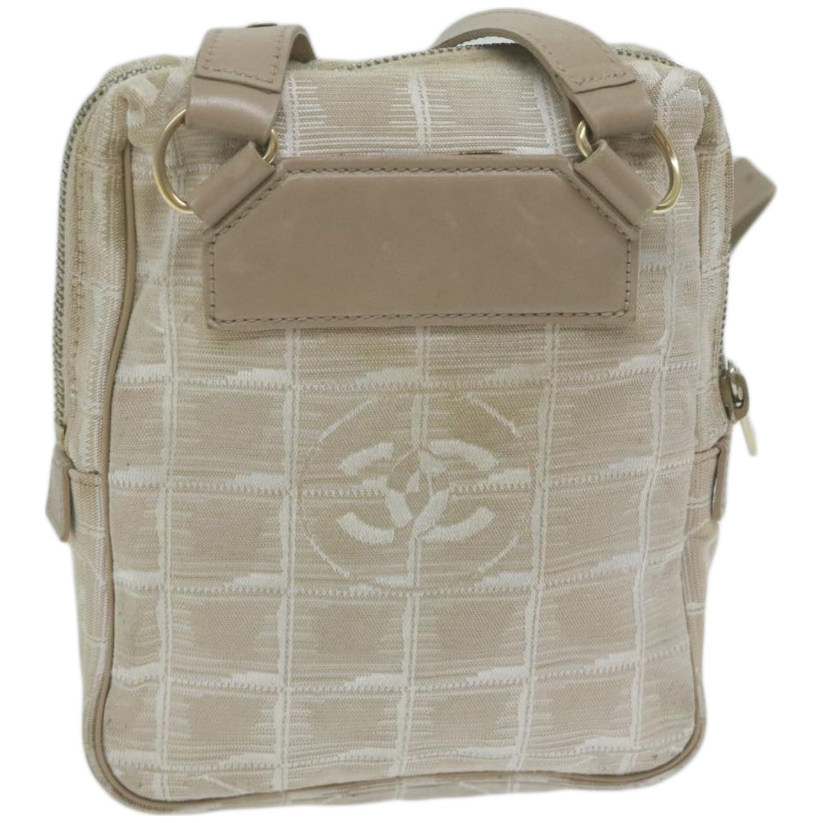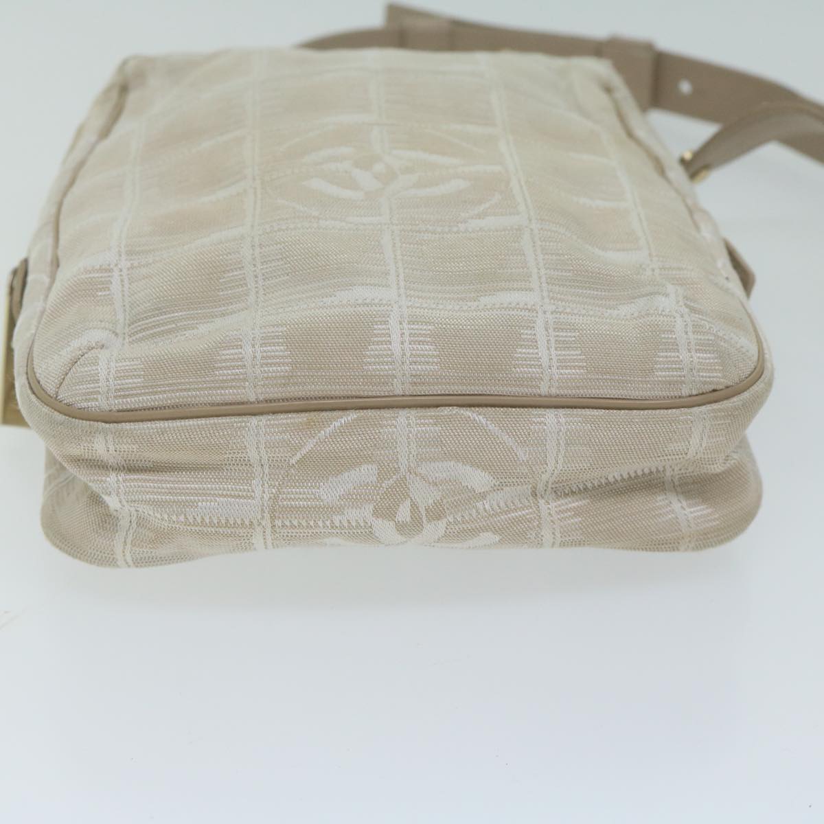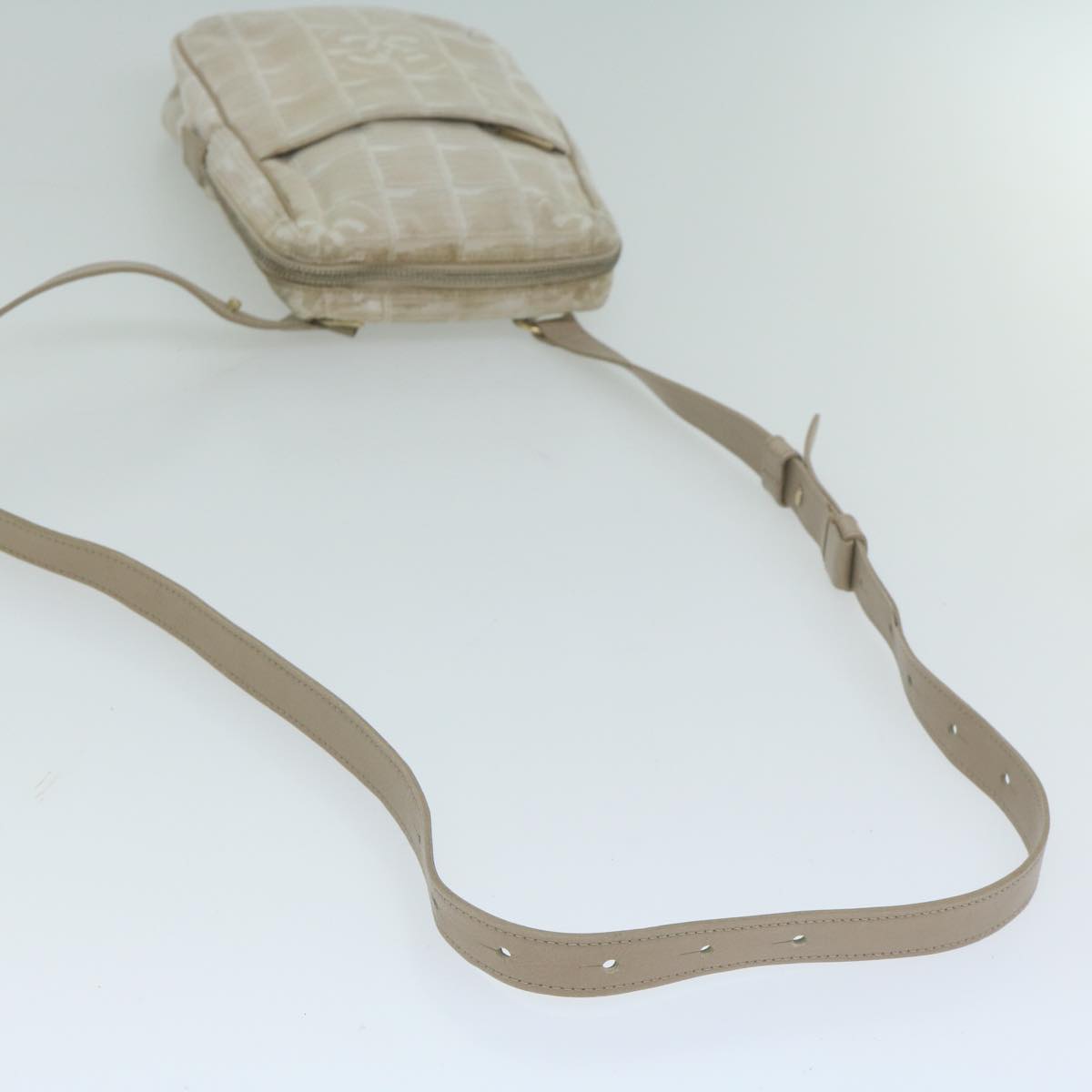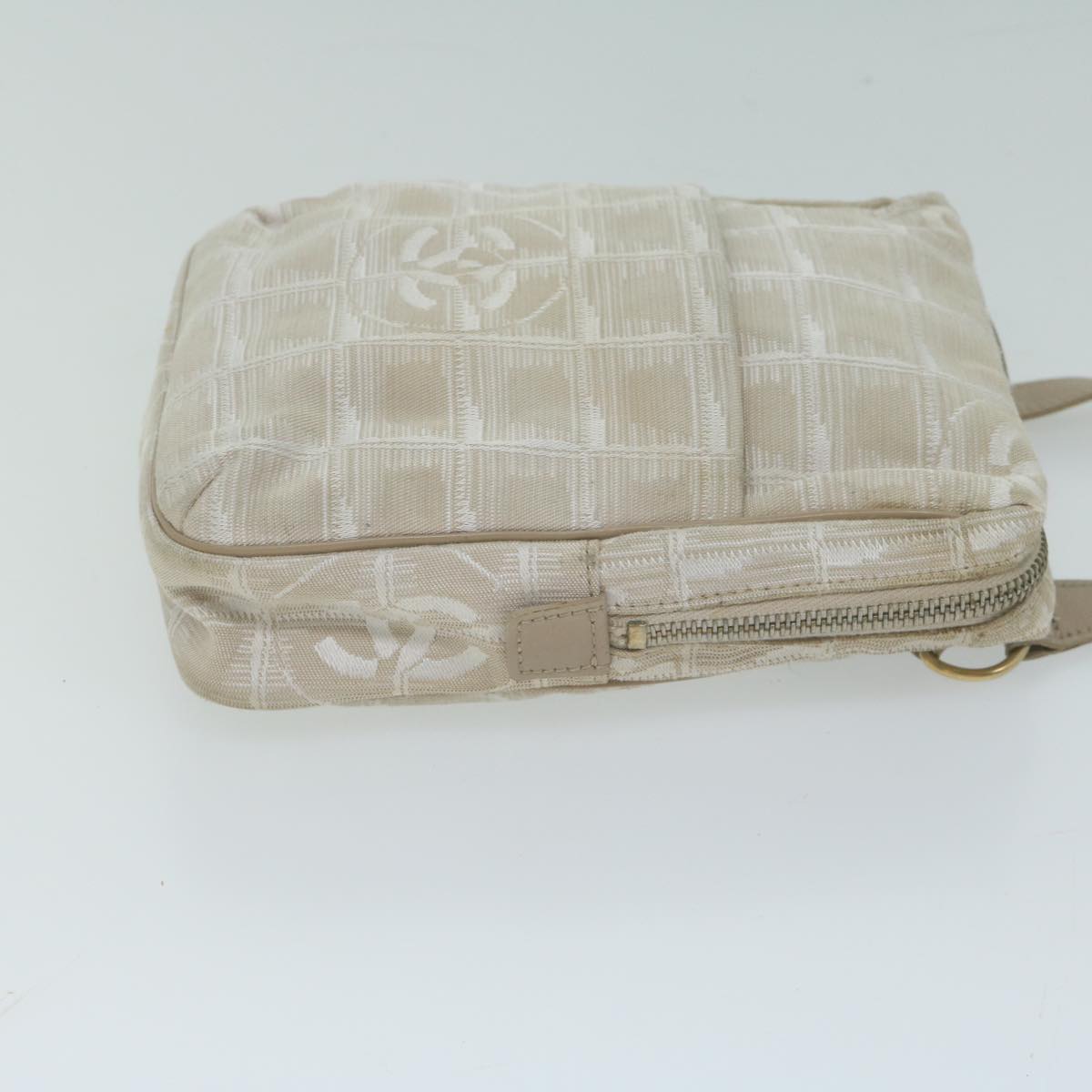 CHANEL New Travel Line Shoulder Bag Nylon Beige CC Auth ki4086
