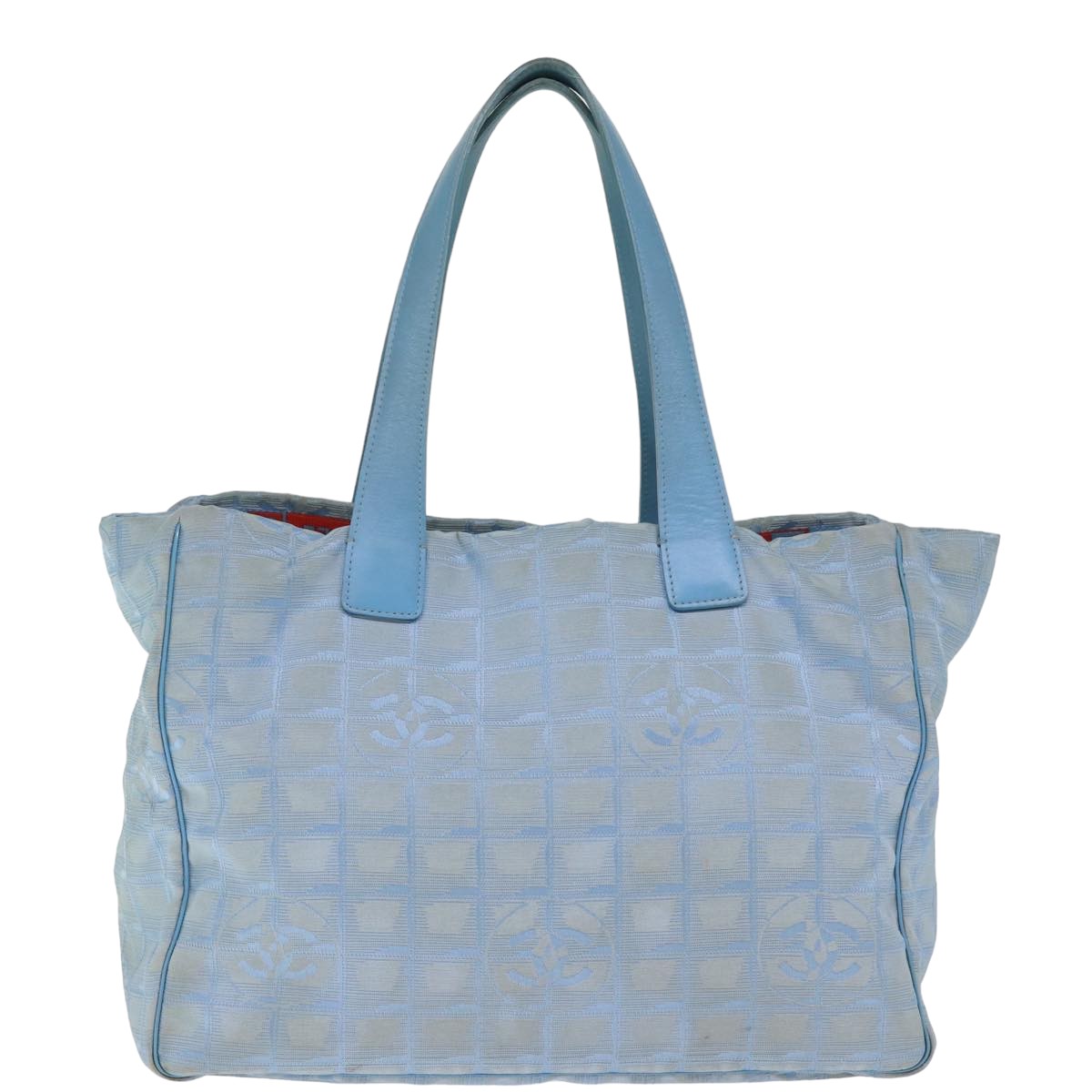 CHANEL New Travel Line Tote Bag Nylon Blue CC Auth th4976