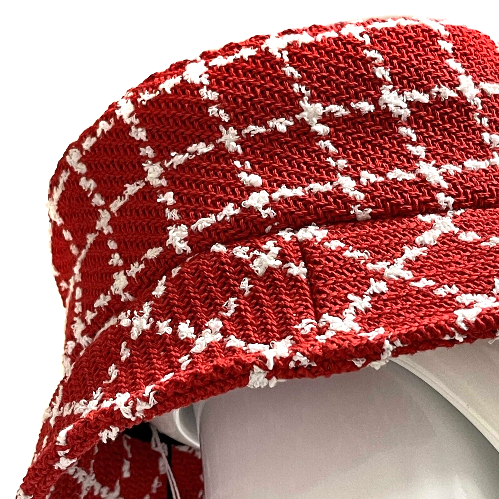 Top Quality Chanel NWT 23C RUNWAY Red White Fantasy Tweed Medium Bucket Hat Medium