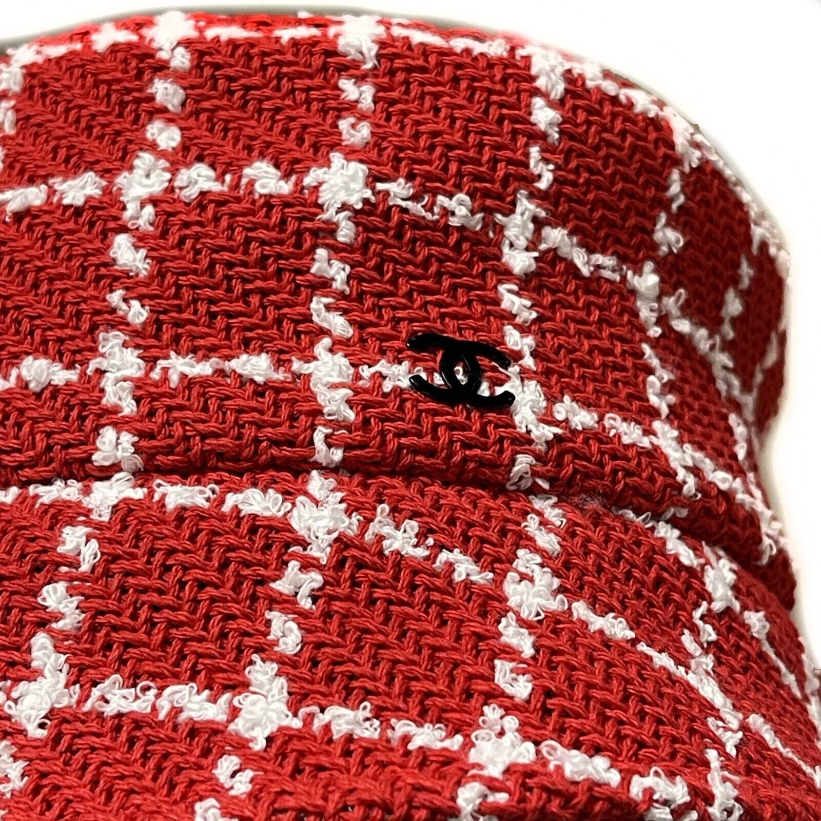 Chanel - New w/ Tags - Chanel 23C RUNWAY red and white Fantasy tweed hat - red, white - medium