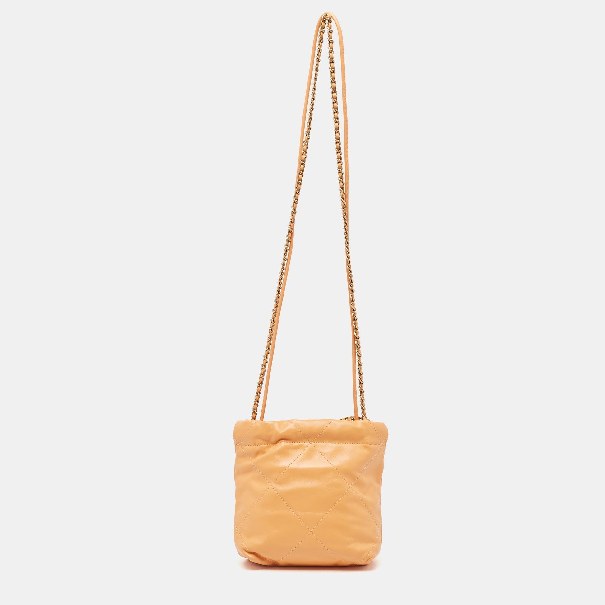 CHANEL Orange Quilted Leather Mini 22 Chain Bag