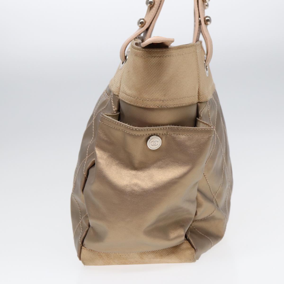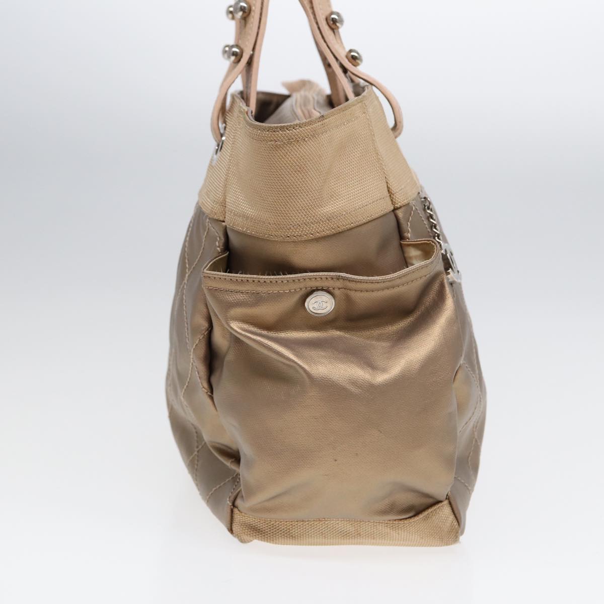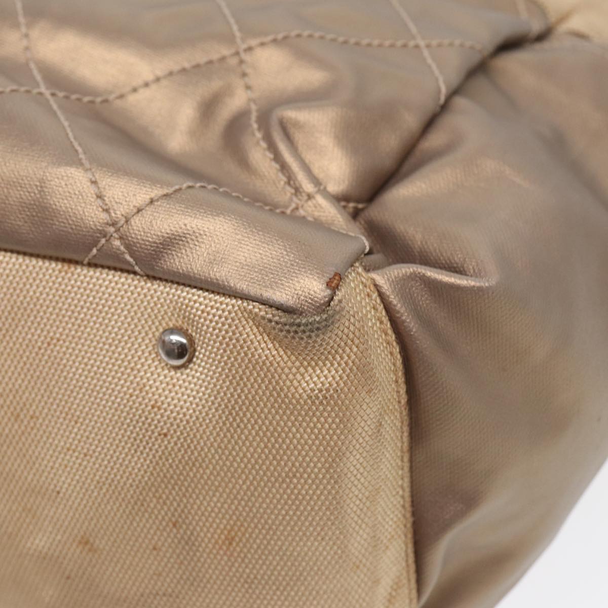 CHANEL Paris Biarritz GM Tote Bag Coated Canvas Gold Tone Silver CC Auth bs17228