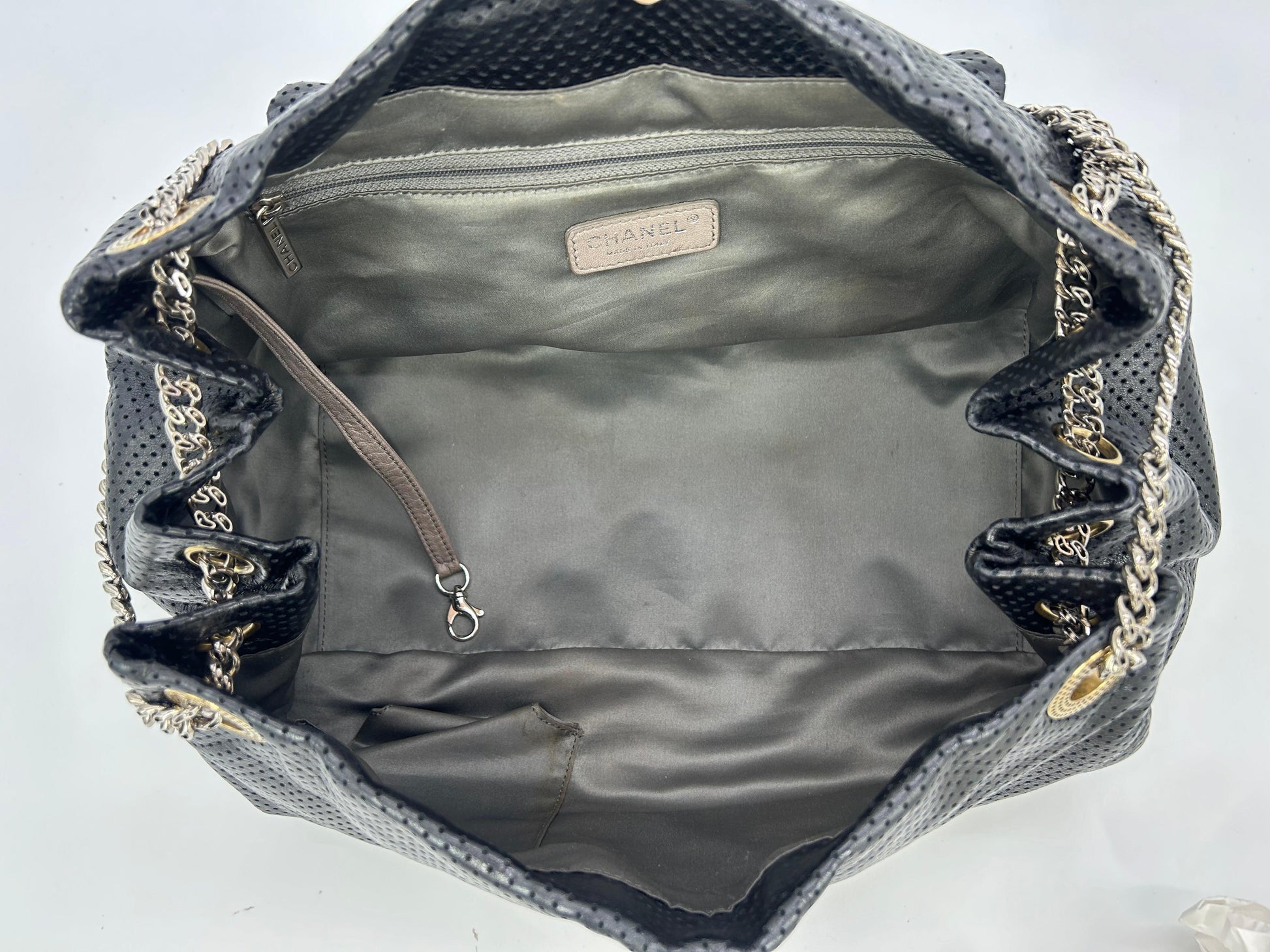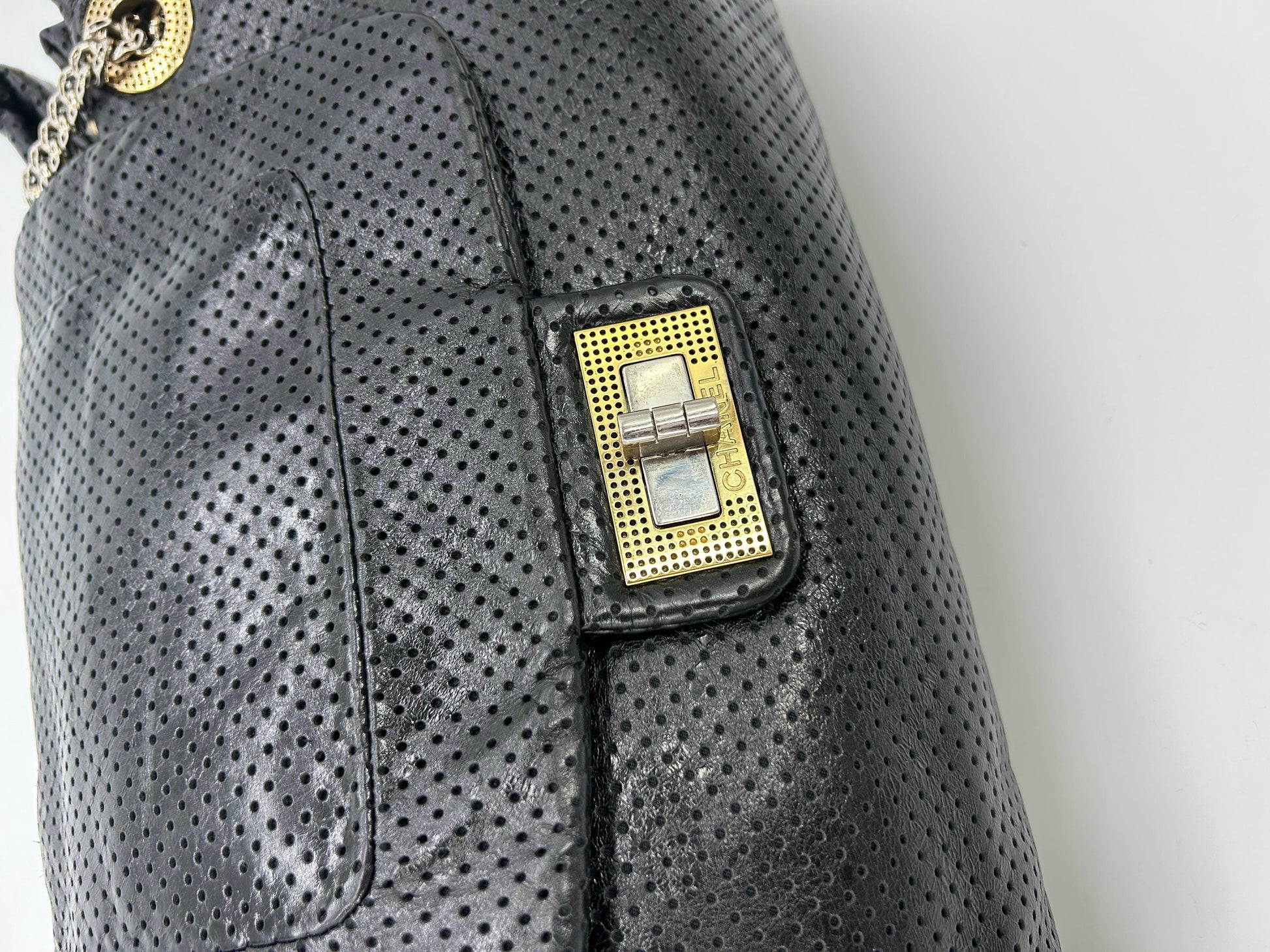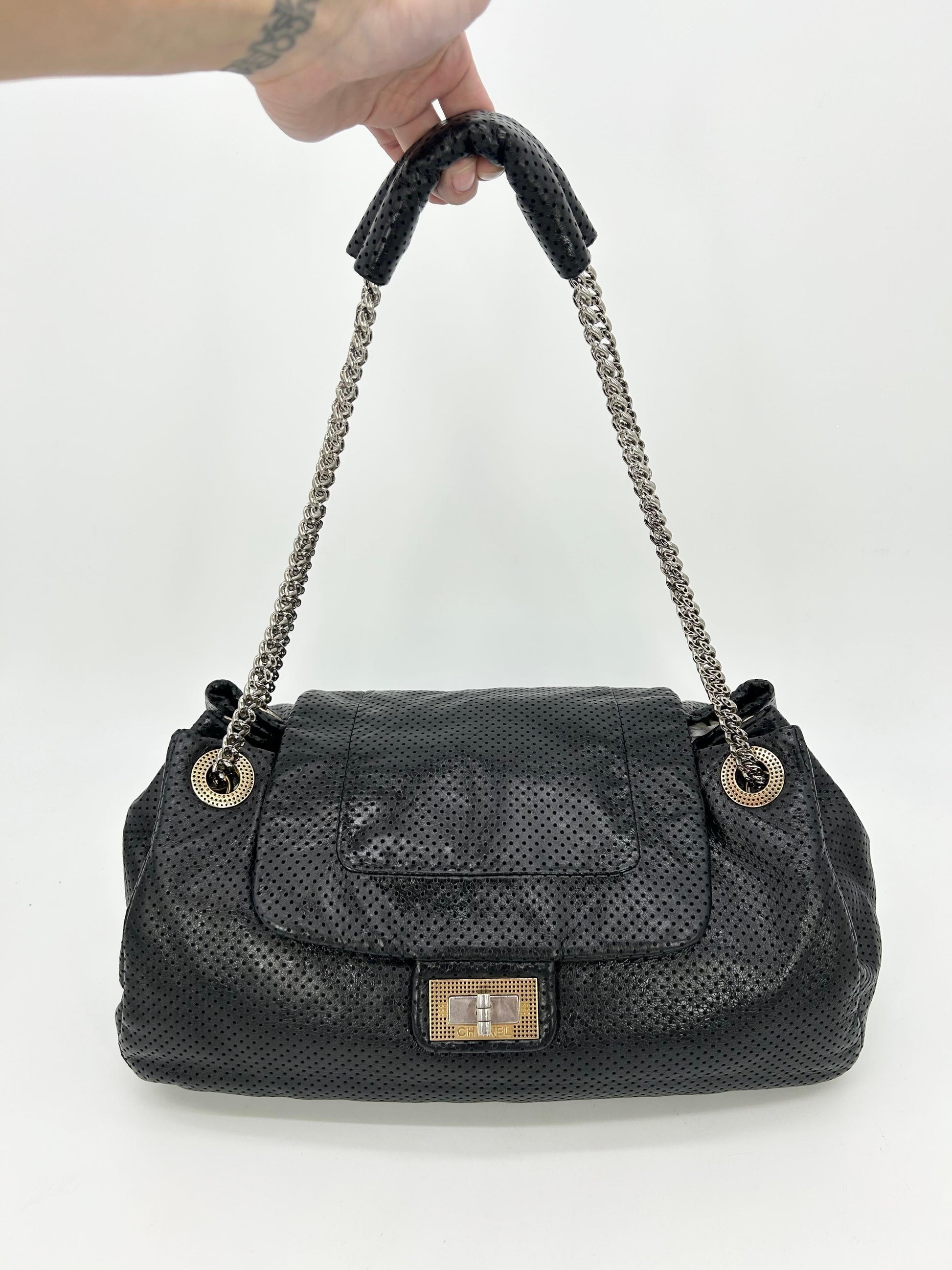 Chanel Perforated Drill New Accordion Classic In very New condition.