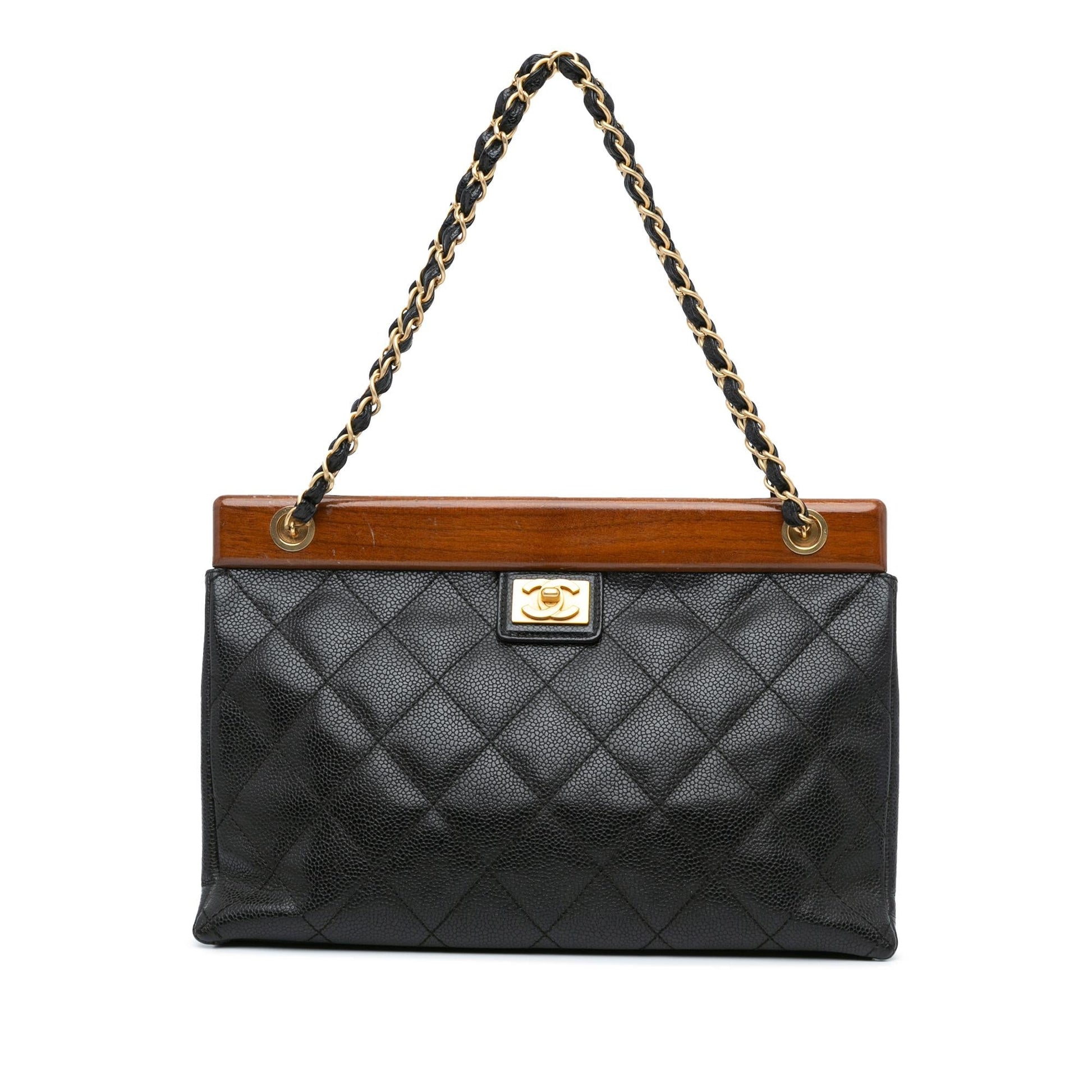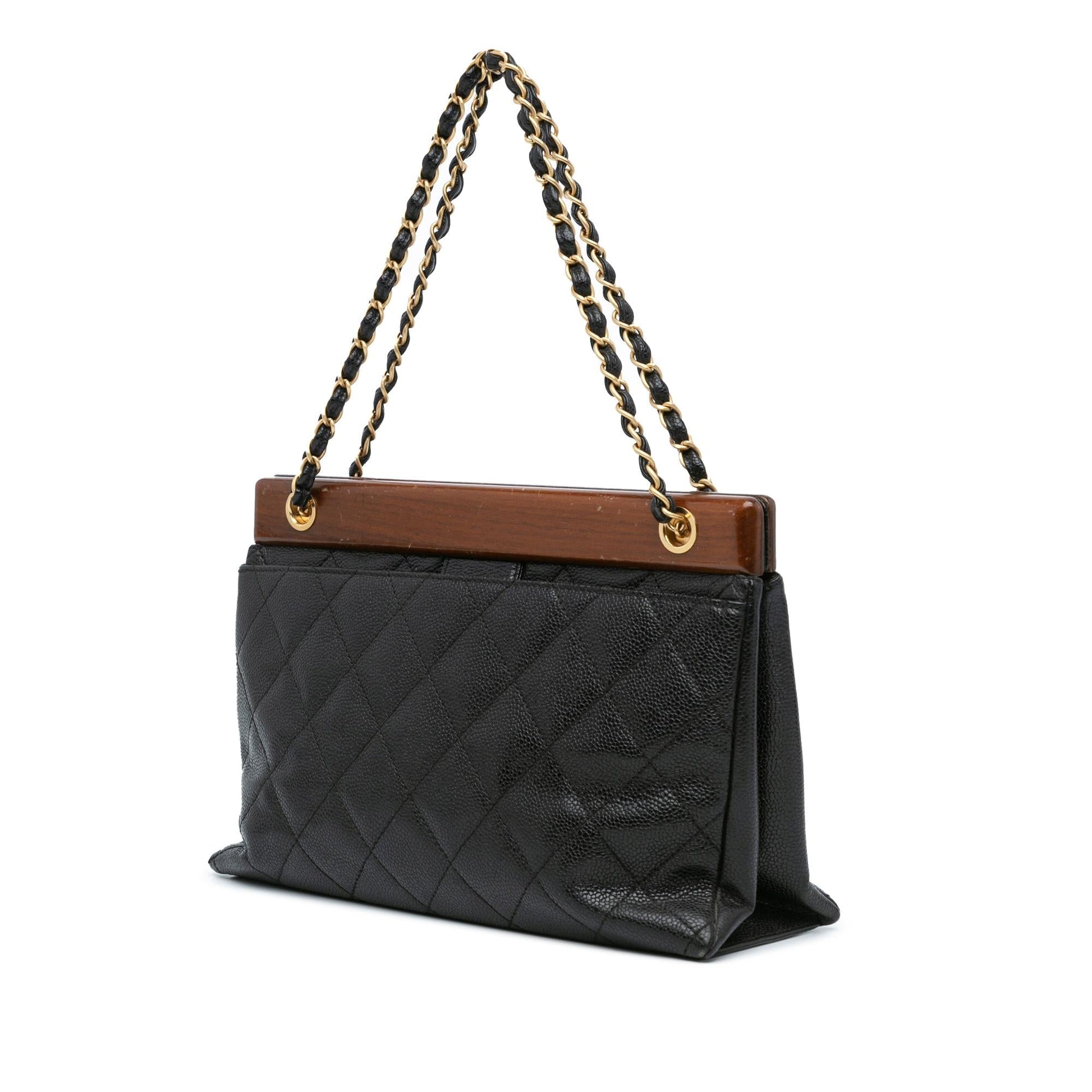 Chanel Quilted Caviar Wood Chain Shoulder Bag (SHG-mtEzPW)