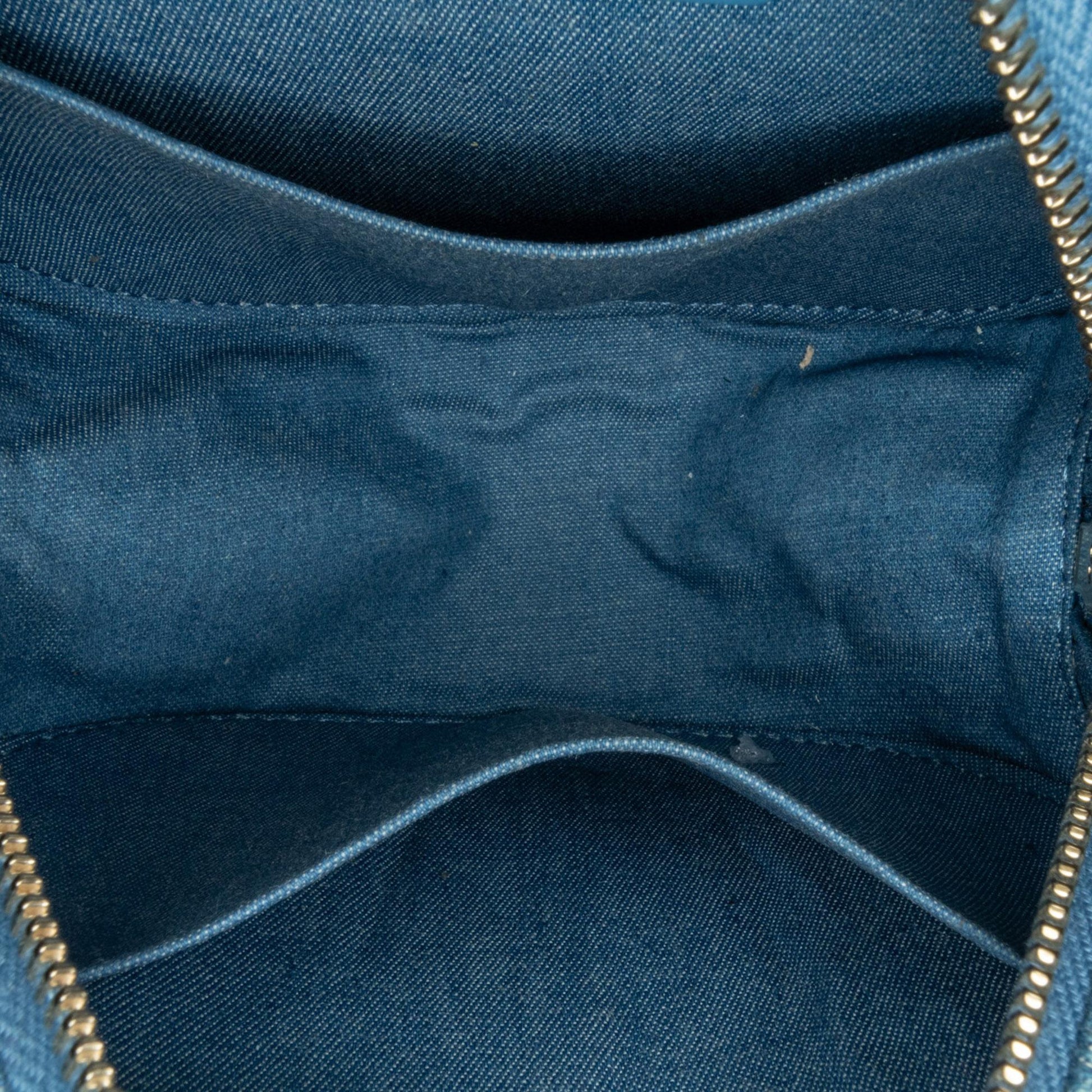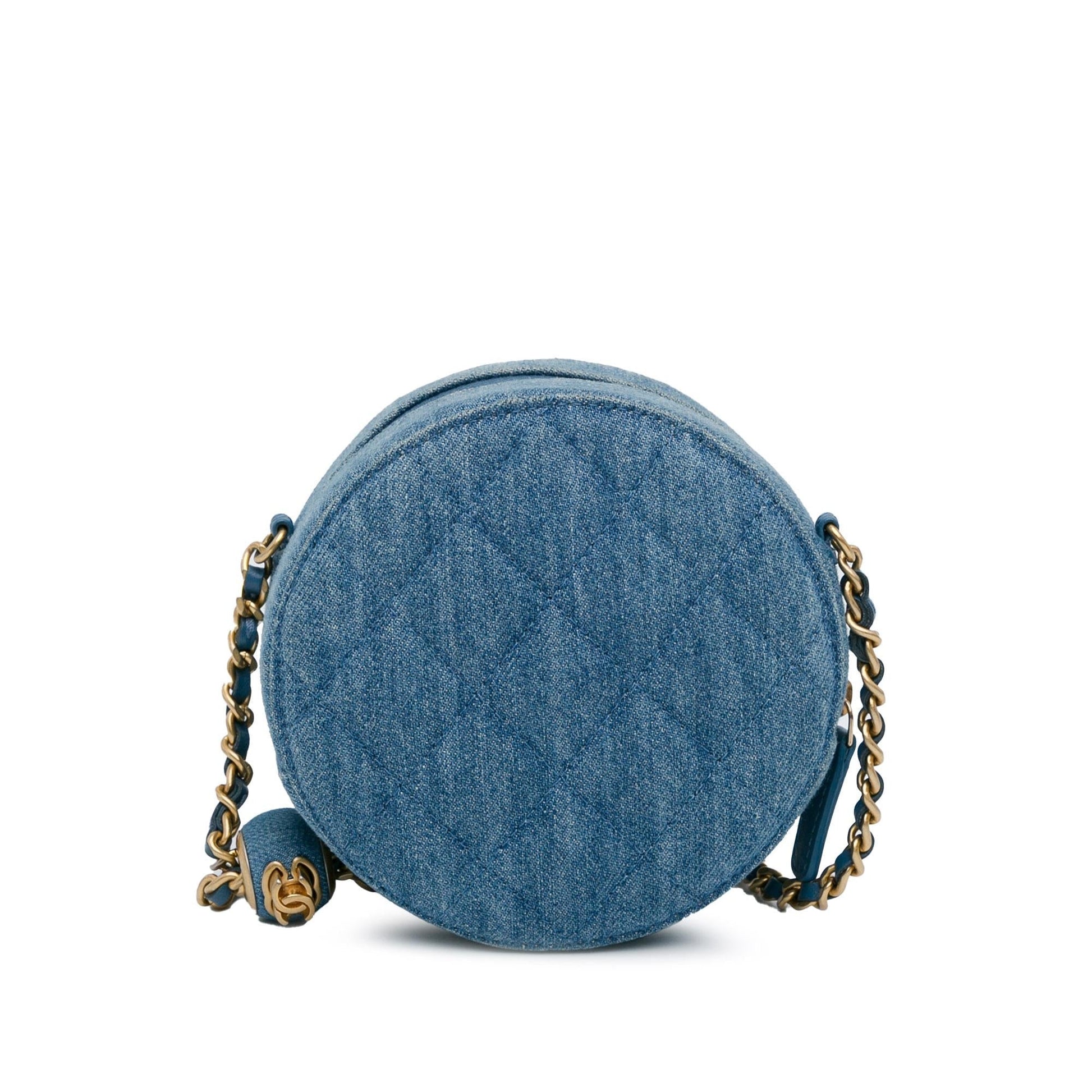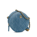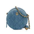 Chanel Quilted Denim Pearl Crush Round Clutch with Chain (SHG-Lc62qo)
