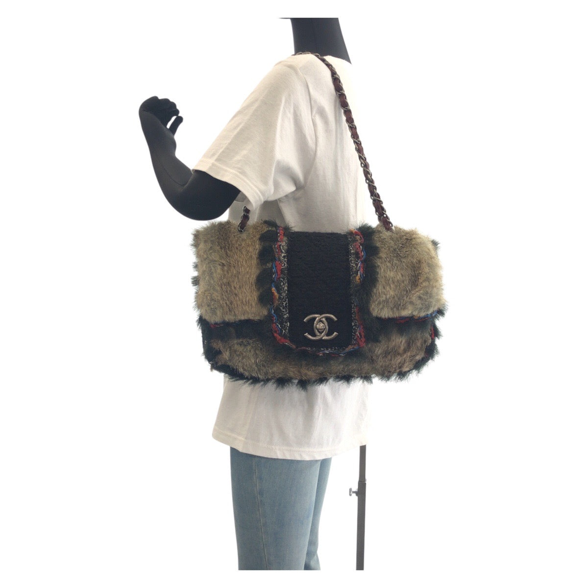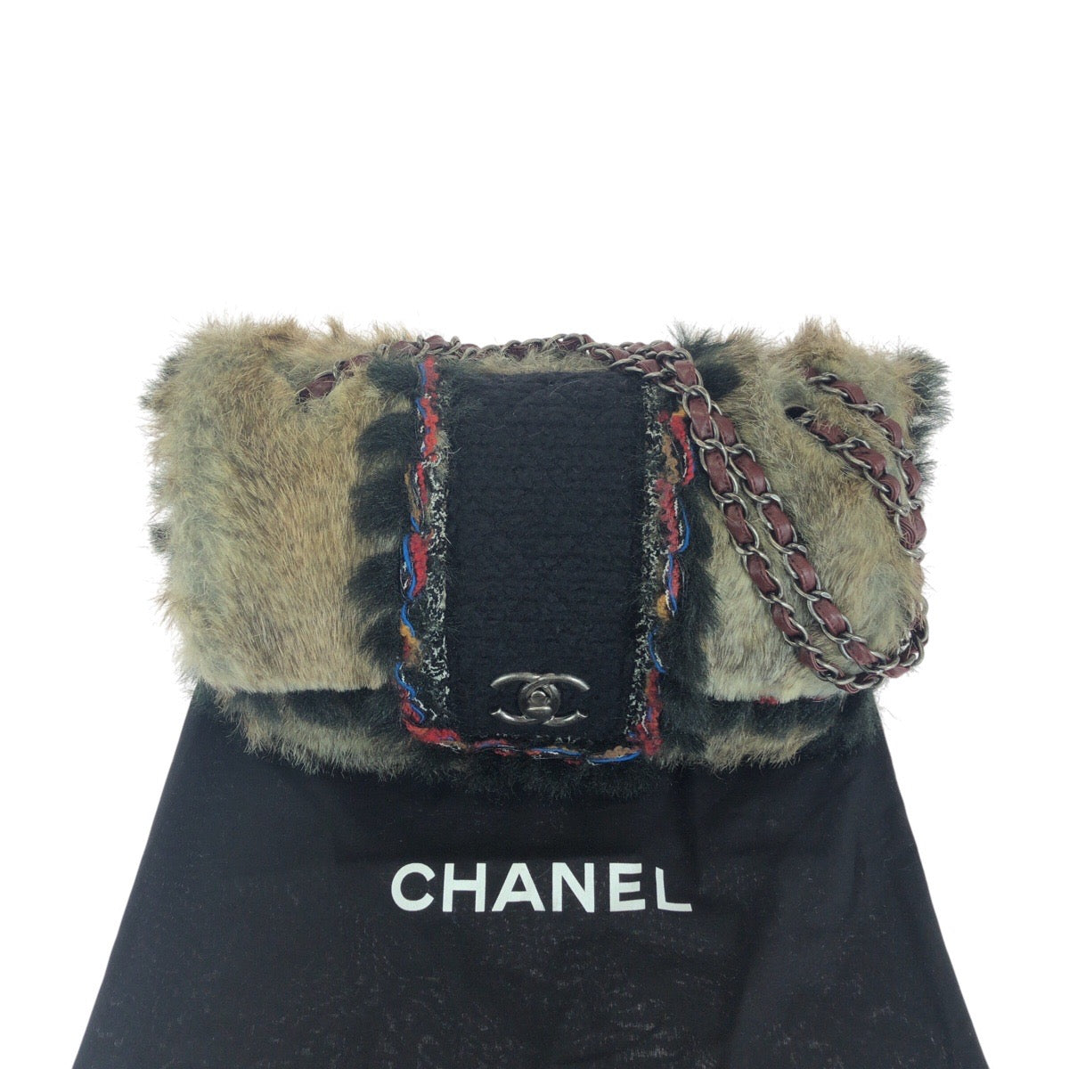 Chanel Vintage Coco Mark Turn Lock Fur Shoulder Bag
