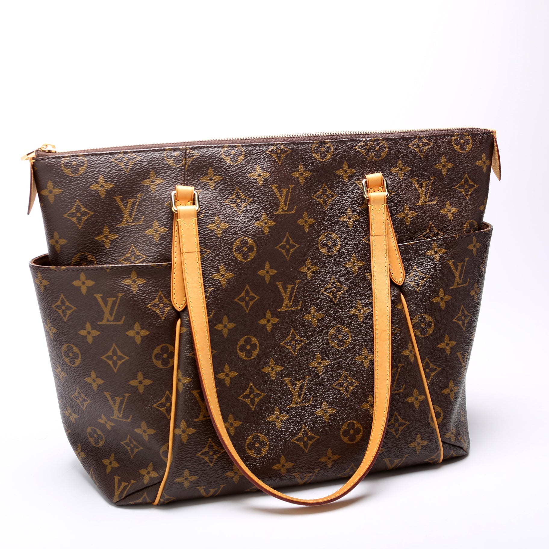 This Louis Vuitton Totally MMis eye catching bag. The exterior is in the classic Louis Vuitton Monogram coated canvas.