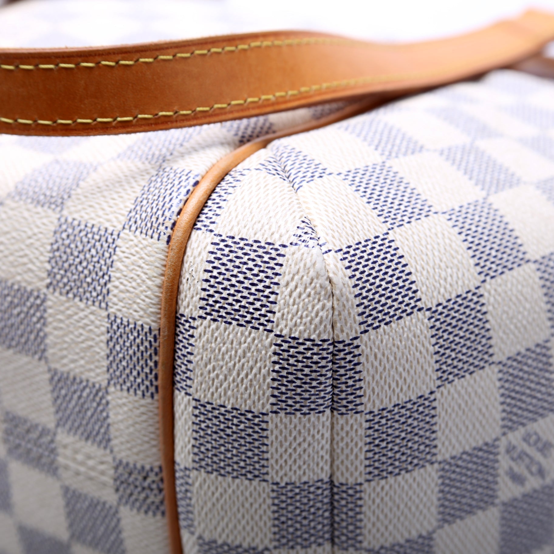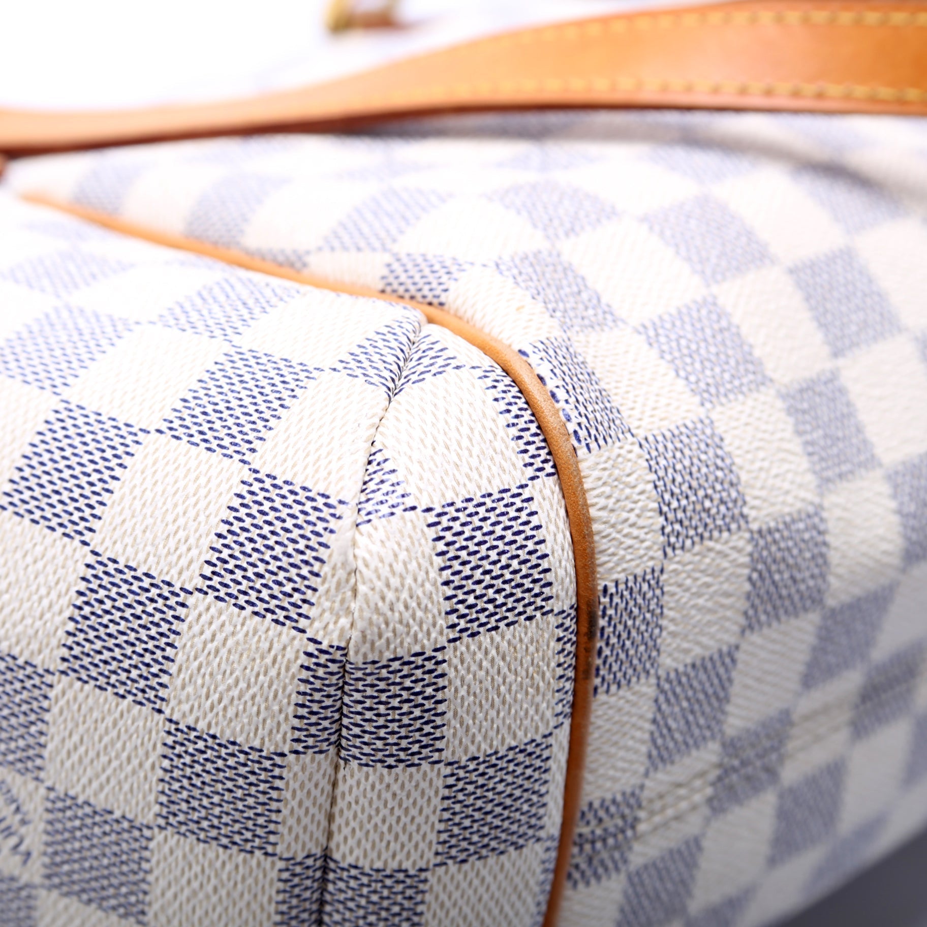 This Louis Vuitton Totally PMis eye catching bag. The exterior is in the classic Damier Azur coated canvas.