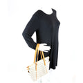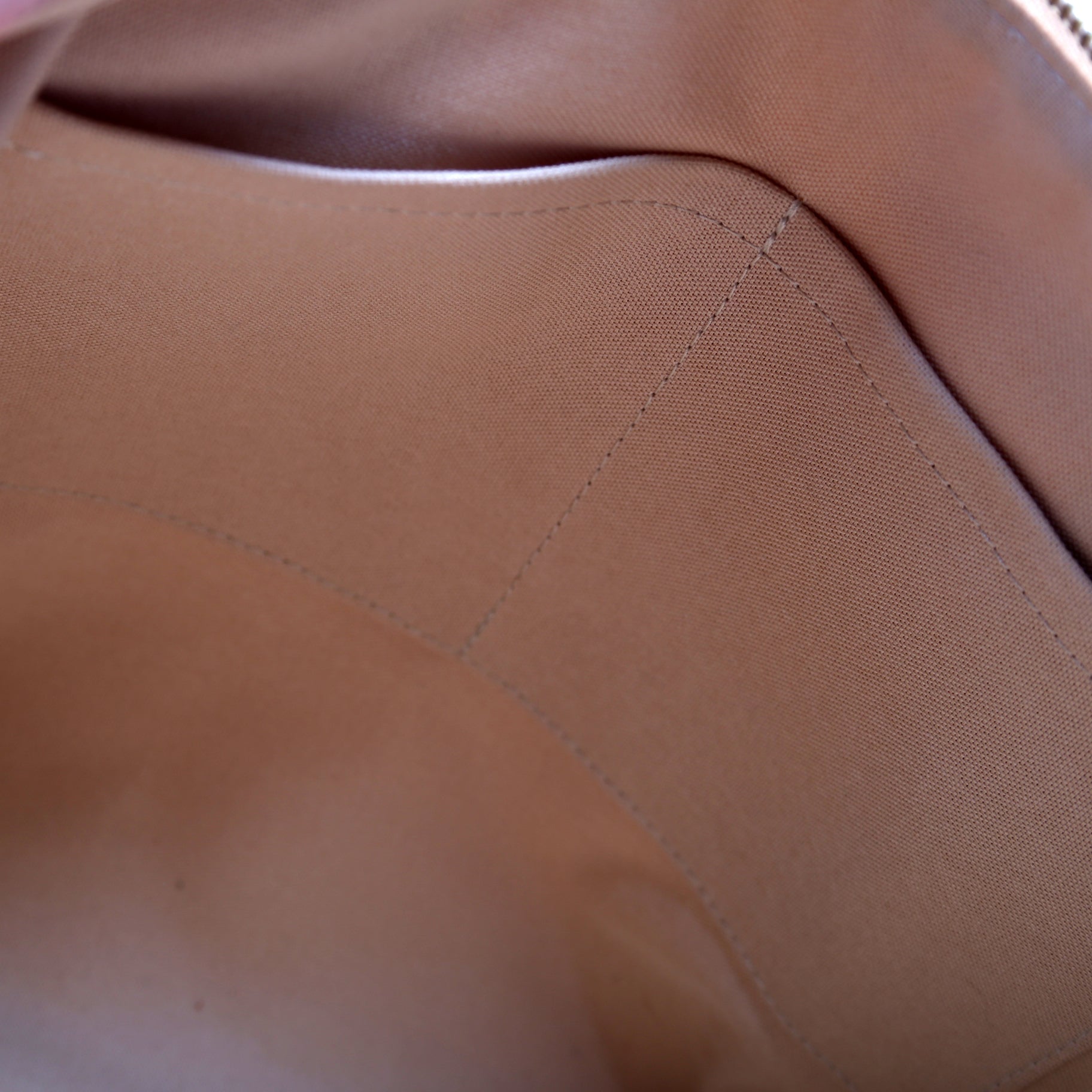 Exterior: The exterior canvas is free of any cracking. The leather trim shows minor wear. The exterior features two open pocket.